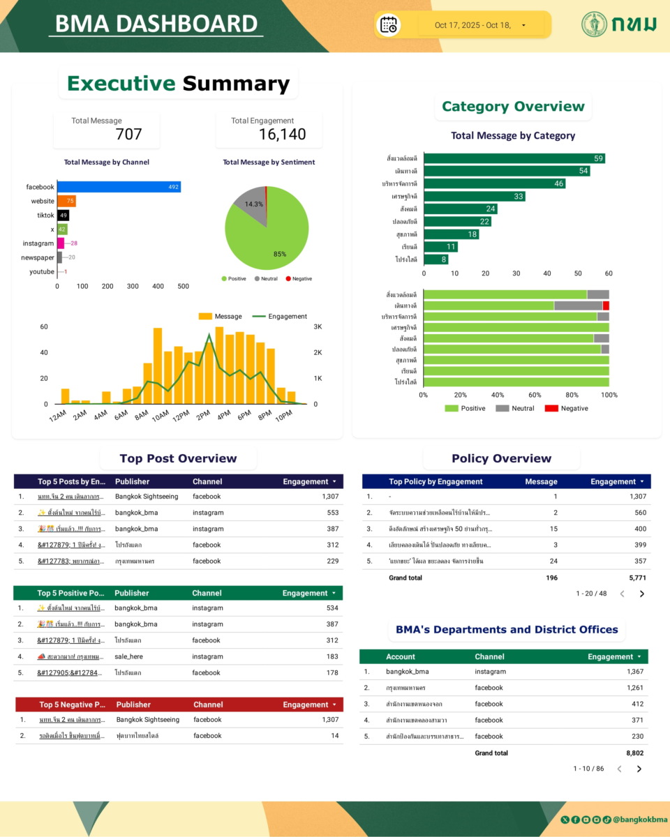 ภาพรวมการกล่าวถึงกรุงเทพมหานครในสื่อออนไลน์ วันที่ 18 ต.ค. 68