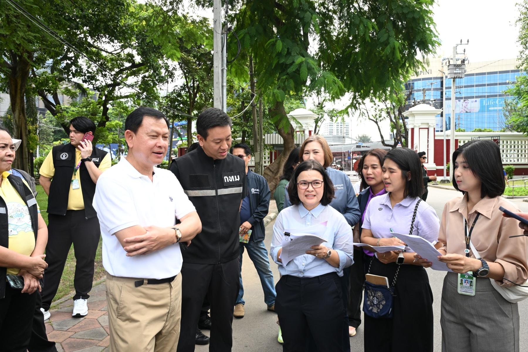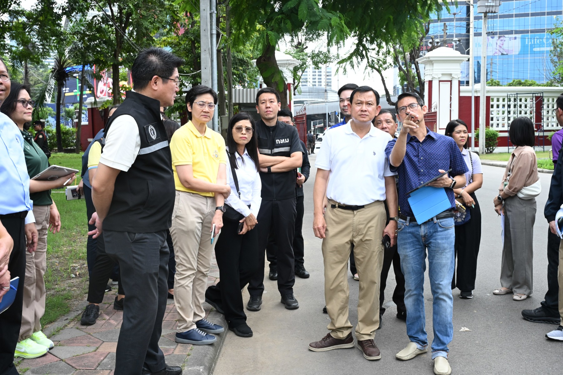 ในวันนี้มีผู้บริหารและผู้แทนหน่วยงานต่าง ๆ ได้แก่ สำนักสิ่งแวดล้อม สำนักการโยธา สำนักการระบายน้ำ สำนักการจราจรและขนส่ง สำนักวัฒนธรรม กีฬา และการท่องเที่ยว สำนักงานเลขานุการปลัดกรุงเทพมหานคร สำนักงานประชาสัมพันธ์ และสำนักงานเขตปทุมวัน ร่วมลงพื้นที่เพื่อรายงานข้อมูลและรับมอบภารกิจ