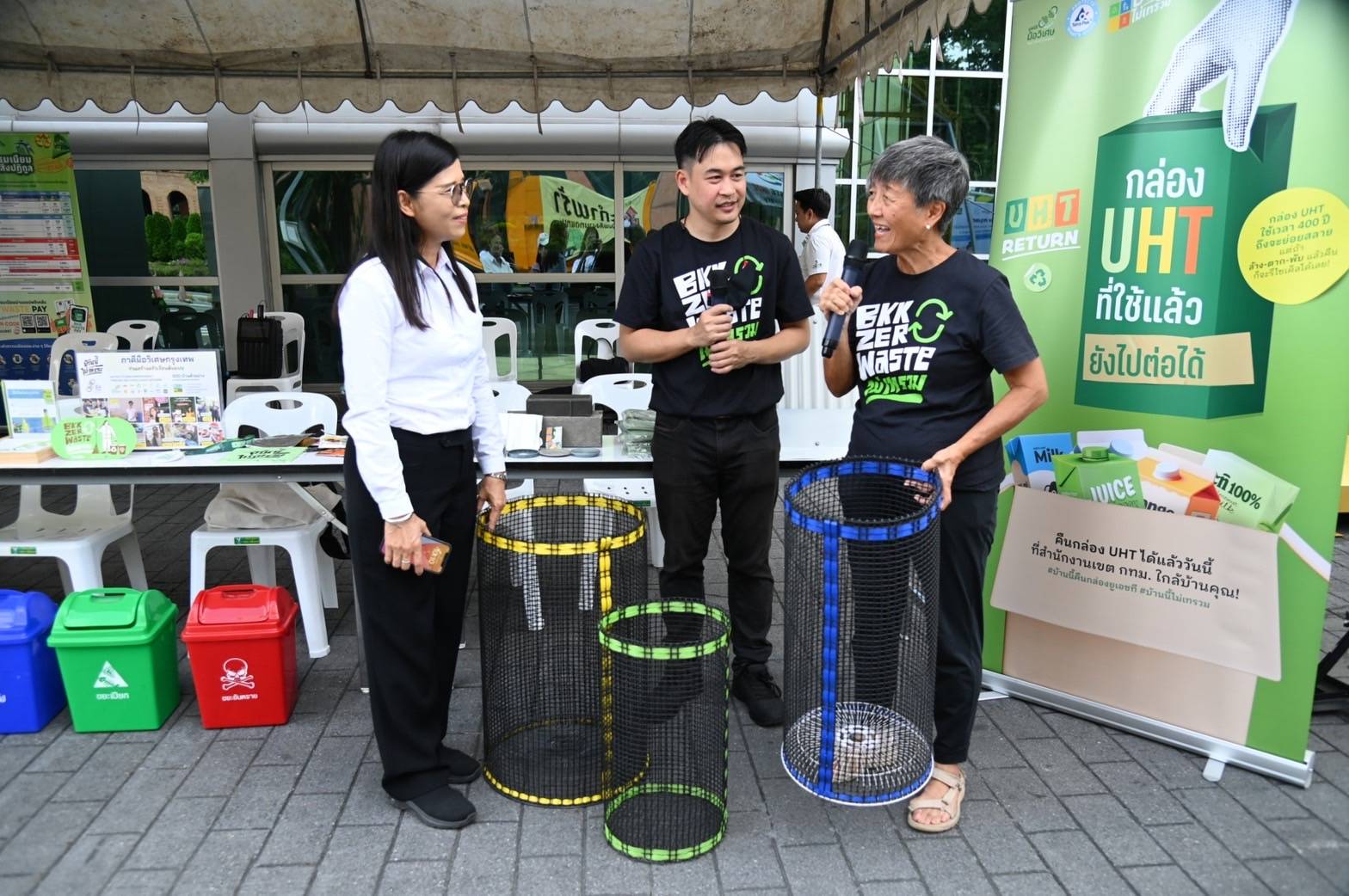 (18 ต.ค. 68) เวลา 09.00 น. นางสาววรนุช สวยค้าข้าว รองผู้อำนวยการสำนักสิ่งแวดล้อม กทม. ร่วมกิจกรรม “มือวิเศษสัญจร X บ้านนี้ไม่เทรวม” ณ ศาลาว่าการกรุงเทพมหานคร ดินแดง ซึ่งสำนักสิ่งแวดล้อม ผนึกกำลังภาคีเครือข่ายมือวิเศษ เปิดรับขยะที่ประชาชนคัดแยก อาทิ ขยะรีไซเคิล (นำมาขายสร้างรายได้ หรือบริจาคสร้างบุญให้แก่โครงการมือวิเศษกรุงเทพ แยกเพื่อให้…พี่ไม้กวาด) ขยะกำพร้า (เป็นขยะที่ใช้ครั้งเดียวทิ้ง เช่น กล่องโฟมใส่อาหาร ช้อน ส้อมพลาสติก ถุงแกง ซองขนม เป็นต้น เพื่อส่งเผาเป็นเชื้อเพลิงทดแทน ลดการส่งขยะสู่บ่อฝังกลบ) และขยะอันตรายโดยวันนี้มีภาคีเครือข่ายร่วมรับมอบส่งต่อขยะเข้าสู่ระบบการจัดการอย่างถูกต้อง ได้แก่ 1. ภาคีมือวิเศษกรุงเทพ เปิดรับกล่อง UHT และซองวิบวับ พร้อมแยกองค์ประกอบขยะ และนำไปผลิตอิฐรีไซเคิล รวมถึงหลังคาเมทัลชีส 2. Yolo เปิดรับบริจาคพลาสติกแห้งและสะอาดทุกชนิด เพื่อนำไปคัดแยกและอัพไซเคิลเป็นผลิตภัณฑ์หลากหลาย อาทิ พวงกุญแจ จานรองแก้ว ชั้นวางของ ซึ่งแต่ละผลิตภัณฑ์จะมีเอกลักษณ์เฉพาะตัวจากวัสดุรีไซเคิลที่ใช้ผลิต 3. Waste Buy Delivery รับซื้อขยะรีไซเคิลในราคาพิเศษ หรือหากต้องการบริจาครายได้จากการขายเข้าร่วมโครงการมือวิเศษกรุงเทพ แยกเพื่อให้…พี่ไม้กวาด ได้เช่นกัน นอกจากนี้ยังมีกิจกรรมน้ำมันเก่าแลกน้ำมันใหม่ รับแลกน้ำมันเก่าจากการประกอบอาหาร ปริมาณ 1 ลิตร แลกรับ น้ำมันพืชใหม่ ปริมาณ 250 ml. และการให้คำแนะนำในการเข้าร่วมโครงการบ้านนี้ไม่เทรวม : แยกขยะลดค่าธรรมเนียม รวมถึงกิจกรรม Work Shop ถังหมัก OK พร้อมรับกลับไปใช้งานที่บ้านฟรีอีกด้วย