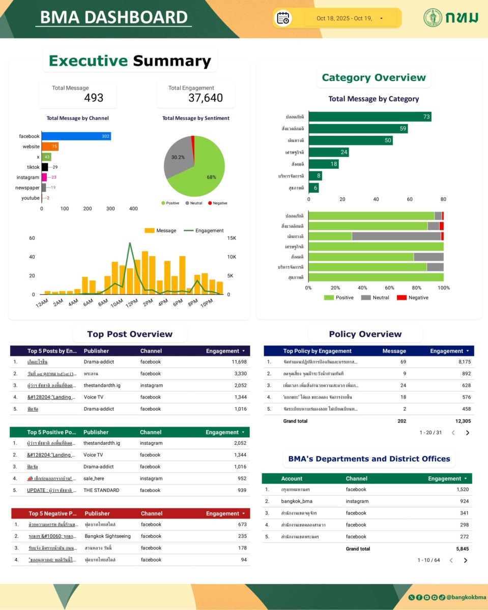 ภาพรวมการกล่าวถึงกรุงเทพมหานครในสื่อออนไลน์ วันที่ 19 ต.ค. 68