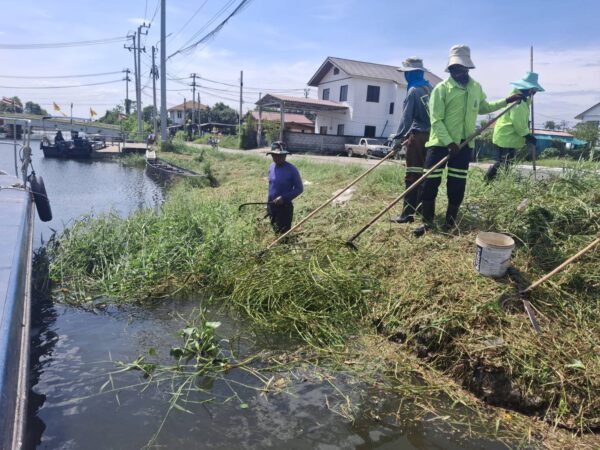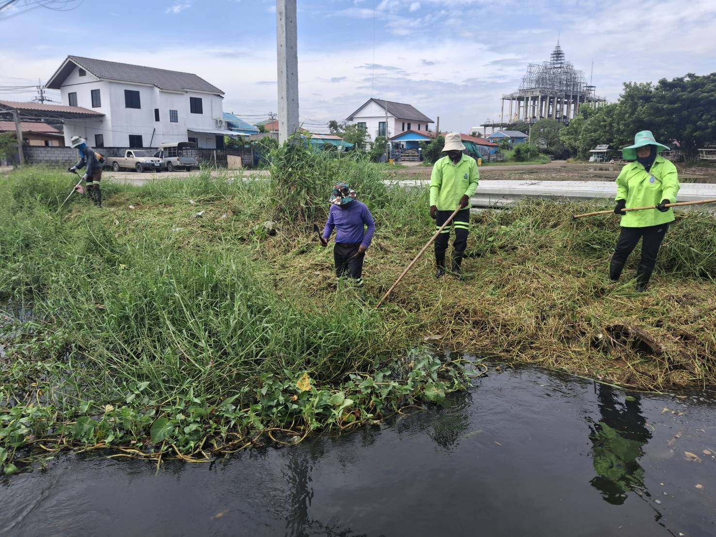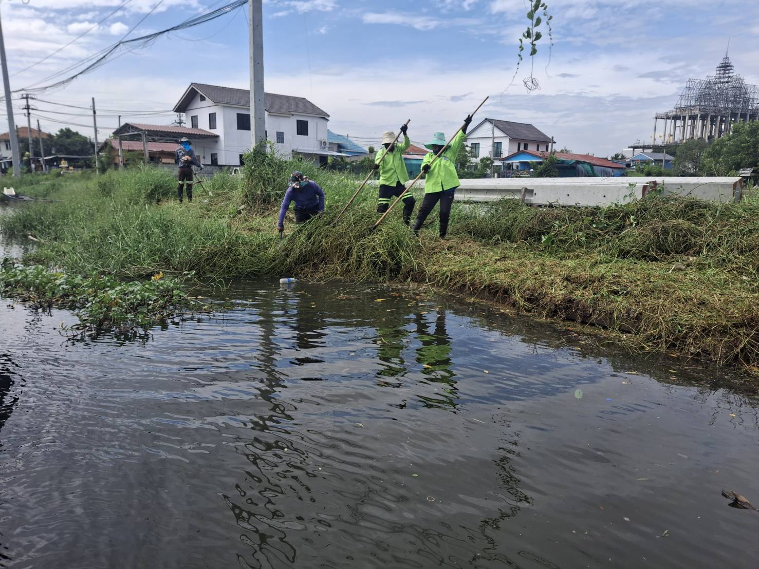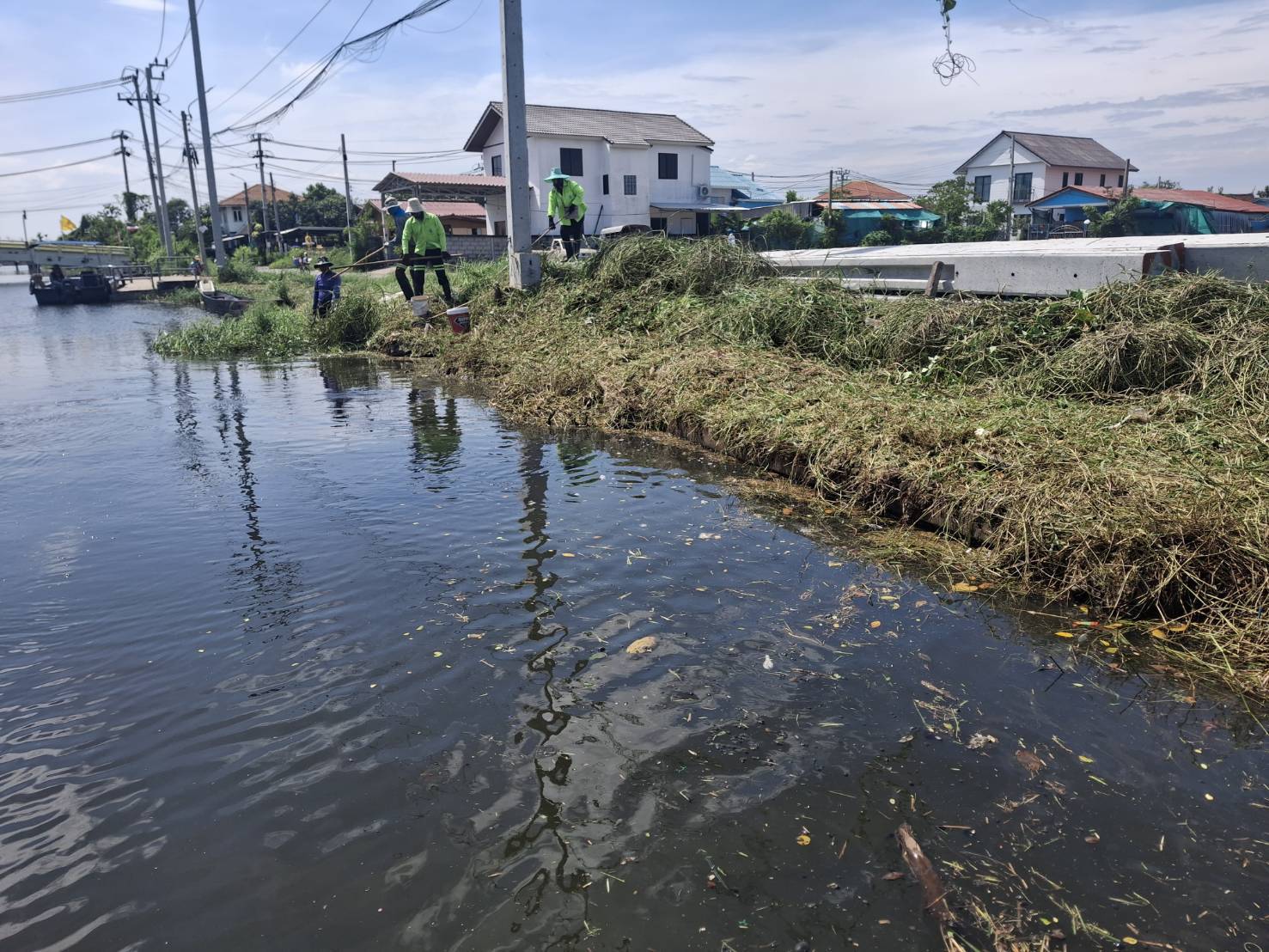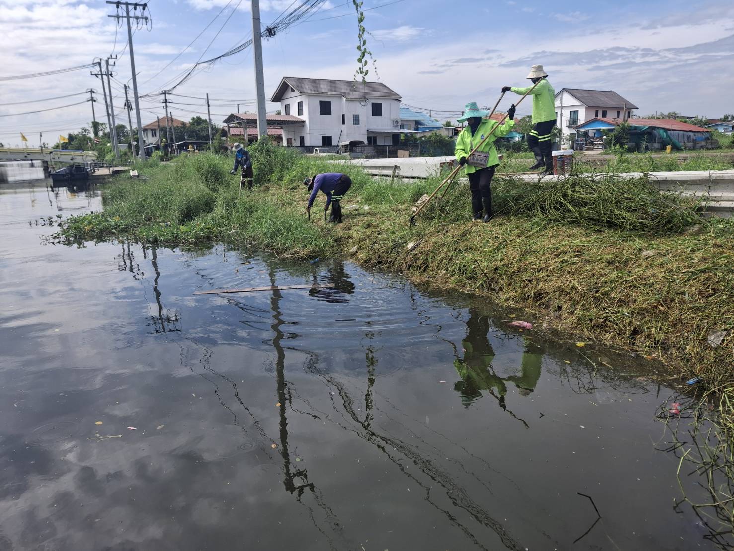 เจ้าหน้าที่ ตัดหญ้าเก็บขยะและวัชพืชคลองเฉลิมชัยพัฒนา ช่วงสะพานข้ามวัดหัวกระบือ พื้นที่เขตบางขุนเทียน