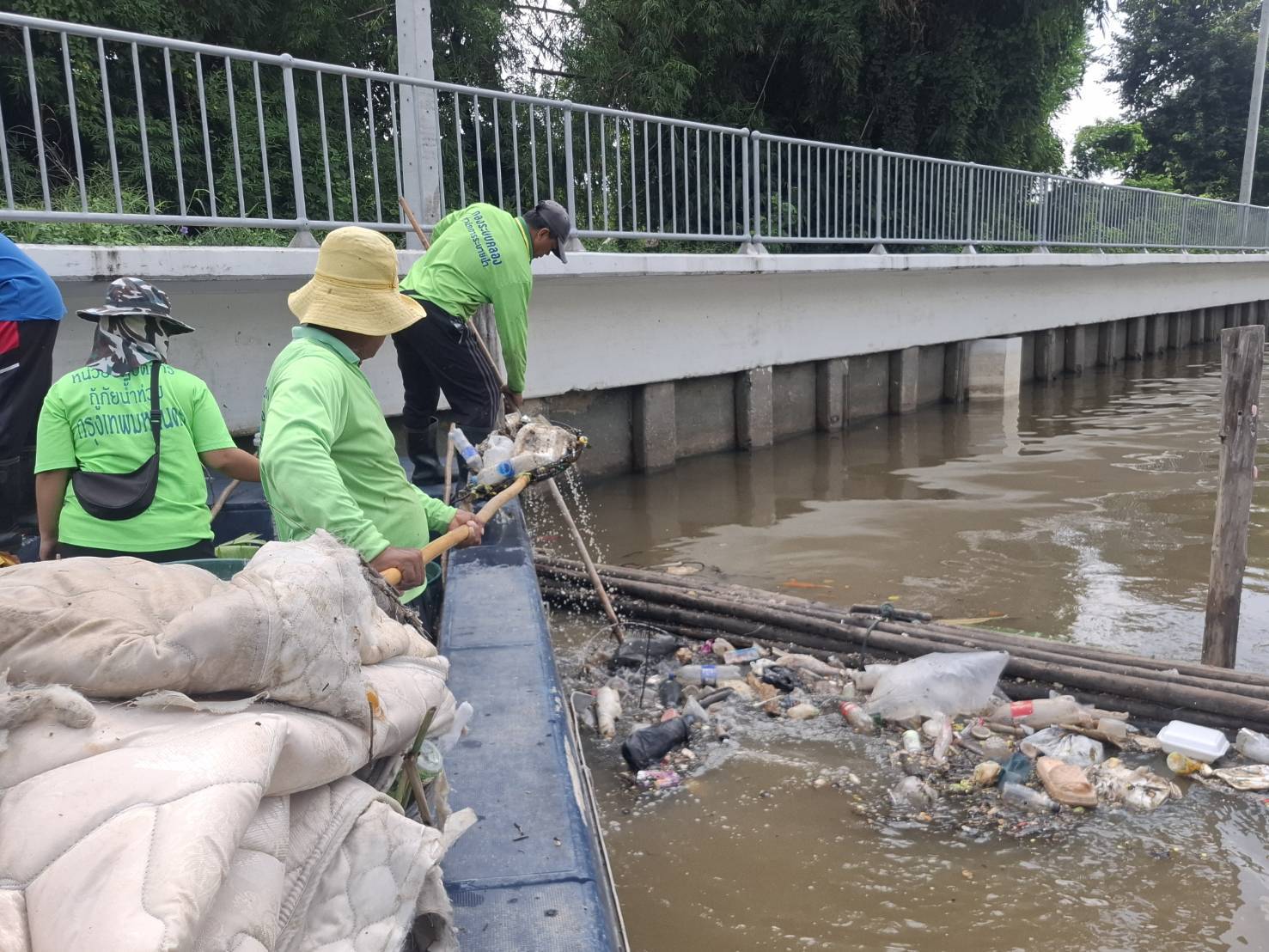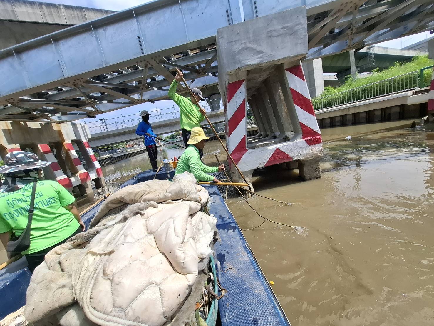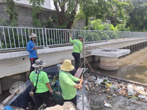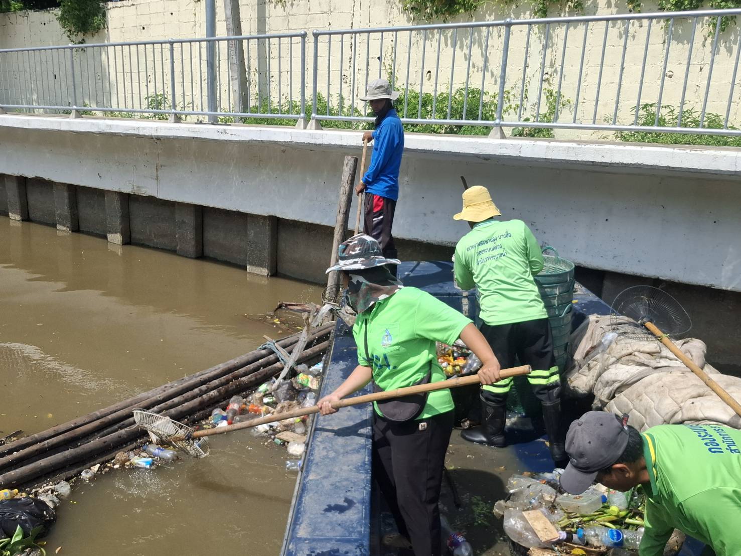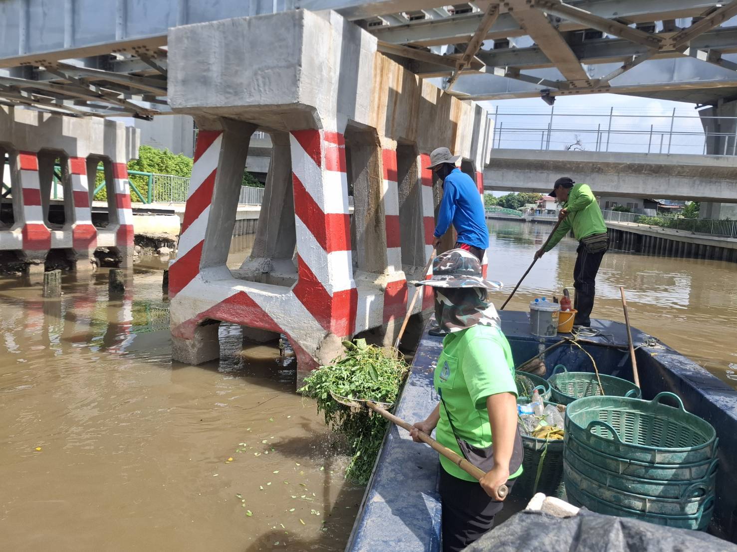 เจ้าหน้าที่ เก็บขยะและวัชพืชคลองเปรมประชากร ช่วงชุมชนตึกแดงบางซื่อเขตบางซื่อถึงสะพานงามวงศ์วานเขตจตุจักร