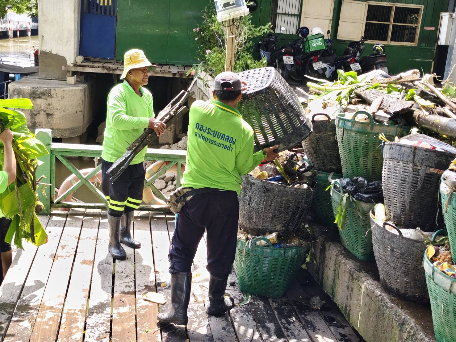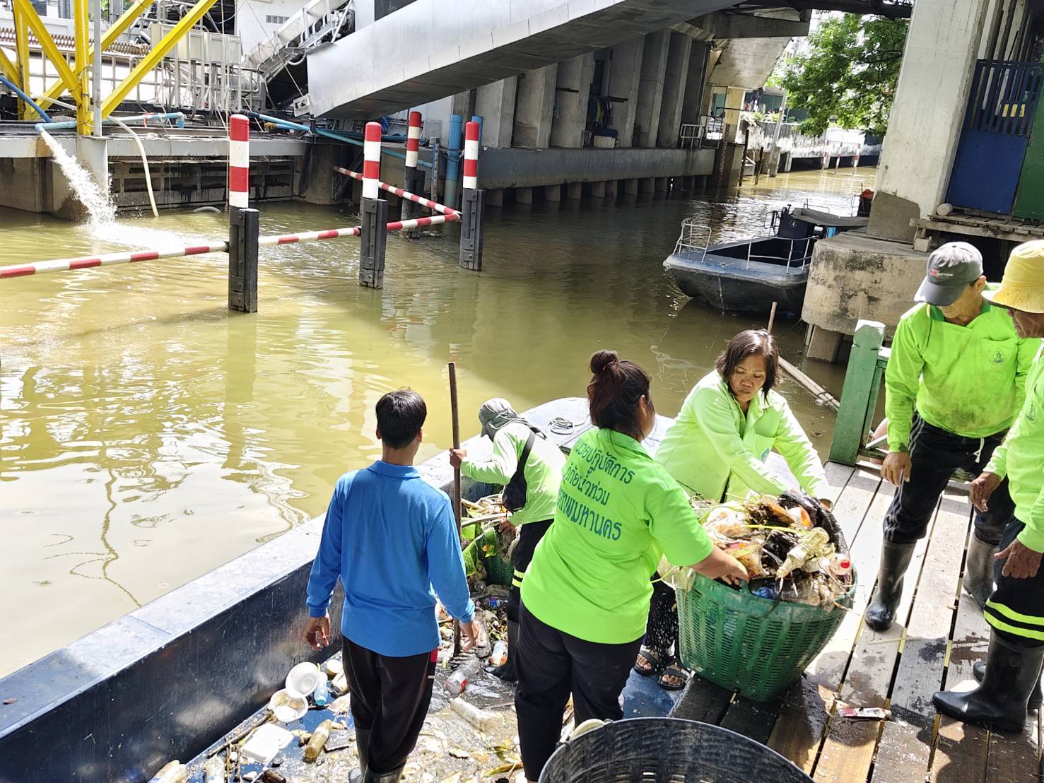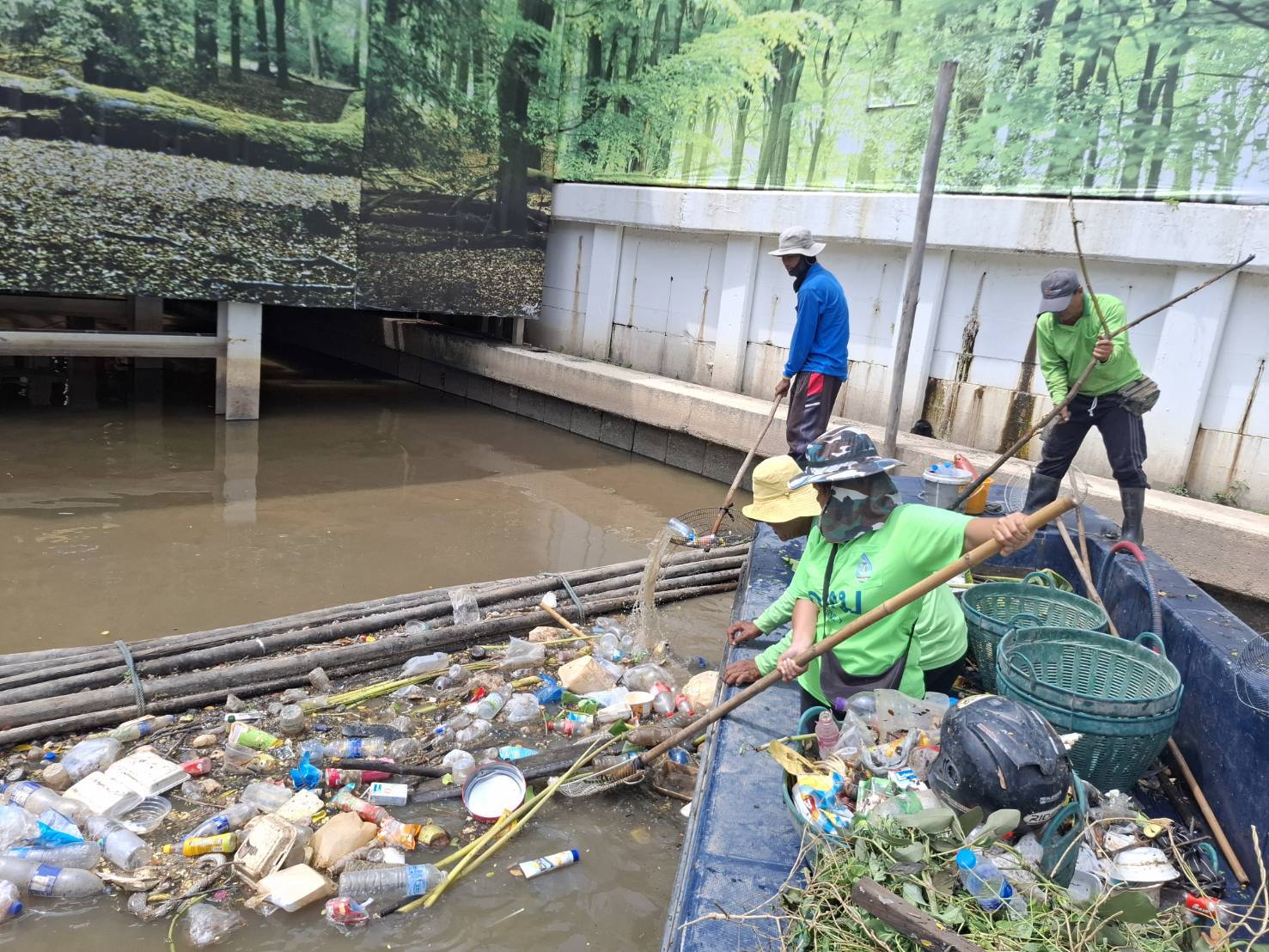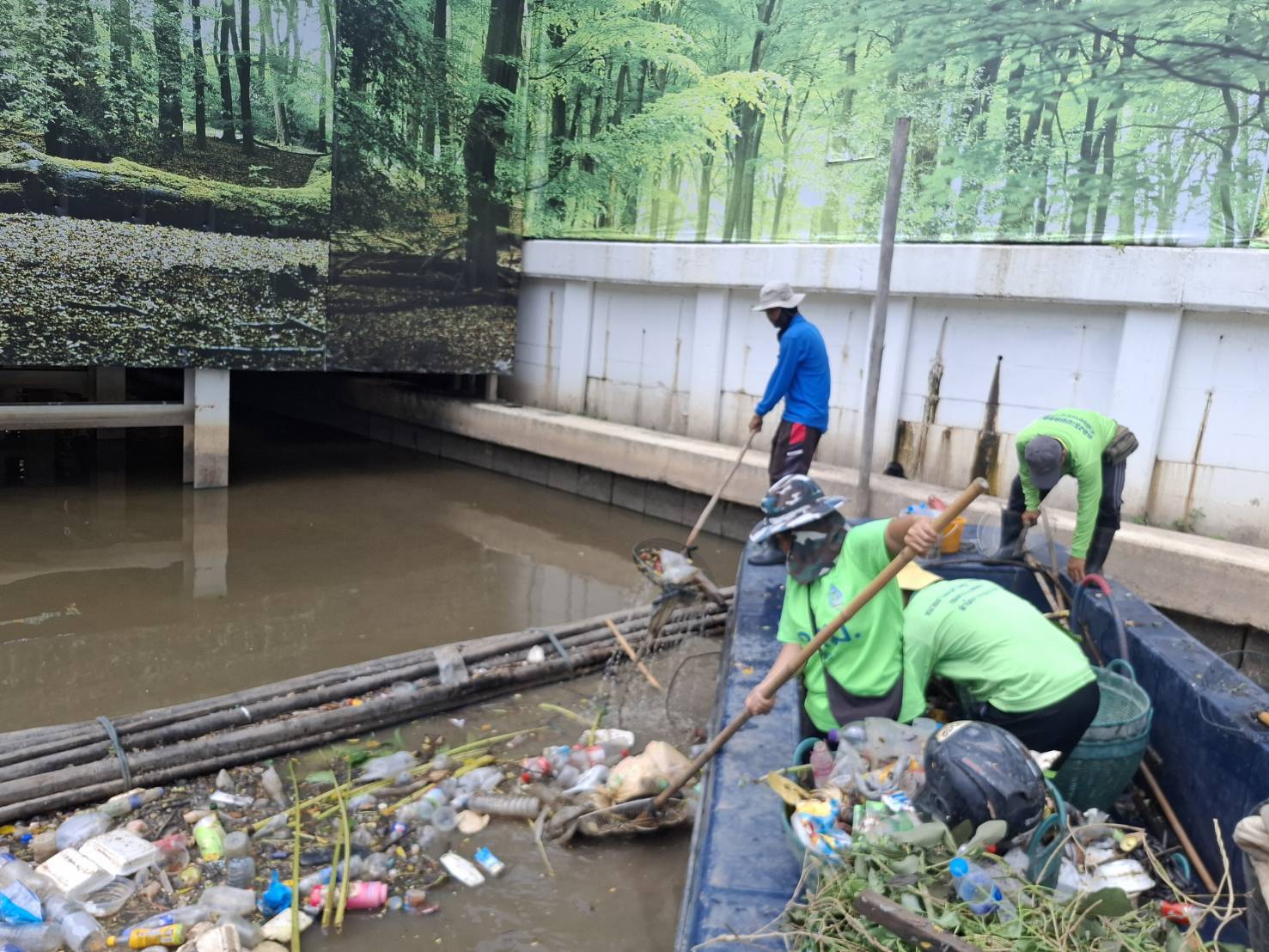 เจ้าหน้าที่ เก็บขยะและวัชพืชคลองเปรมประชากร ช่วงชุมชนตึกแดงบางซื่อเขตบางซื่อถึงสะพานงามวงศ์วานเขตจตุจักร