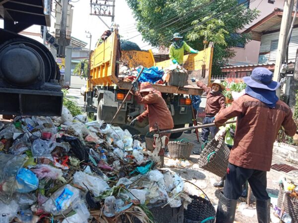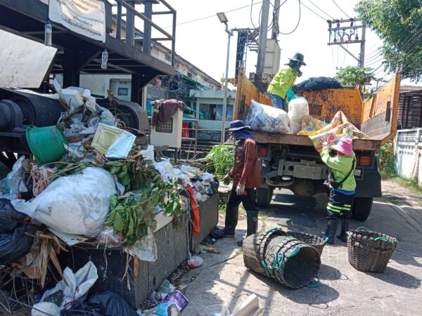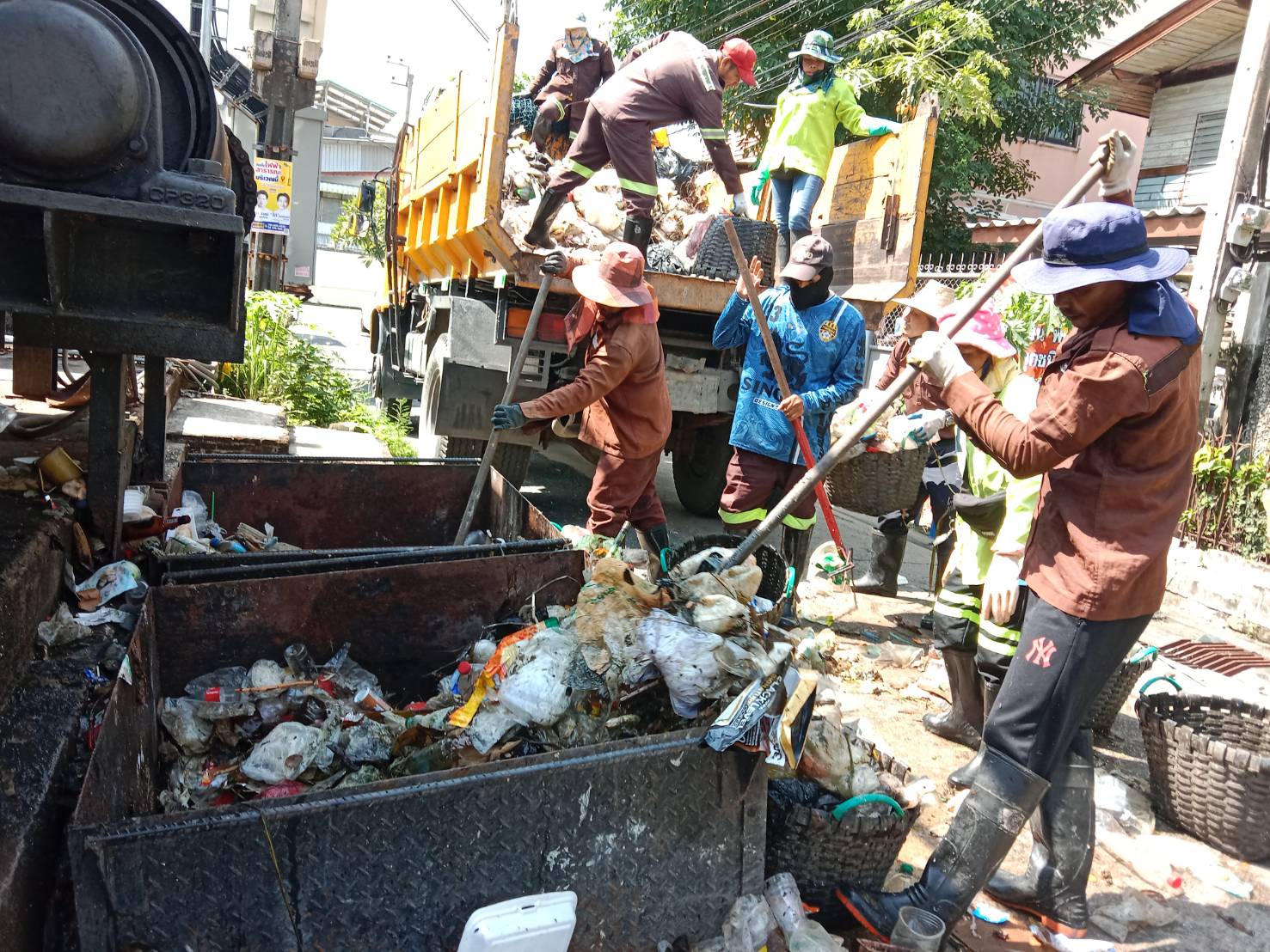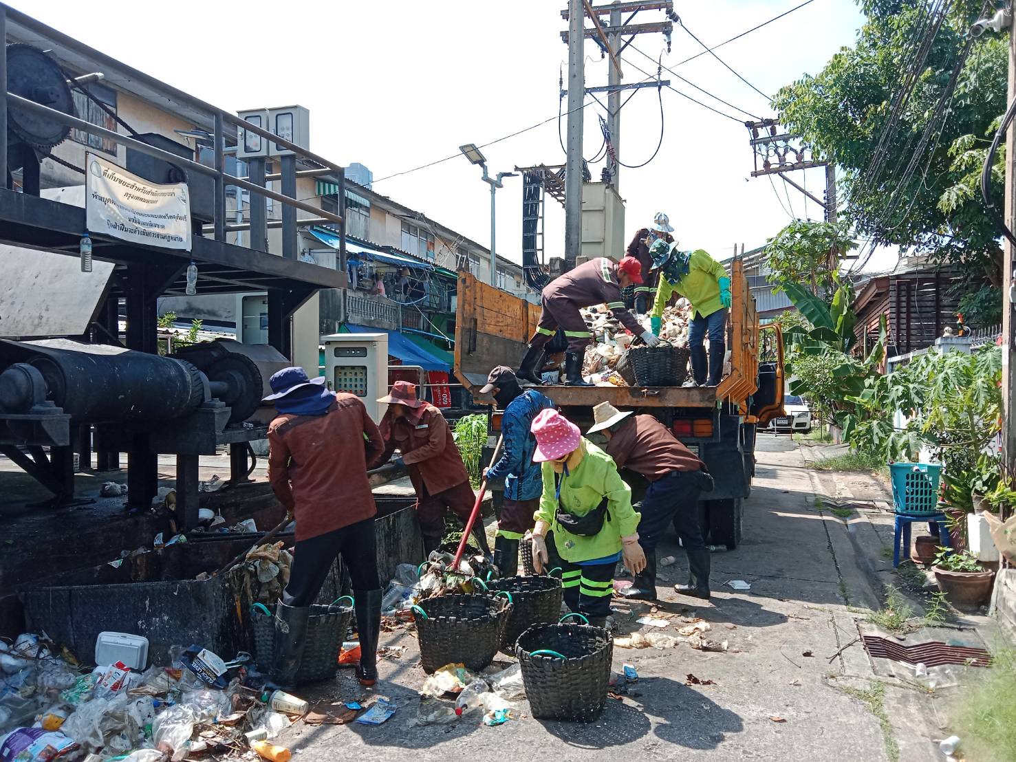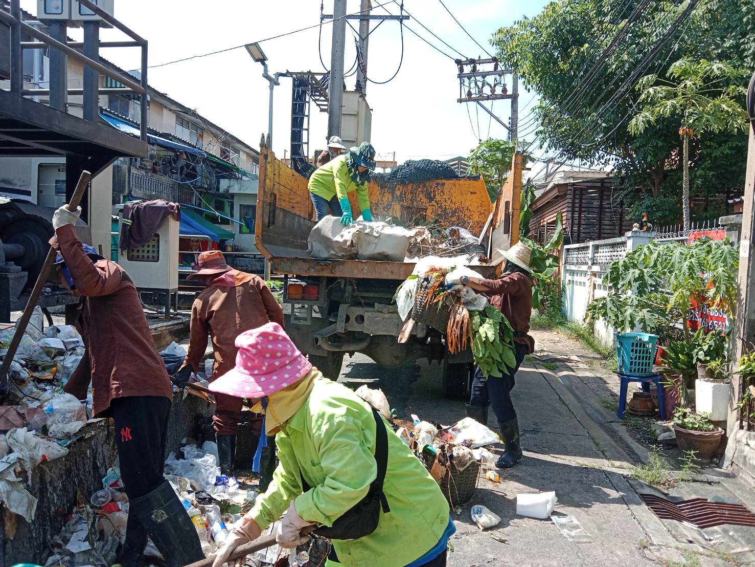 เจ้าหน้าที่ เก็บขยะและวัชพืช ปตร.โบสถ์แม่พระฟาติมา เขตดินแดง