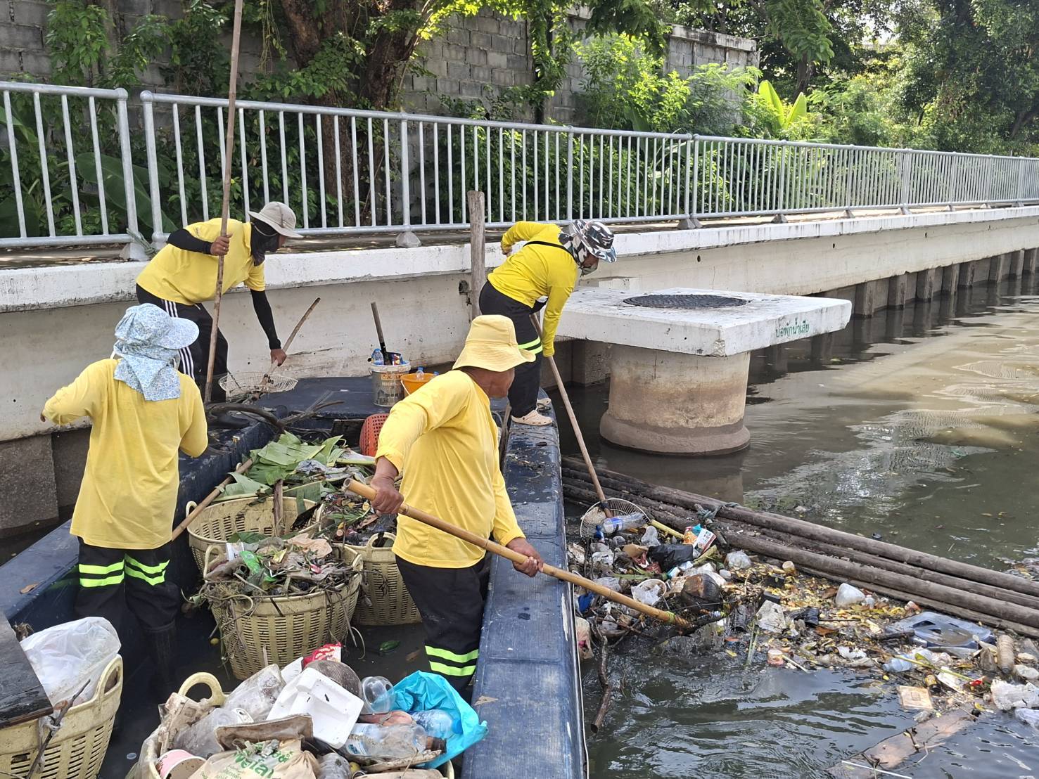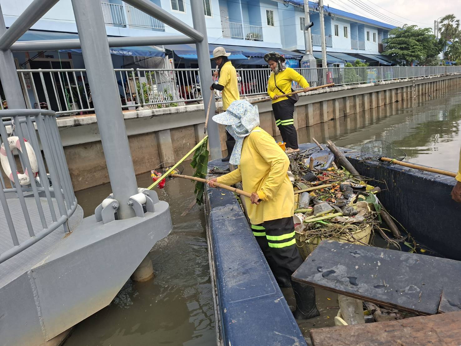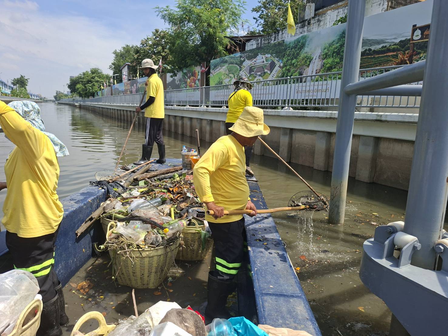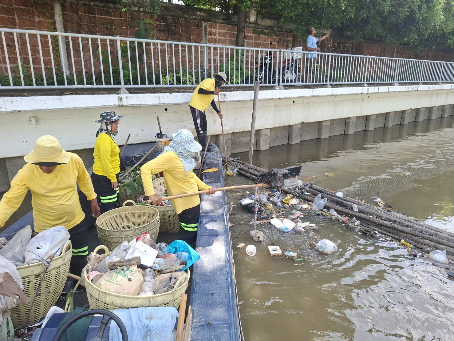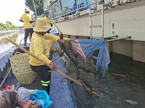 เจ้าหน้าที่ เก็บขยะและวัชพืชคลองเปรมประชากร ช่วงชุมชนตึกแดงบางซื่อเขตบางซื่อถึงสะพานงามวงศ์วานเขตจตุจักร