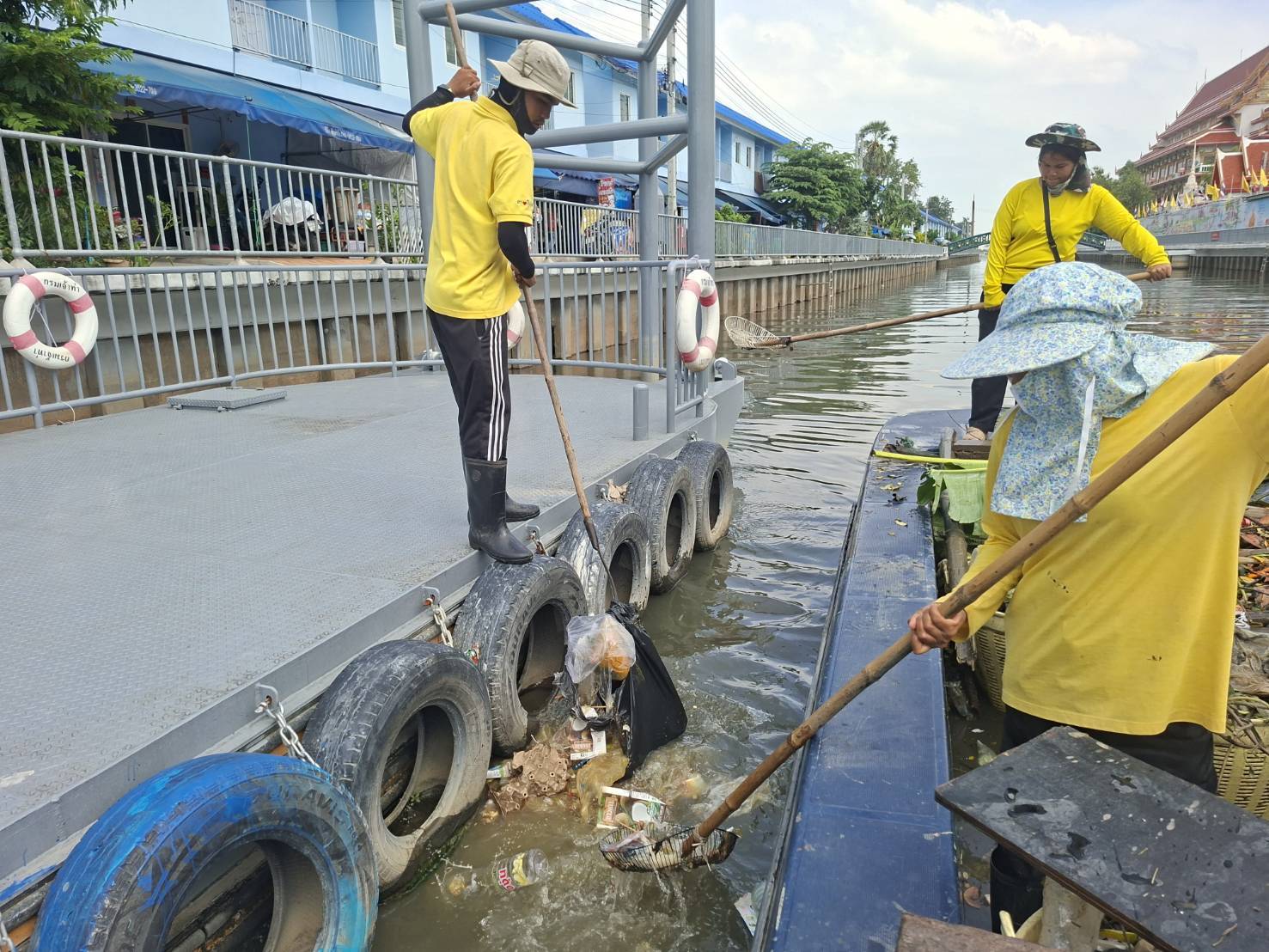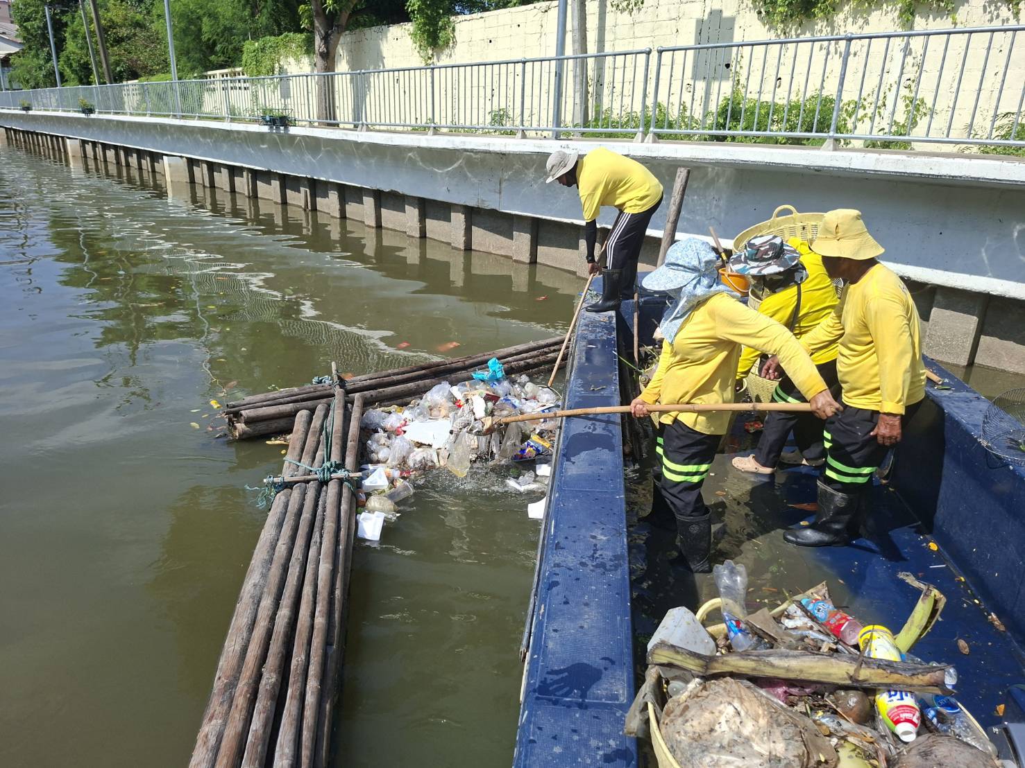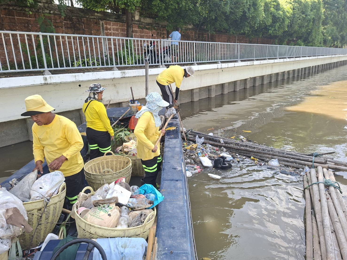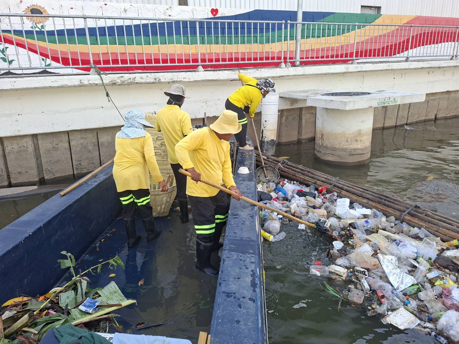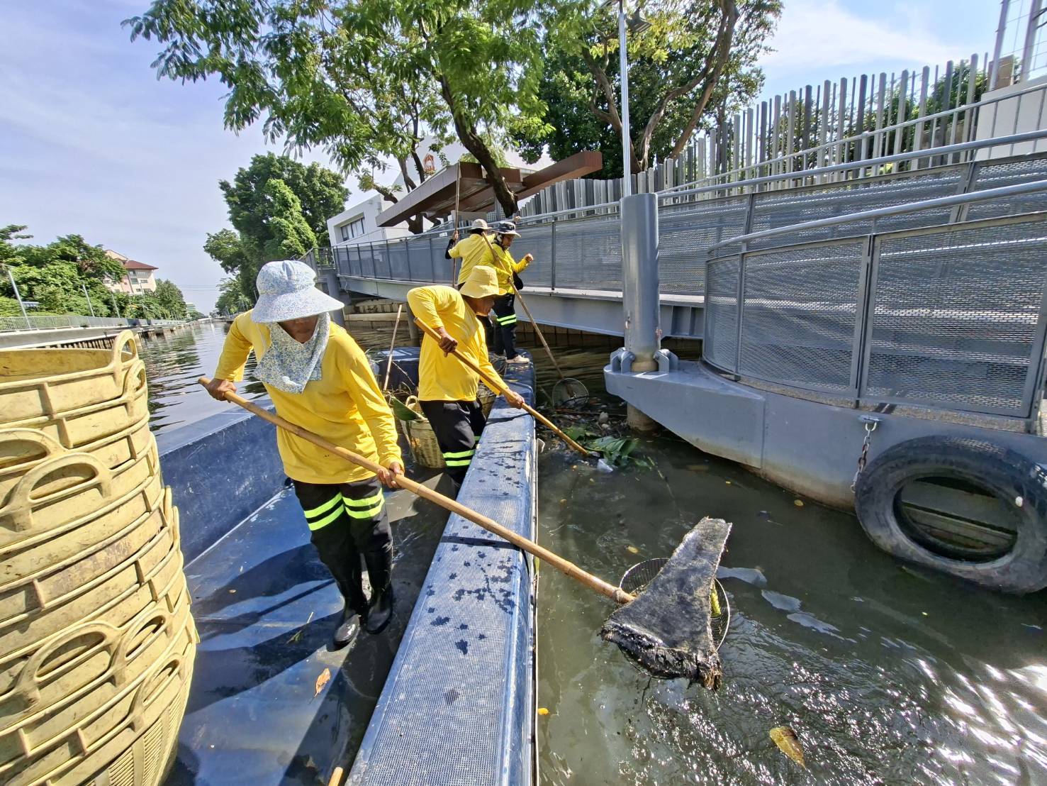 เจ้าหน้าที่ เก็บขยะและวัชพืชคลองเปรมประชากร ช่วงชุมชนตึกแดงบางซื่อเขตบางซื่อถึงสะพานงามวงศ์วานเขตจตุจักร