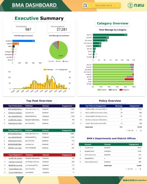 ภาพรวมการกล่าวถึงกรุงเทพมหานครในสื่อออนไลน์ วันที่ 23 ต.ค. 68