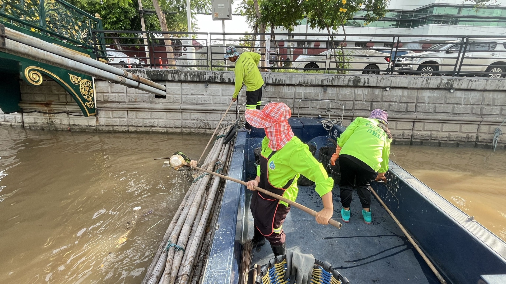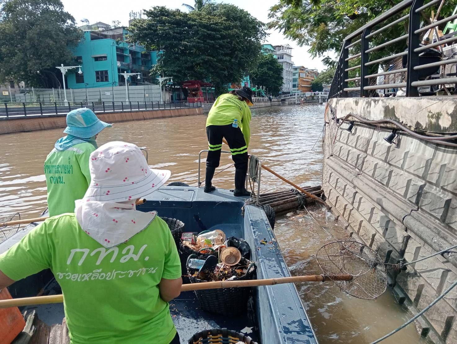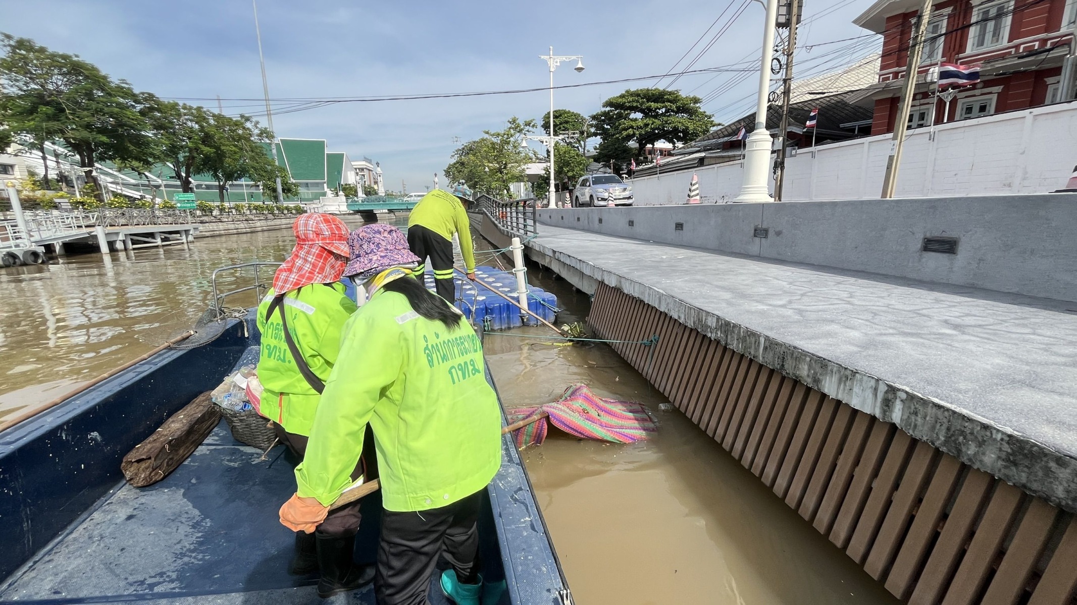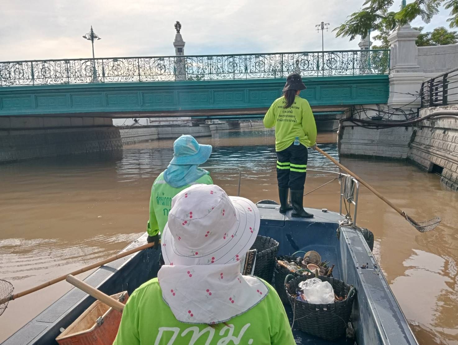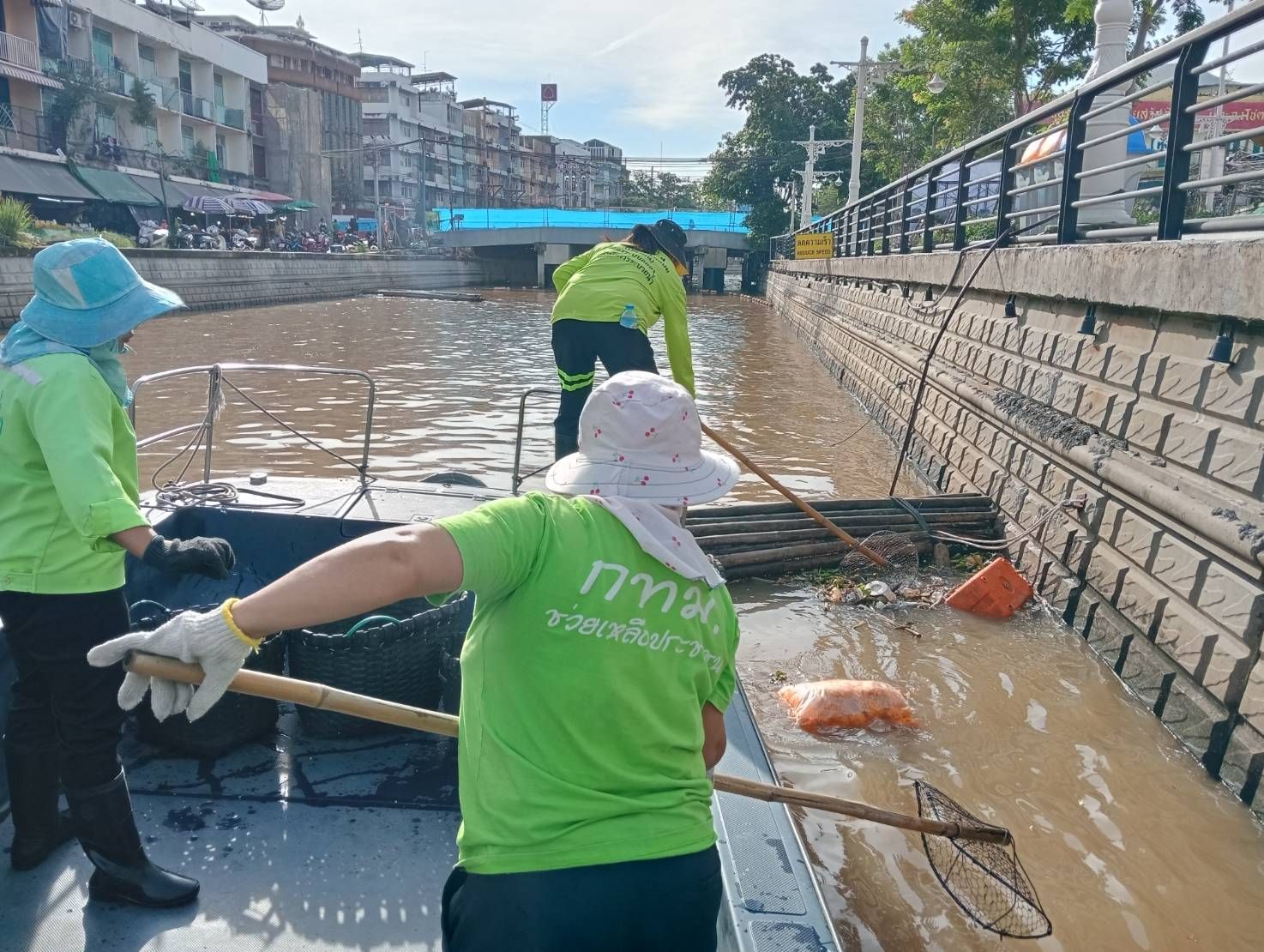 เจ้าหน้าที่ ตักเก็บขยะและวัชพืชเก็บจาก ปตร.เทเวศร์ตลอดช่วงสะพานมัฆวานถึงสี่แยกมหานาค พื้นที่เขตดุสิต เขตพระนคร เขตป้อมปราบศัตรูพ่าย