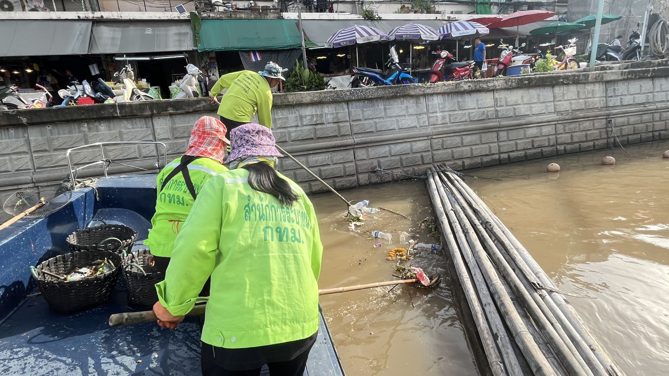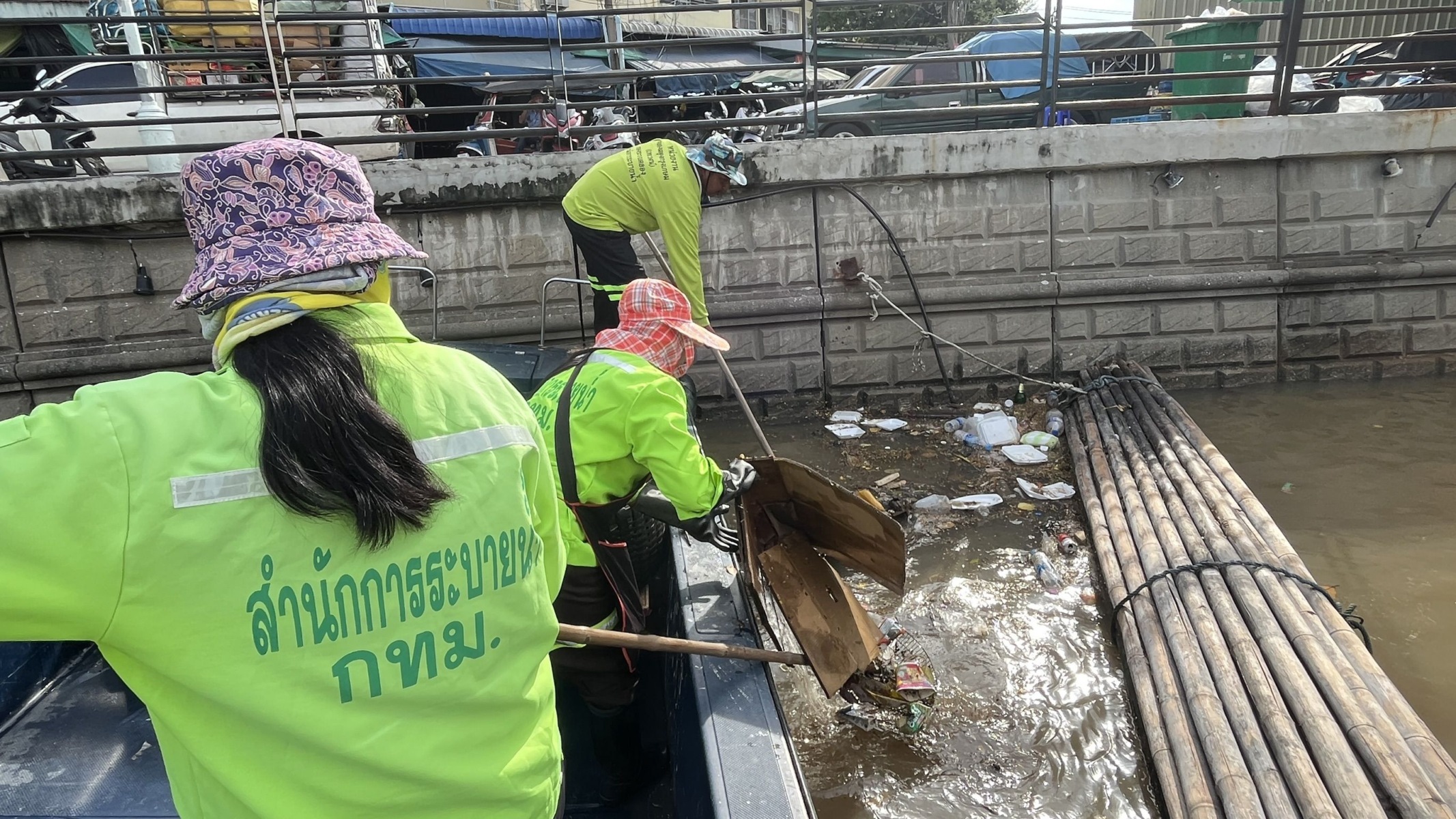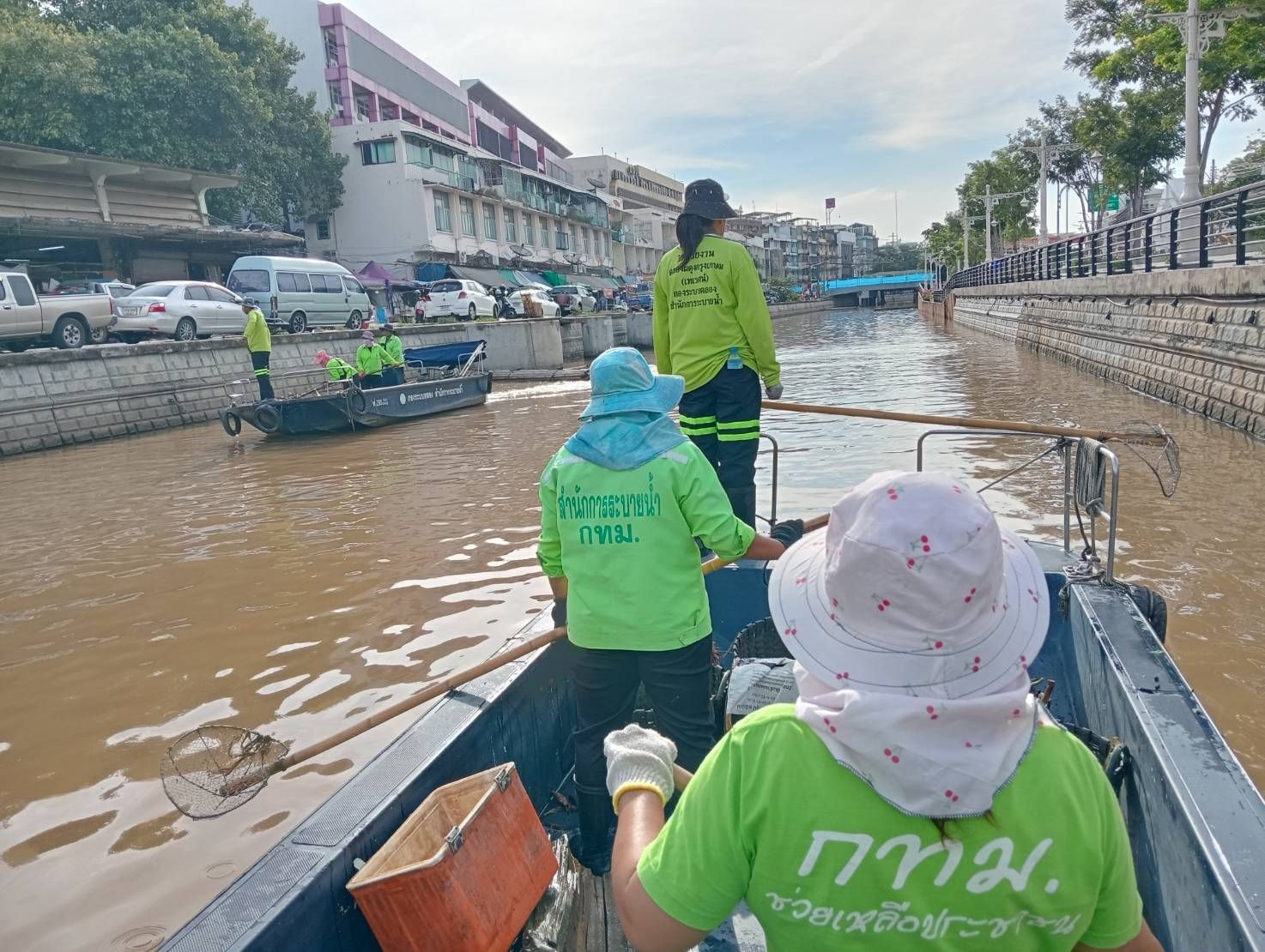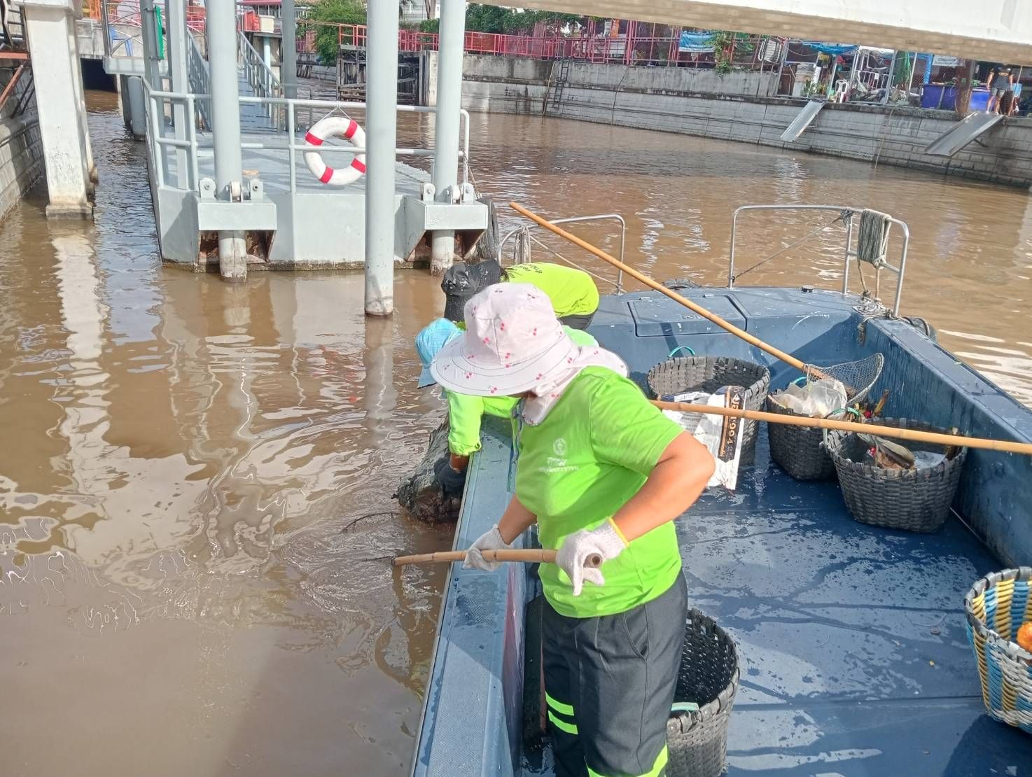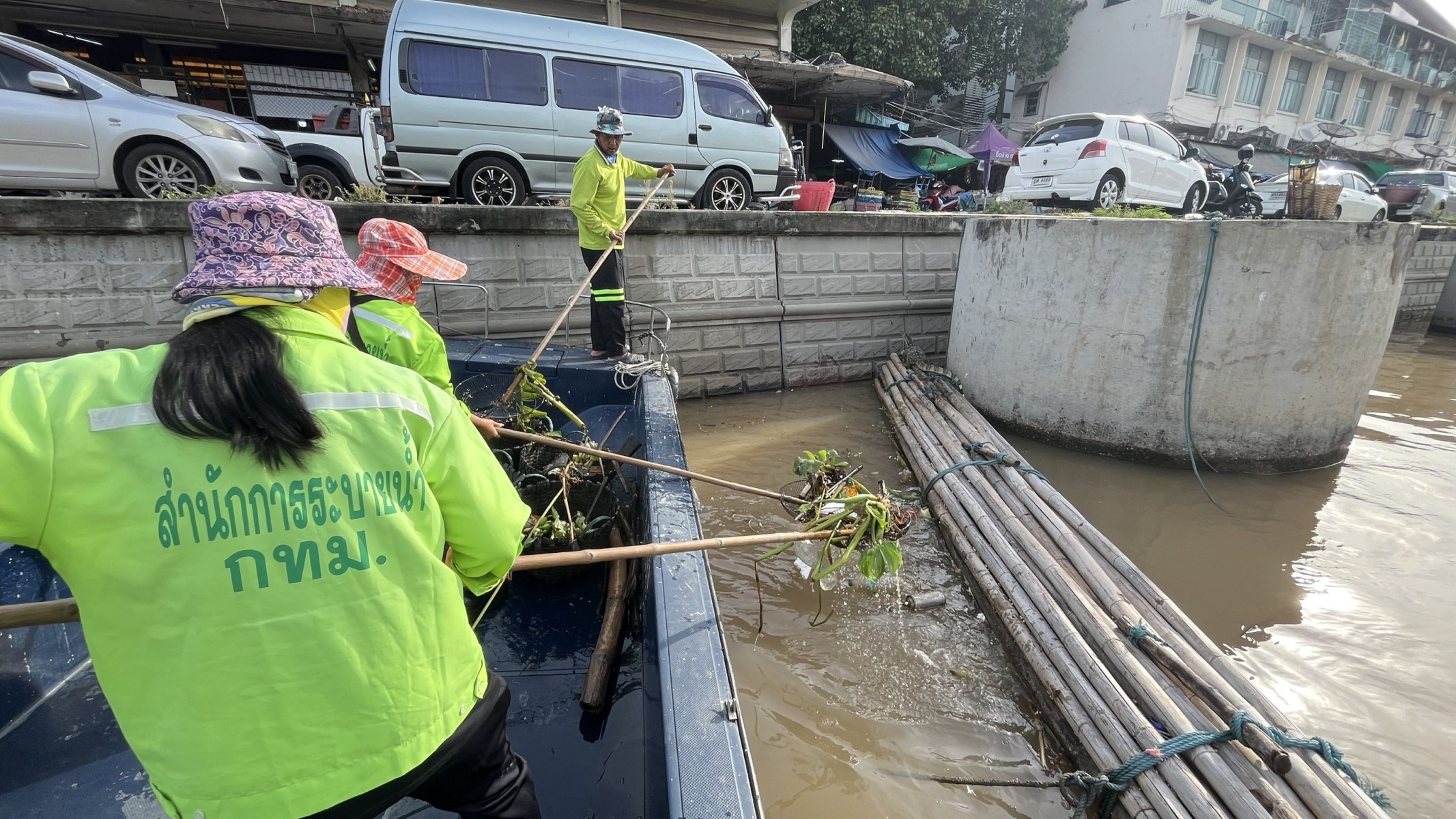 เจ้าหน้าที่ ตักเก็บขยะและวัชพืชเก็บจาก ปตร.เทเวศร์ตลอดช่วงสะพานมัฆวานถึงสี่แยกมหานาค พื้นที่เขตดุสิต เขตพระนคร เขตป้อมปราบศัตรูพ่าย