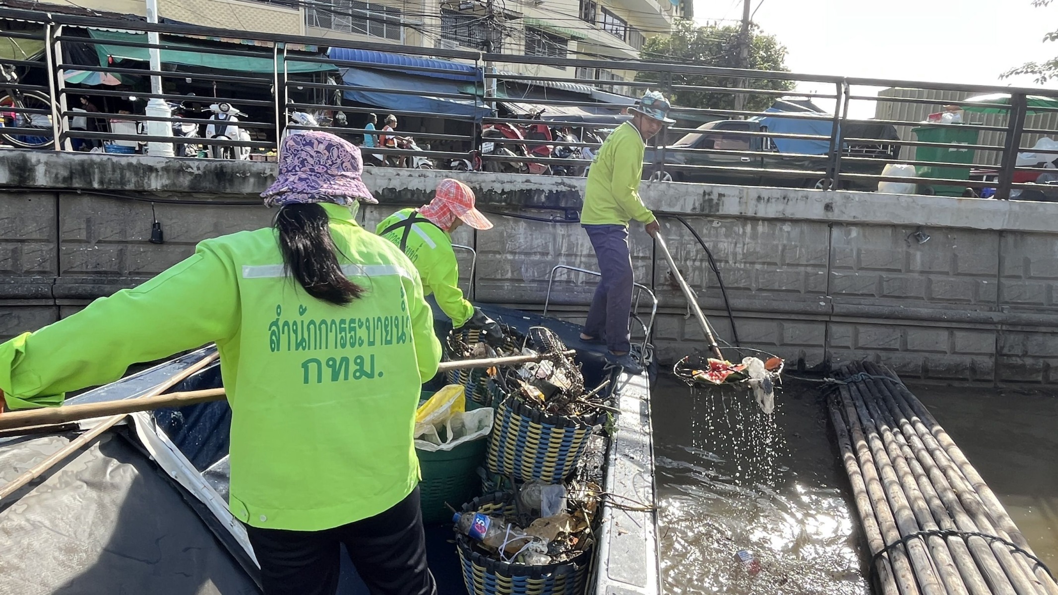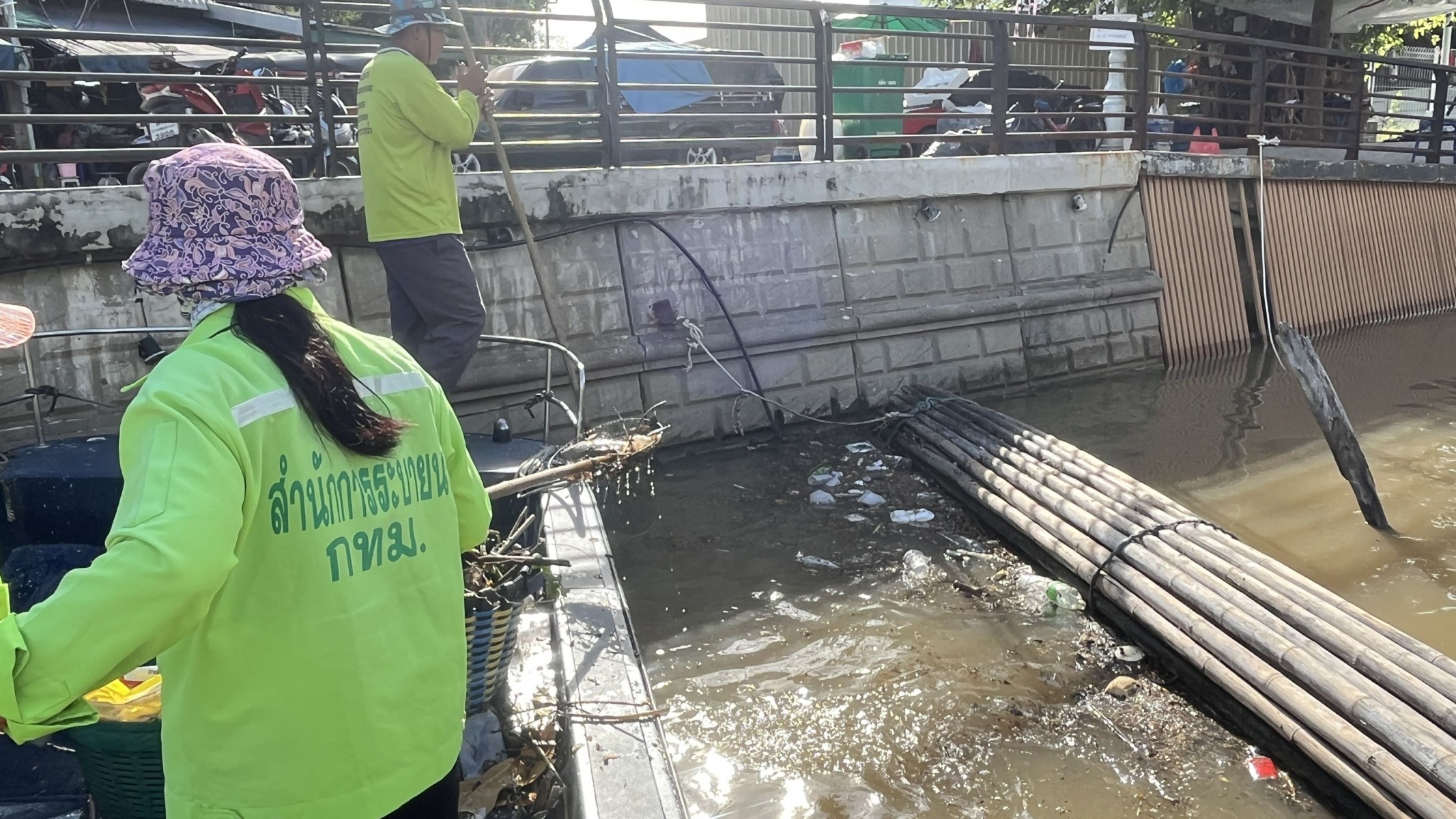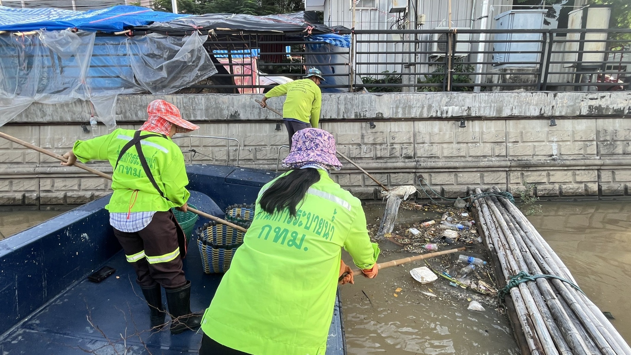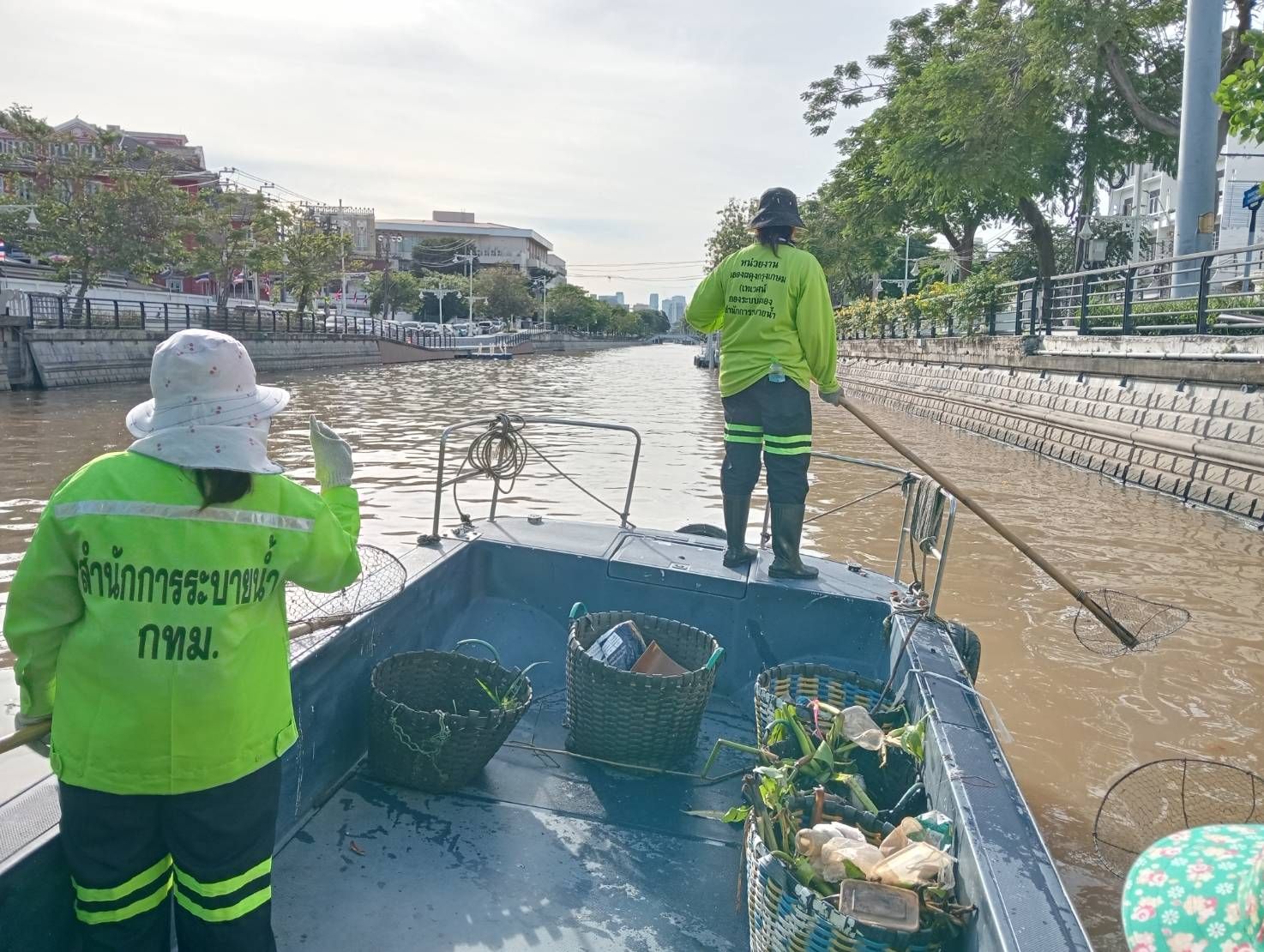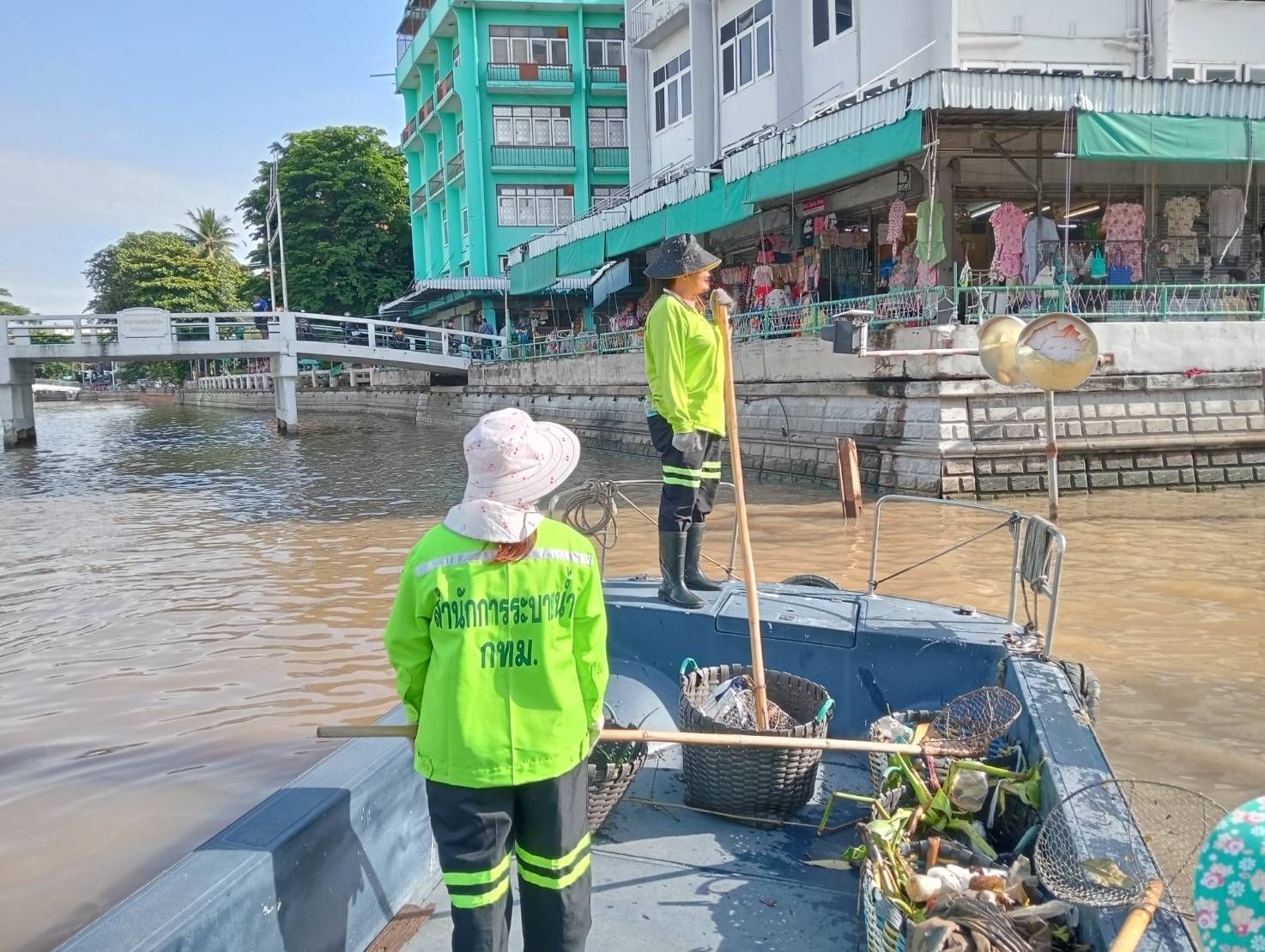 เจ้าหน้าที่ ตักเก็บขยะและวัชพืชจาก ปตร.เทเวศร์ตลอดช่วงสะพานมัฆวานถึงสี่แยกมหานาค เขตดุสิต เขตพระนคร เขตป้อมปราบศัตรูพ่าย