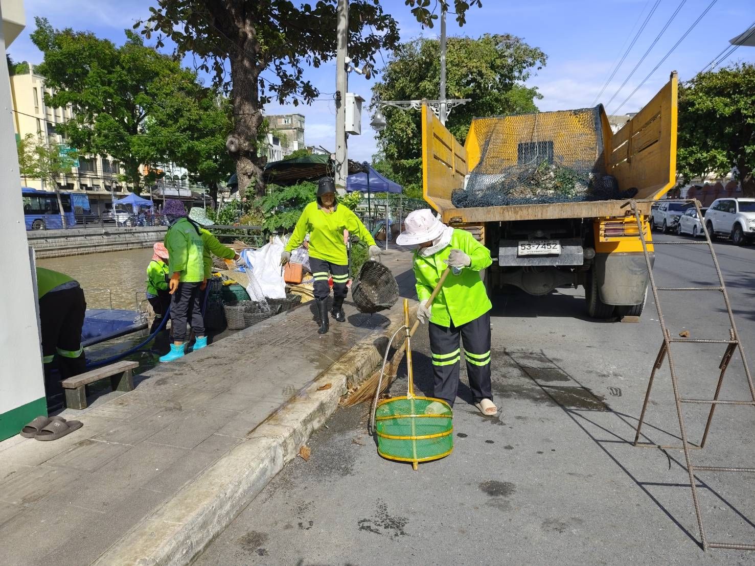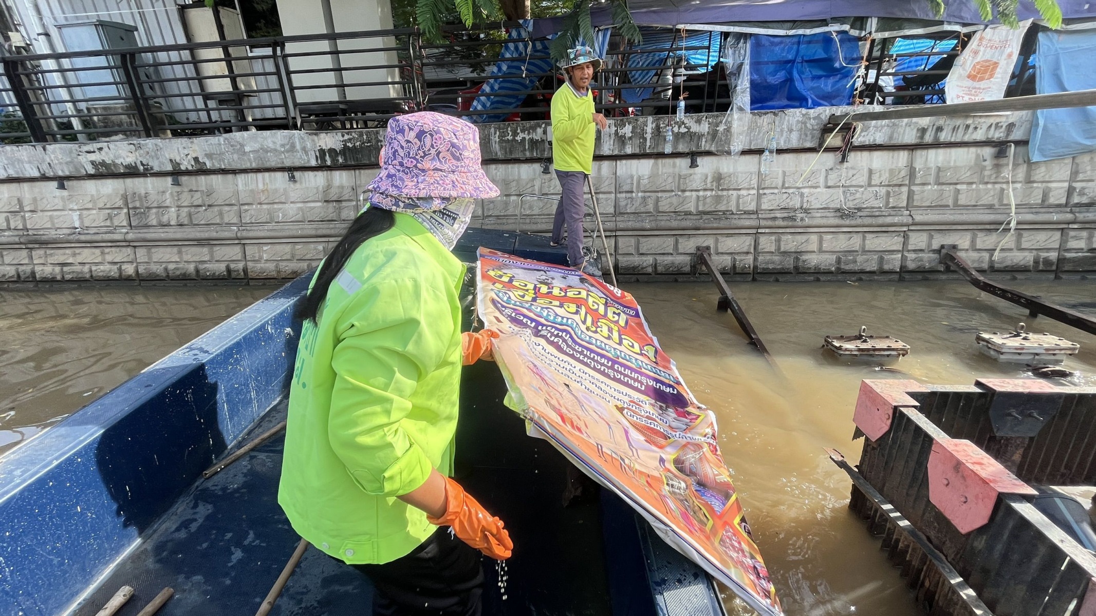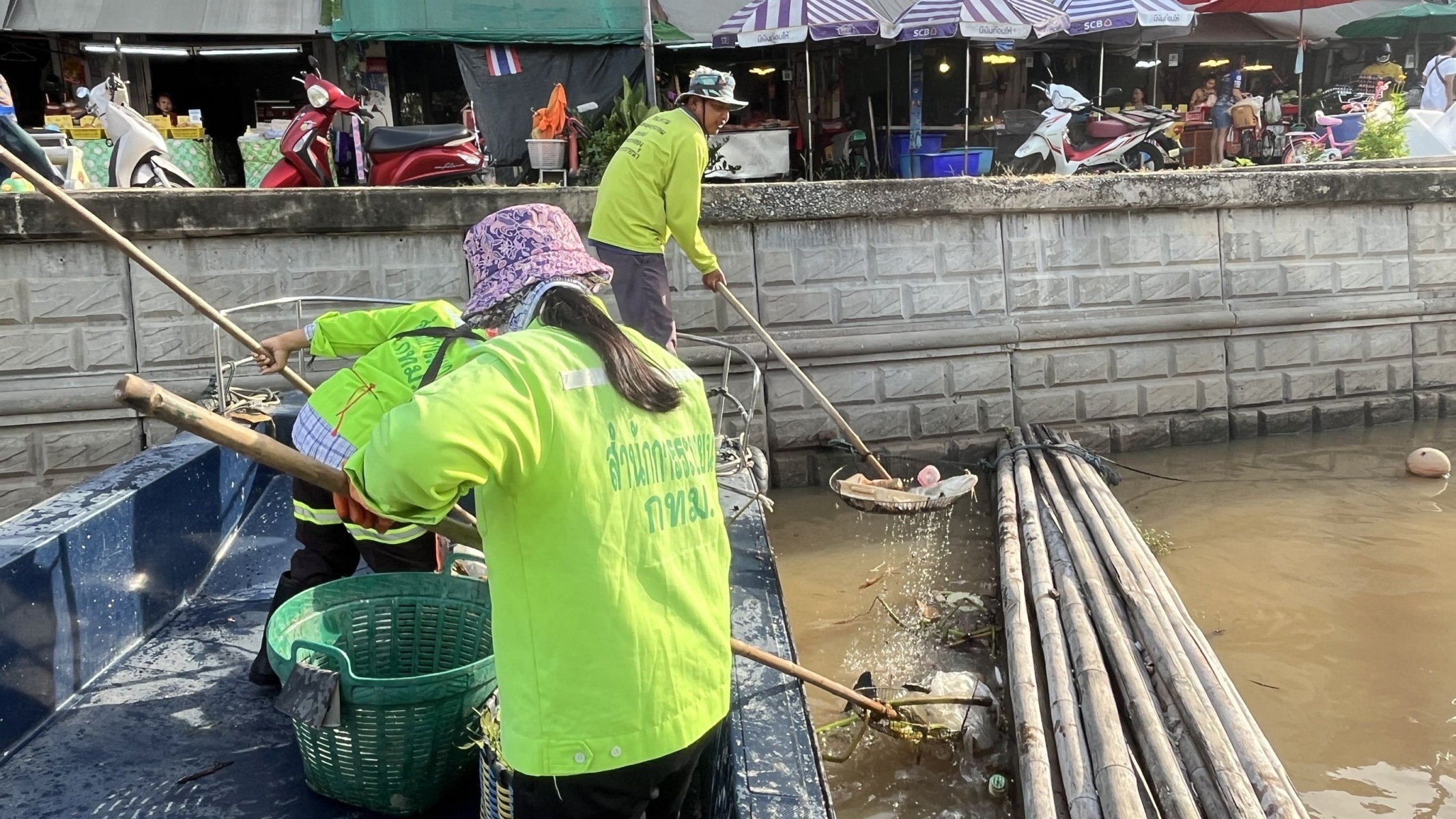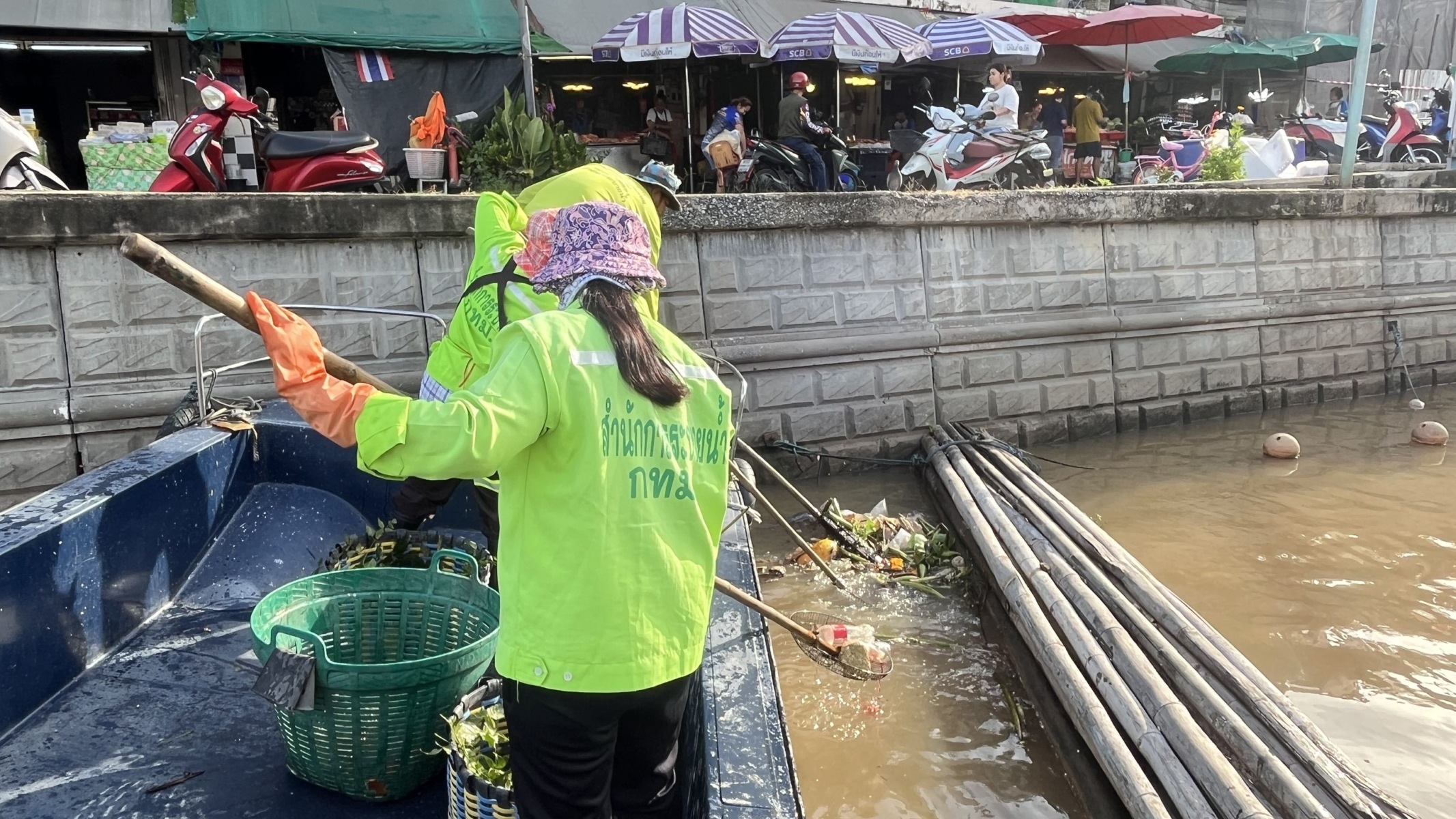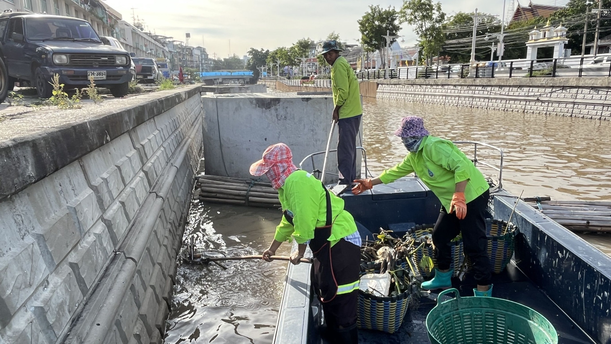เจ้าหน้าที่ ตักเก็บขยะและวัชพืชจาก ปตร.เทเวศร์ตลอดช่วงสะพานมัฆวานถึงสี่แยกมหานาค เขตดุสิต เขตพระนคร เขตป้อมปราบศัตรูพ่าย
