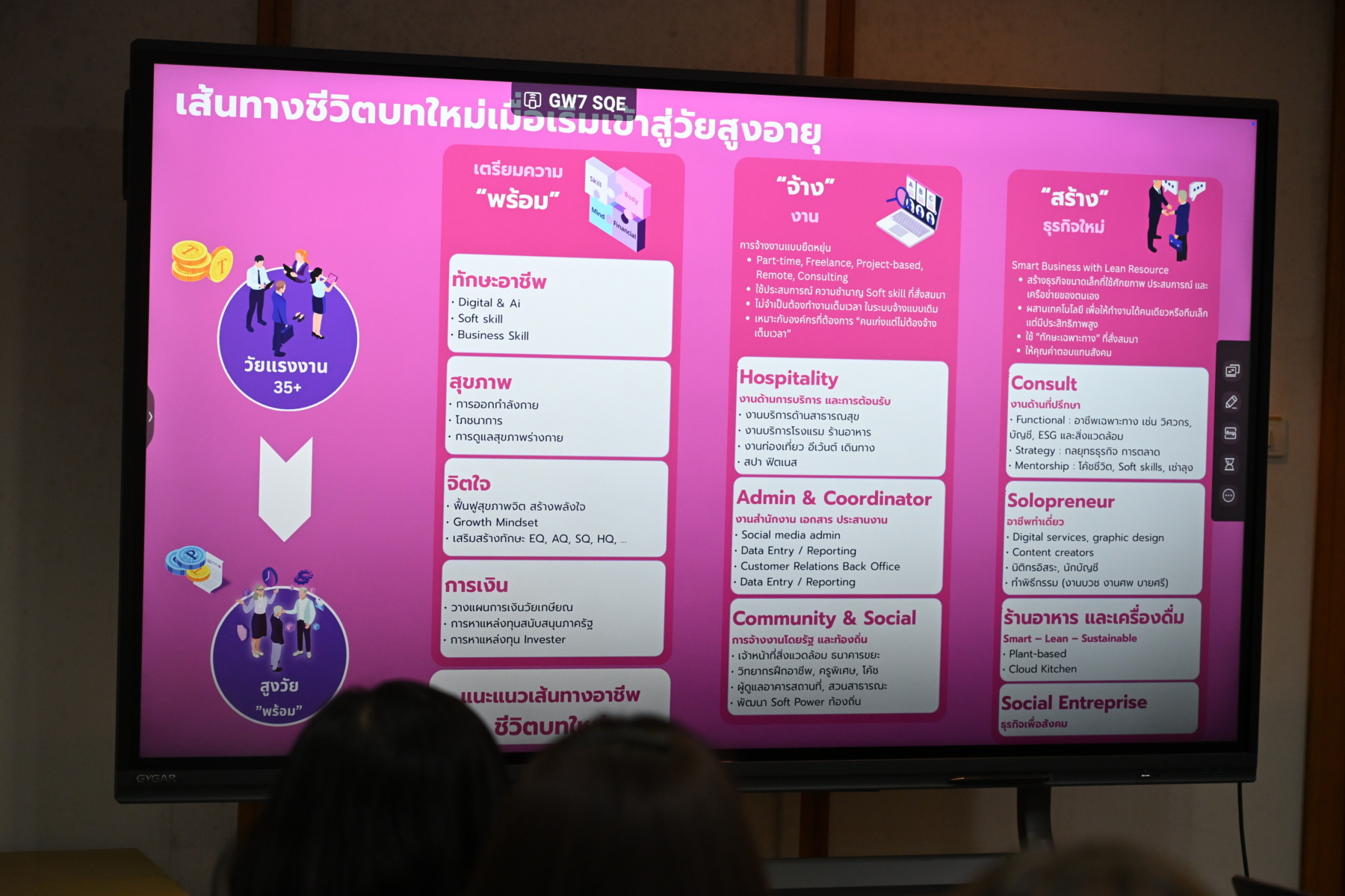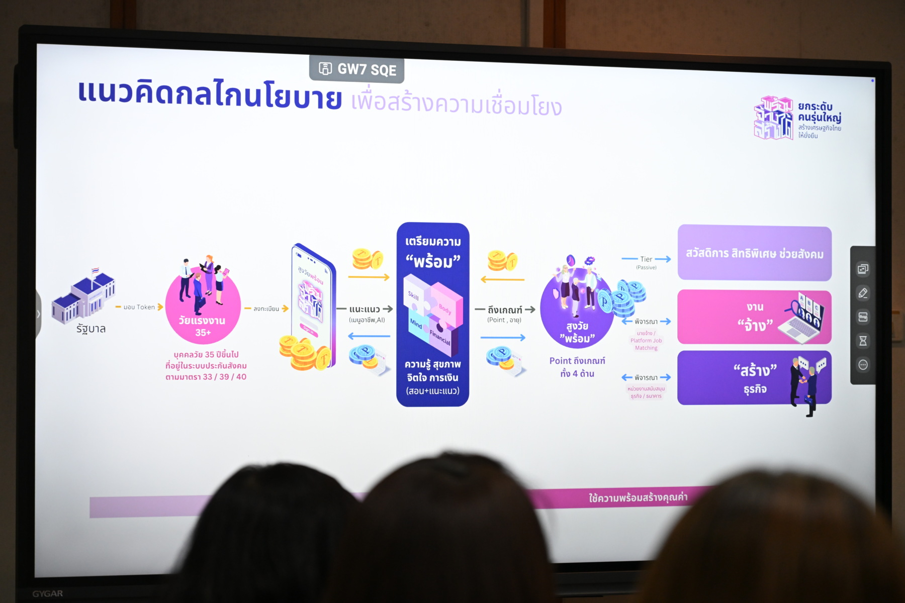 การหารือครั้งนี้มุ่งเน้นการวิเคราะห์แนวทางการปฏิบัติได้จริงของนวัตกรรมเชิงนโยบายเรื่อง “พร้อม จ้าง สร้าง ได้” เพื่อนำไปสู่การเปลี่ยนแปลงในมิติ สุขภาพ สังคม และเศรษฐกิจสูงวัย ซึ่งที่มาของโครงการนี้เป็นข้อเสนอจากผู้ผ่านหลักสูตรอบรมเชิงปฏิบัติการเพื่อการพัฒนาความสามารถทางนวัตกรรมสำหรับกลุ่มผู้นำรุ่นใหม่ภาครัฐและภาคเอกชน (PPCIL) รุ่น 7 โดยกลไกของนวัตกรรมนี้จะเริ่มต้นจากการเตรียมความพร้อมผ่าน Learning Platform ซึ่งครอบคลุมความรู้ด้านทักษะ สุขภาพ จิตใจ และการเงิน