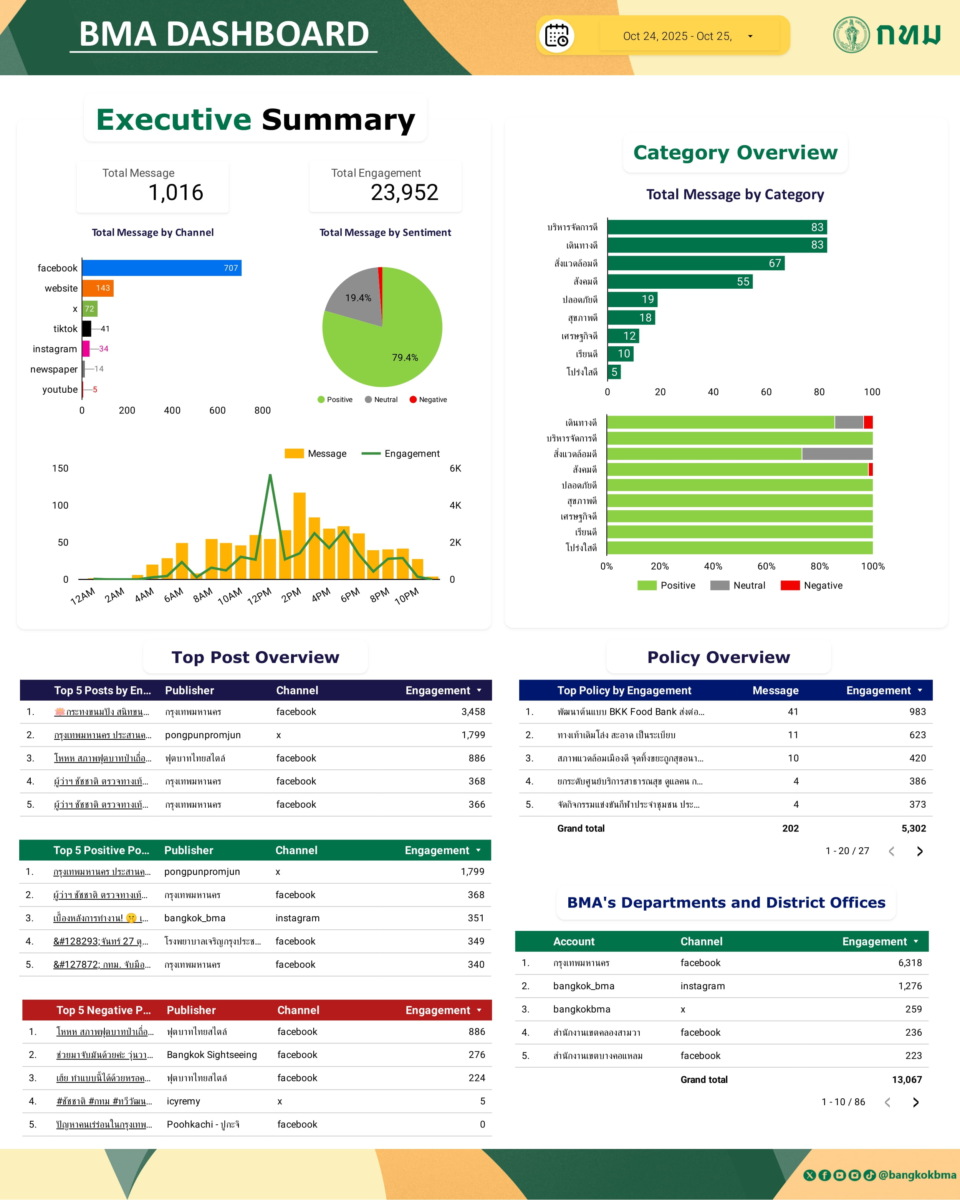 ภาพรวมการกล่าวถึงกรุงเทพมหานครในสื่อออนไลน์ วันที่ 25 ต.ค. 68