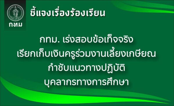อย่างไรก็ตาม จากการให้ถ้อยคำของผู้บริหารโรงเรียนดังกล่าวพบว่า การเรียกเก็บเงินจากบุคลากรในโรงเรียนเกิดขึ้นจากความสมัครใจของข้าราชการครูและบุคลากรในโรงเรียนที่มีวัตถุประสงค์จะแสดงมุทิตาจิตแก่ข้าราชการครูที่เกษียณอายุราชการ 2 คน ในปีงบประมาณ พ.ศ.2568 ที่ผ่านมา โดยจัดเลี้ยงเกษียณที่จังหวัดเพชรบุรีจำนวน 1,500 บาท/คน และทยอยเก็บเงินร่วมกันของข้าราชการครูที่ไปร่วมงานเลี้ยงในแต่ละเดือนตั้งแต่ต้นปี 2568 ส่วนเรื่องความใกล้ชิดเกินความเหมาะสมในระหว่างการปฏิบัติหน้าที่ของ ผอ.โรงเรียน และรอง ผอ.โรงเรียน (หญิง) แห่งหนึ่งในสังกัด กทม. ซึ่งอาจเข้าข่ายพฤติกรรมเชิงชู้สาว สนศ. เห็นว่า ข้อร้องเรียนในลักษณะเช่นนี้เป็นการกระทำผิดวินัยอย่างร้ายแรง และเพื่อให้เกิดความเป็นธรรมแก่ทุกฝ่าย การตรวจสอบข้อเท็จจริง การสอบสวนและแสวงหาพยานหลักฐาน และการลงโทษผู้ถูกกล่าวหา จำเป็นต้องดำเนินการทางวินัยให้ถูกต้องตามหลักเกณฑ์และวิธีการที่กฎหมายกำหนดต่อไป