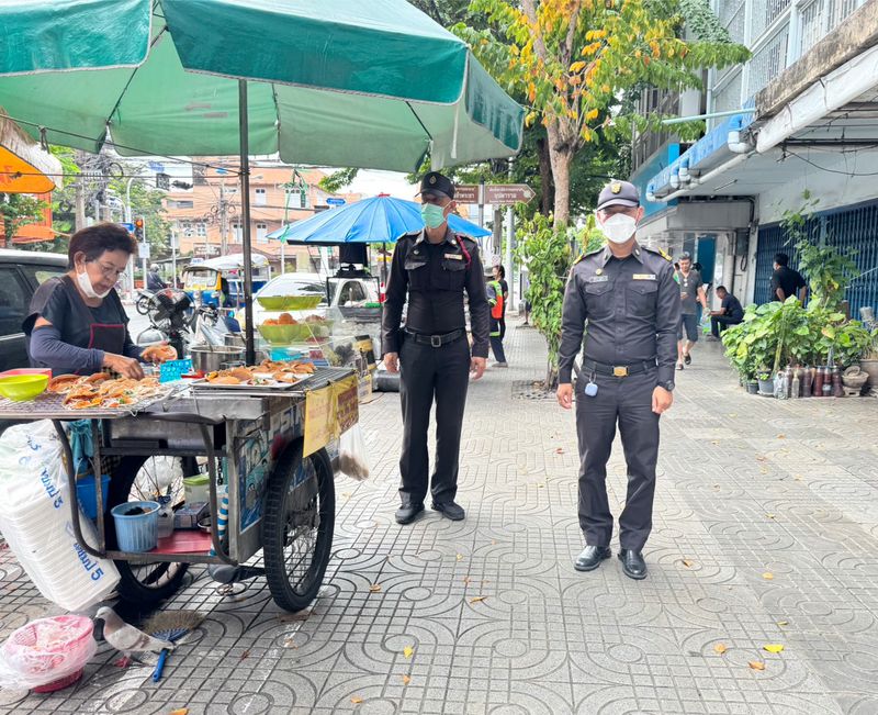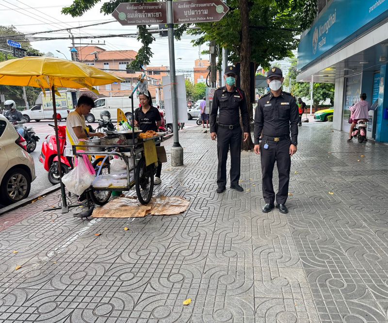 👮🏻♂️ นายอัตถเวท สกุลมา พนักงานเทศกิจปฏิบัติงาน. หัวหน้าชุดสายตรวจ พร้อมเจ้าหน้าที่เทศกิจ ชุดปฏิบัติการ251 ปฏิบัติหน้าที่ตรวจความเป็นระเบียบเรียบร้อยบริเวณจุดพื้นที่ทำการค้าบนทางเท้าถนนท่าดินแดงฝั่งเลขคี่