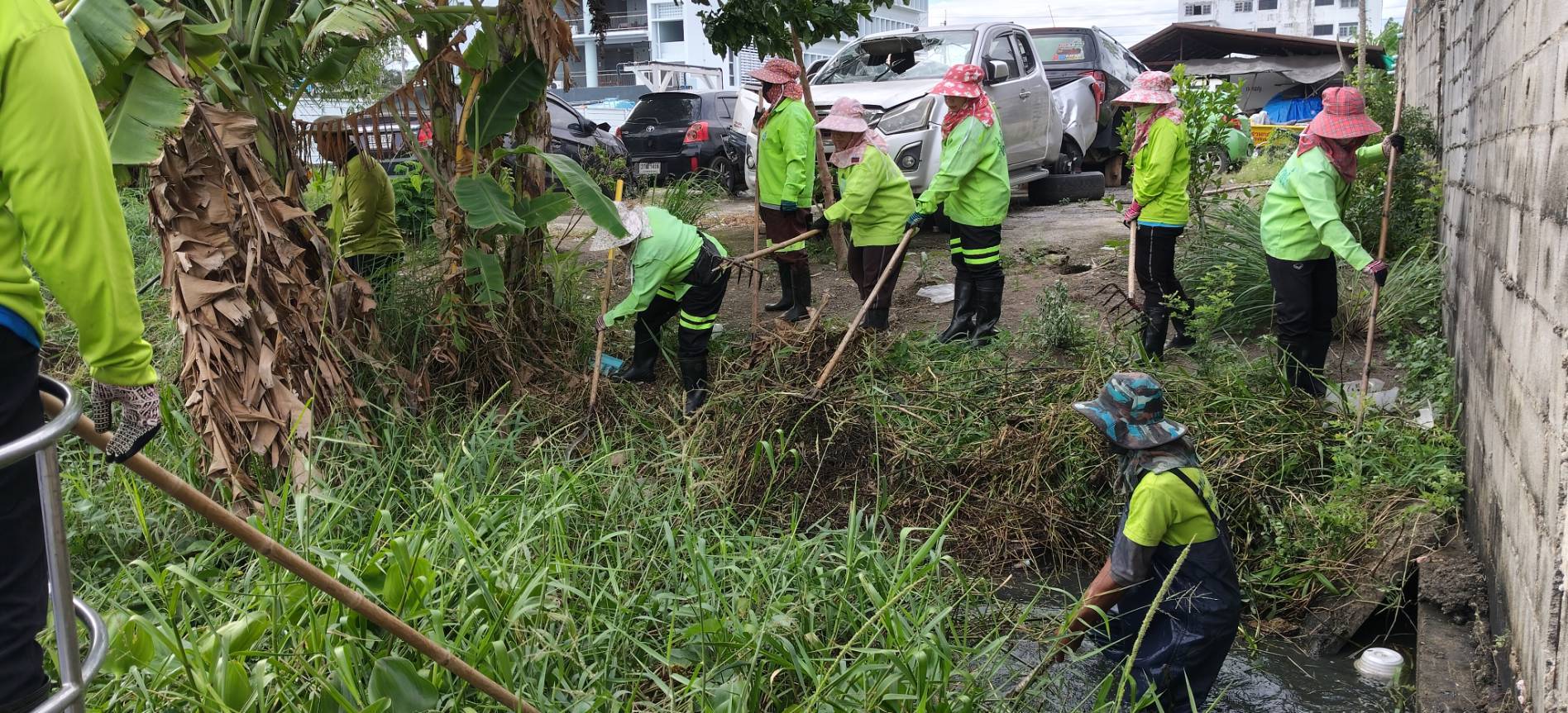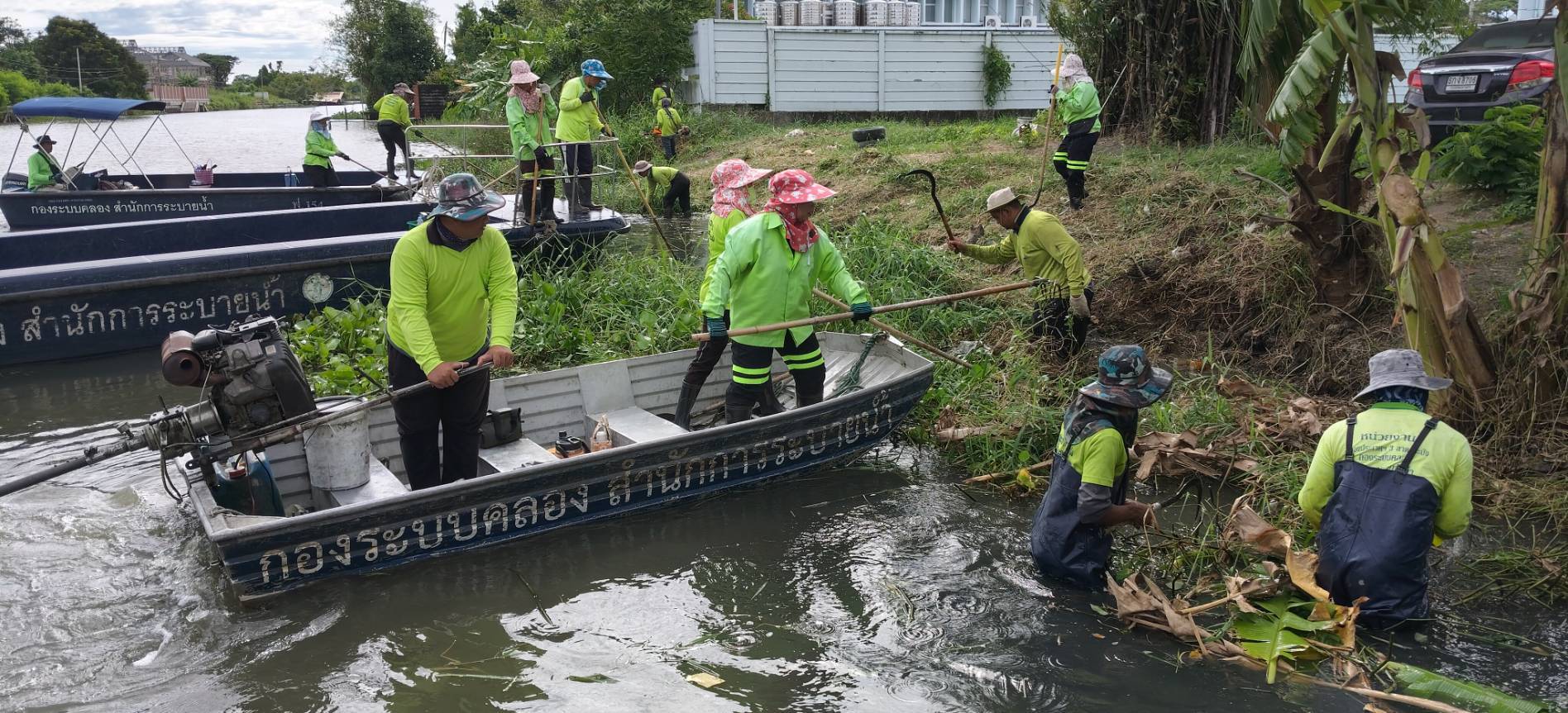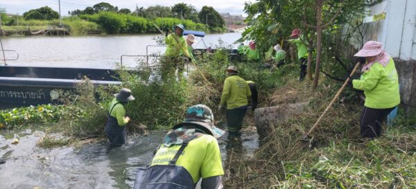 เจ้าหน้าที่ จัดเก็บขยะวัชพืชคลองประเวศบุรีรมย์ บริเวณวัดพลมานีย์เขตลาดกระบัง