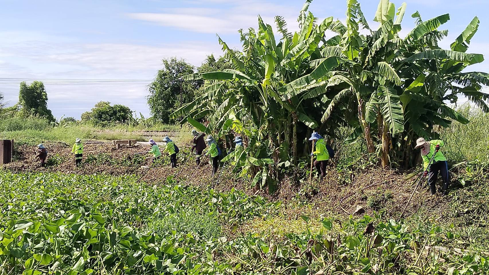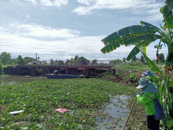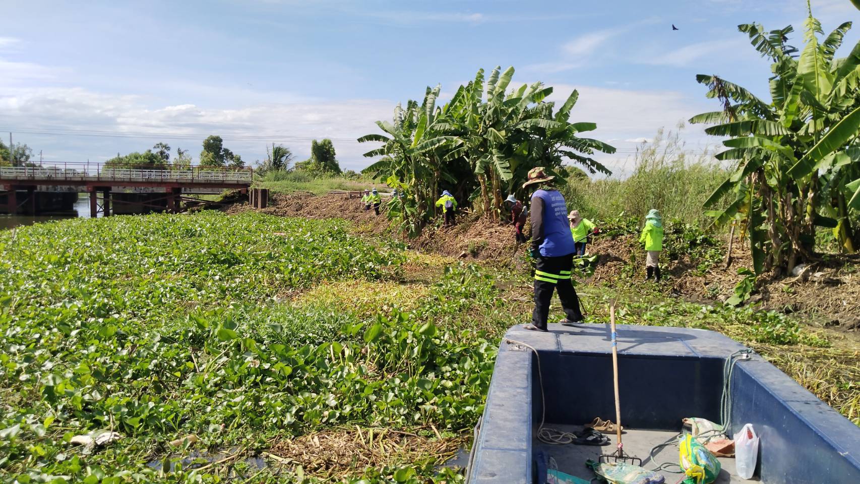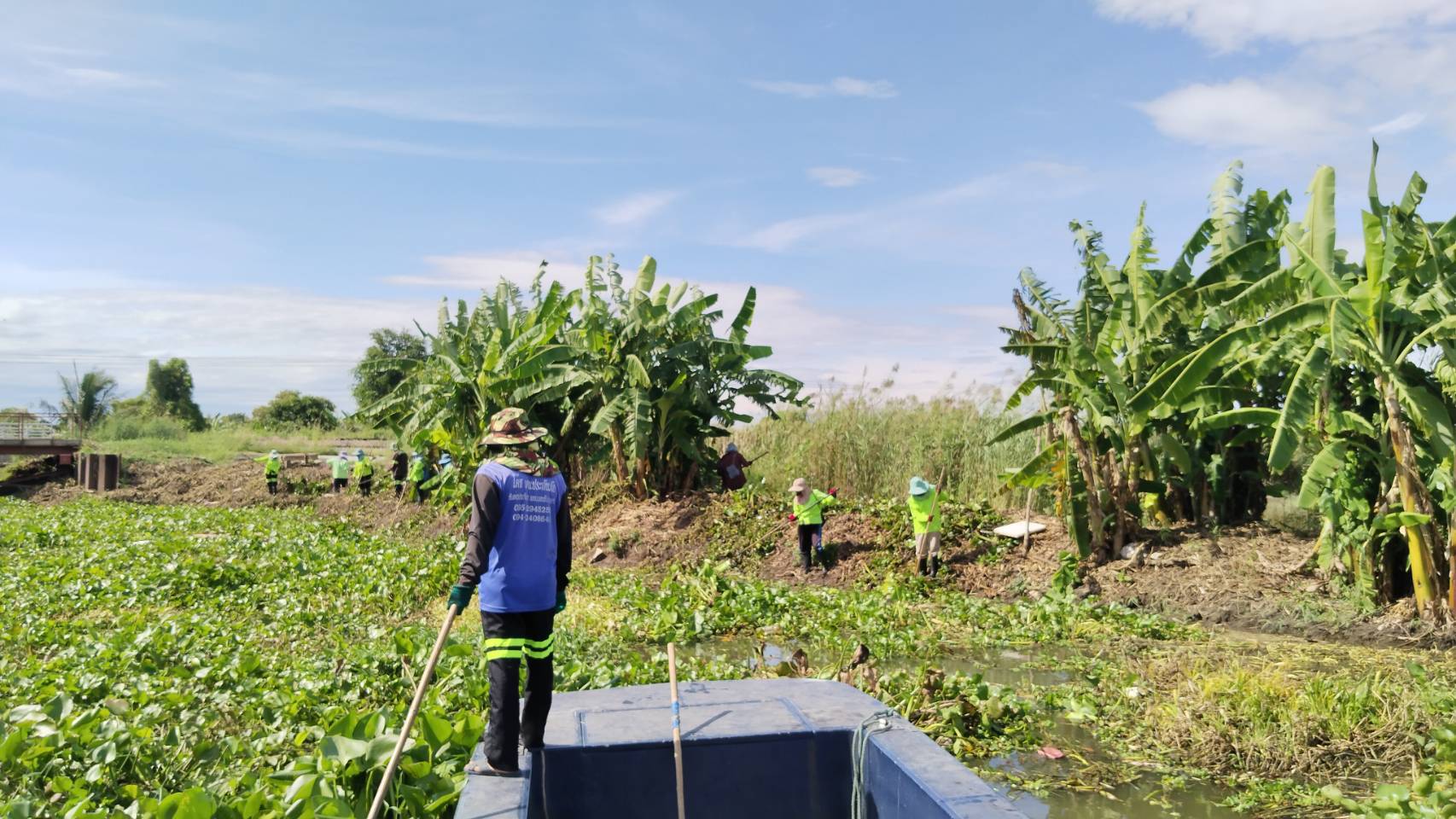 เจ้าหน้าที่ จัดเก็บวัชพืชคลองทับยาวช่วงรถไฟ เขตลาดกระบัง