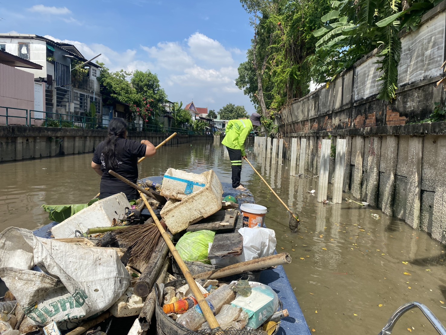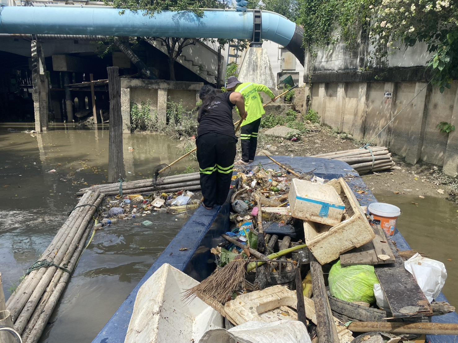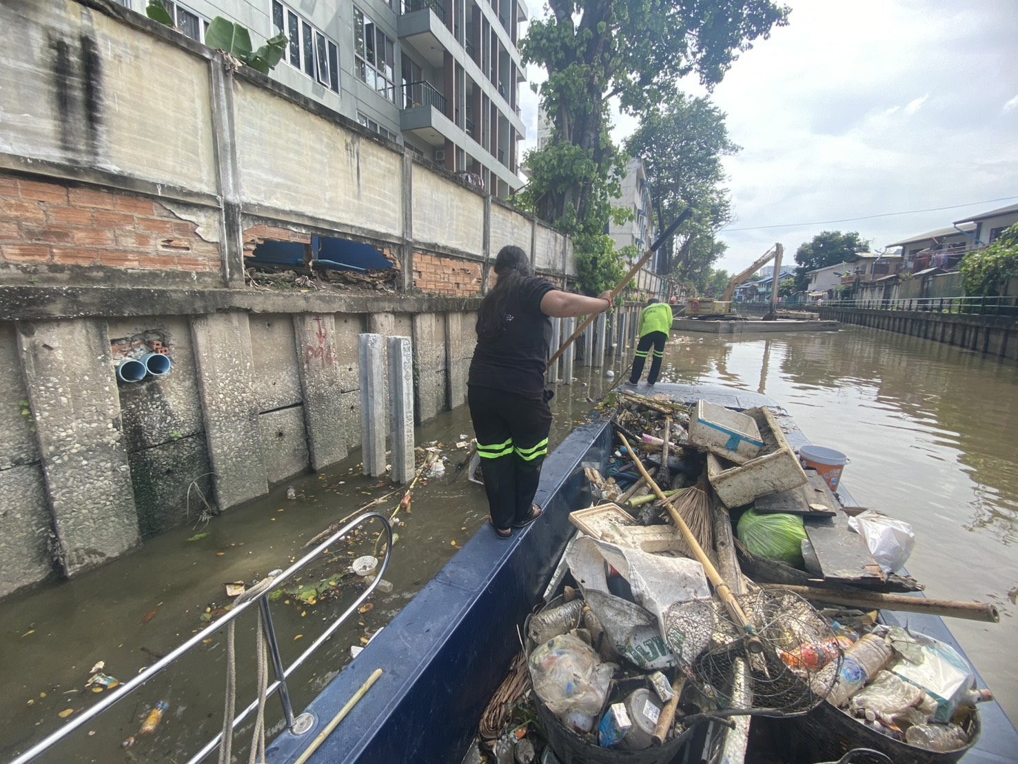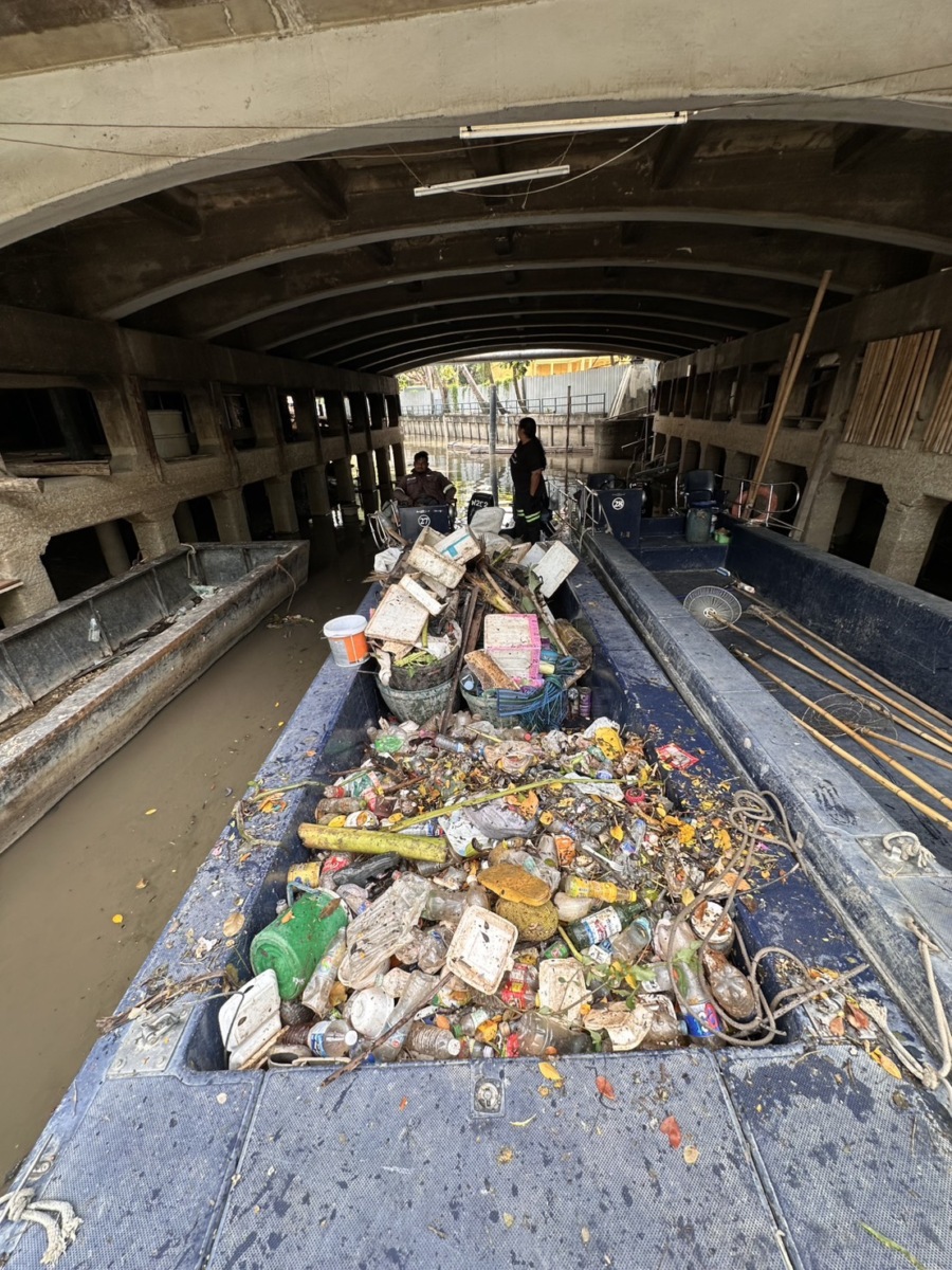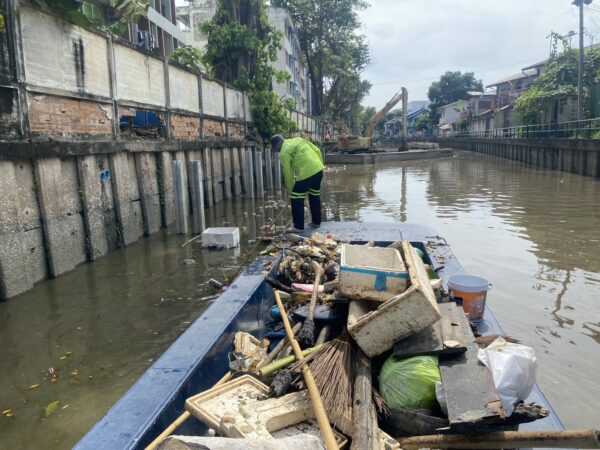 เจ้าหน้าที่ ดำเนินการตักขยะวัชพืช คลองสามเสน เขตดุสิต