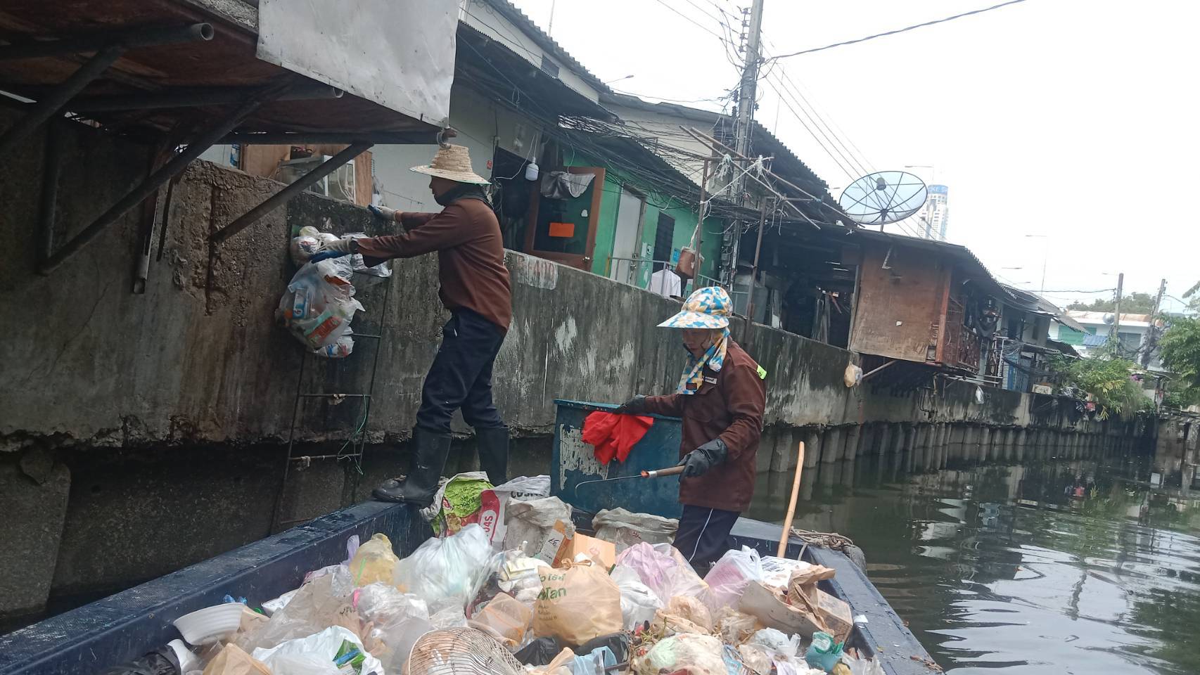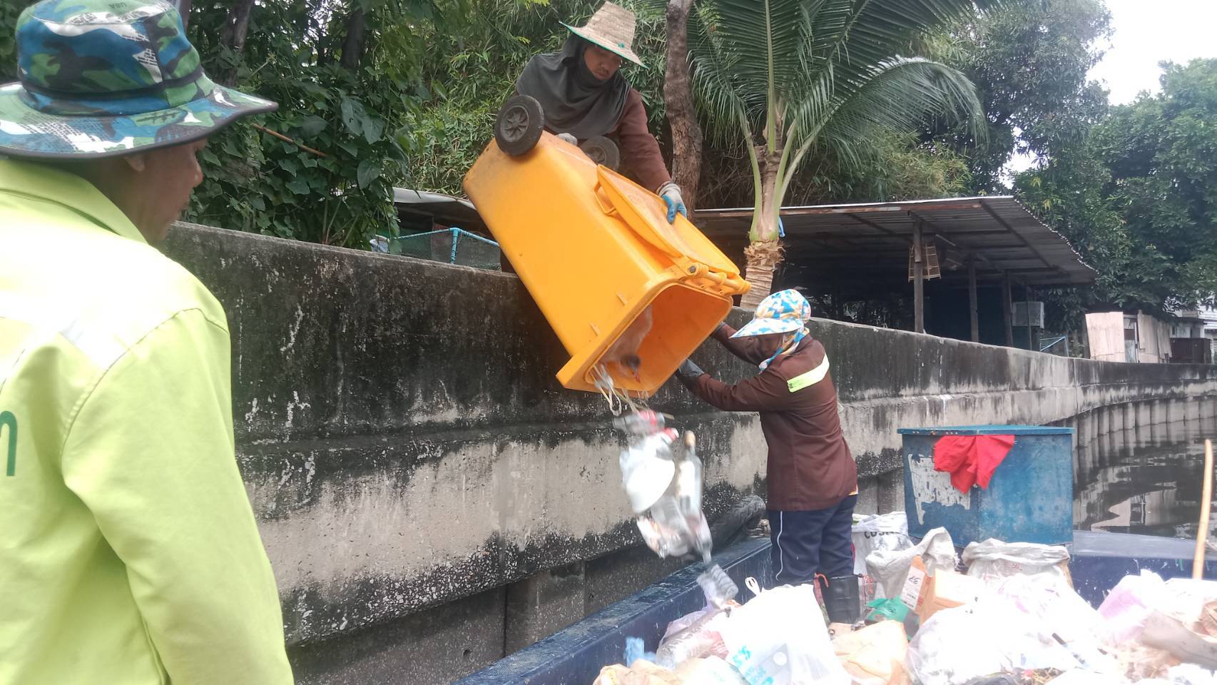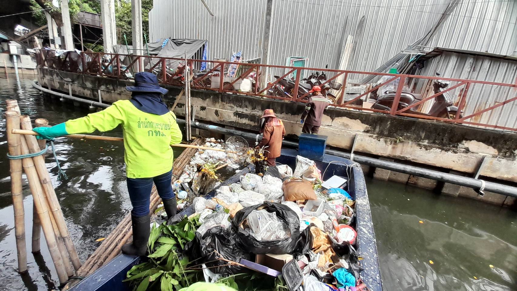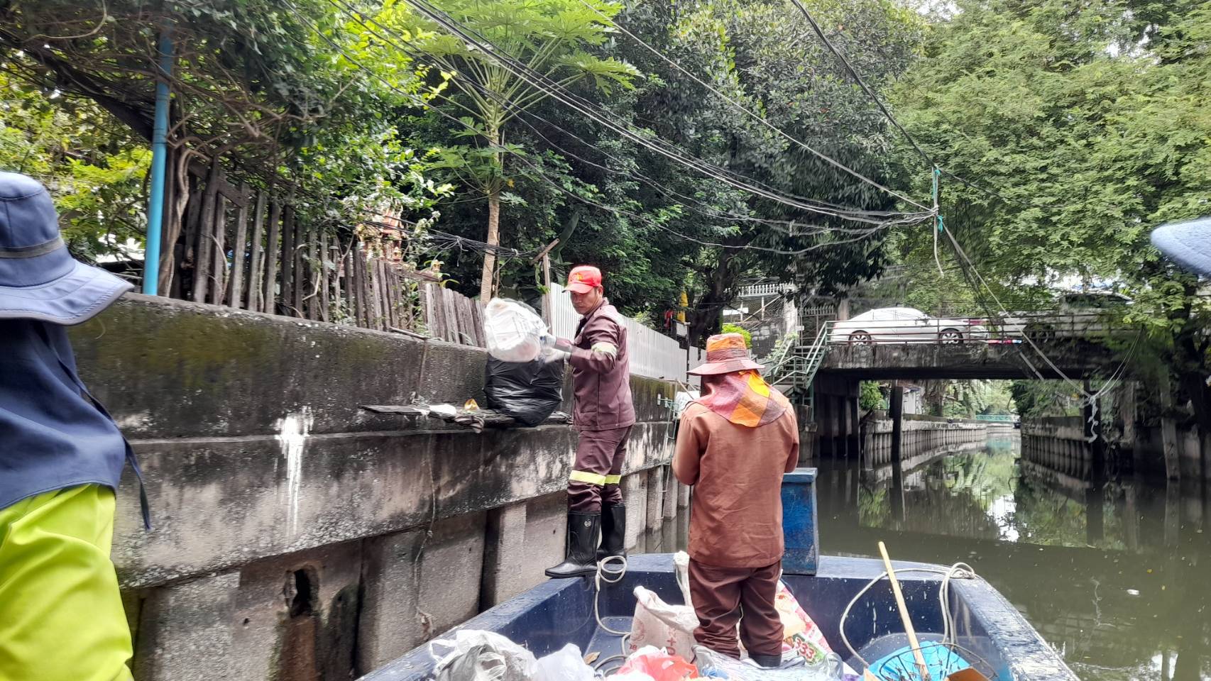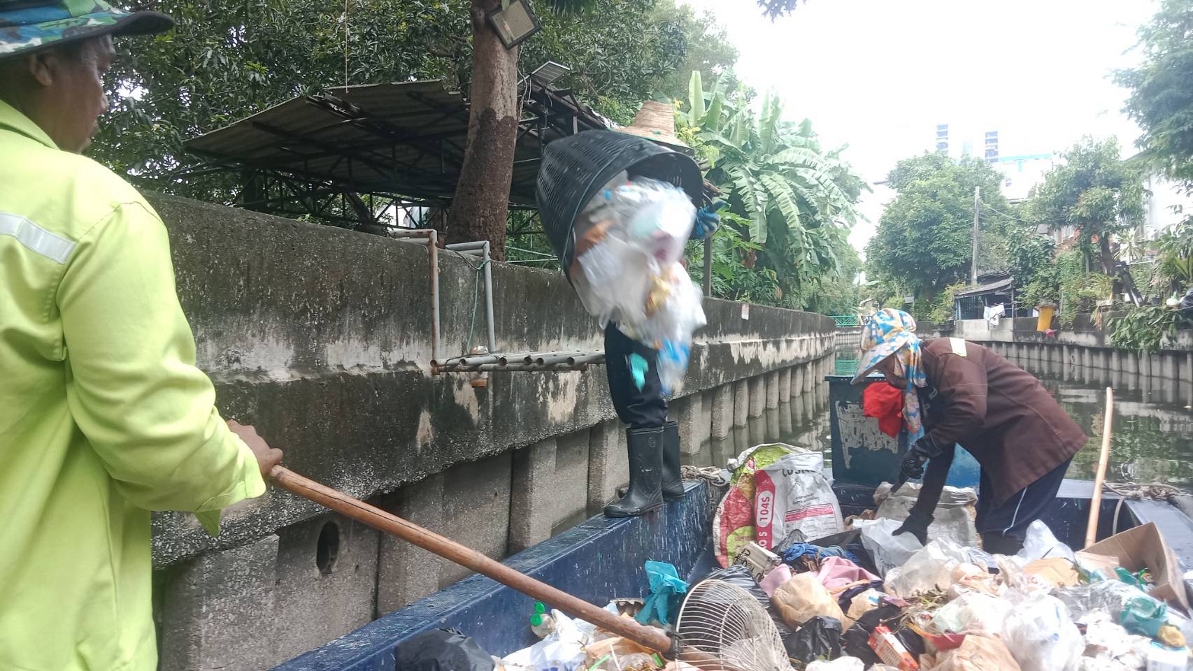 เจ้าหน้าที่ เก็บขยะแนวสันเขื่อนและตักขยะในคลองสามเสน เขตห้วยขวาง เขตดินแดงและเขตราชเทวี