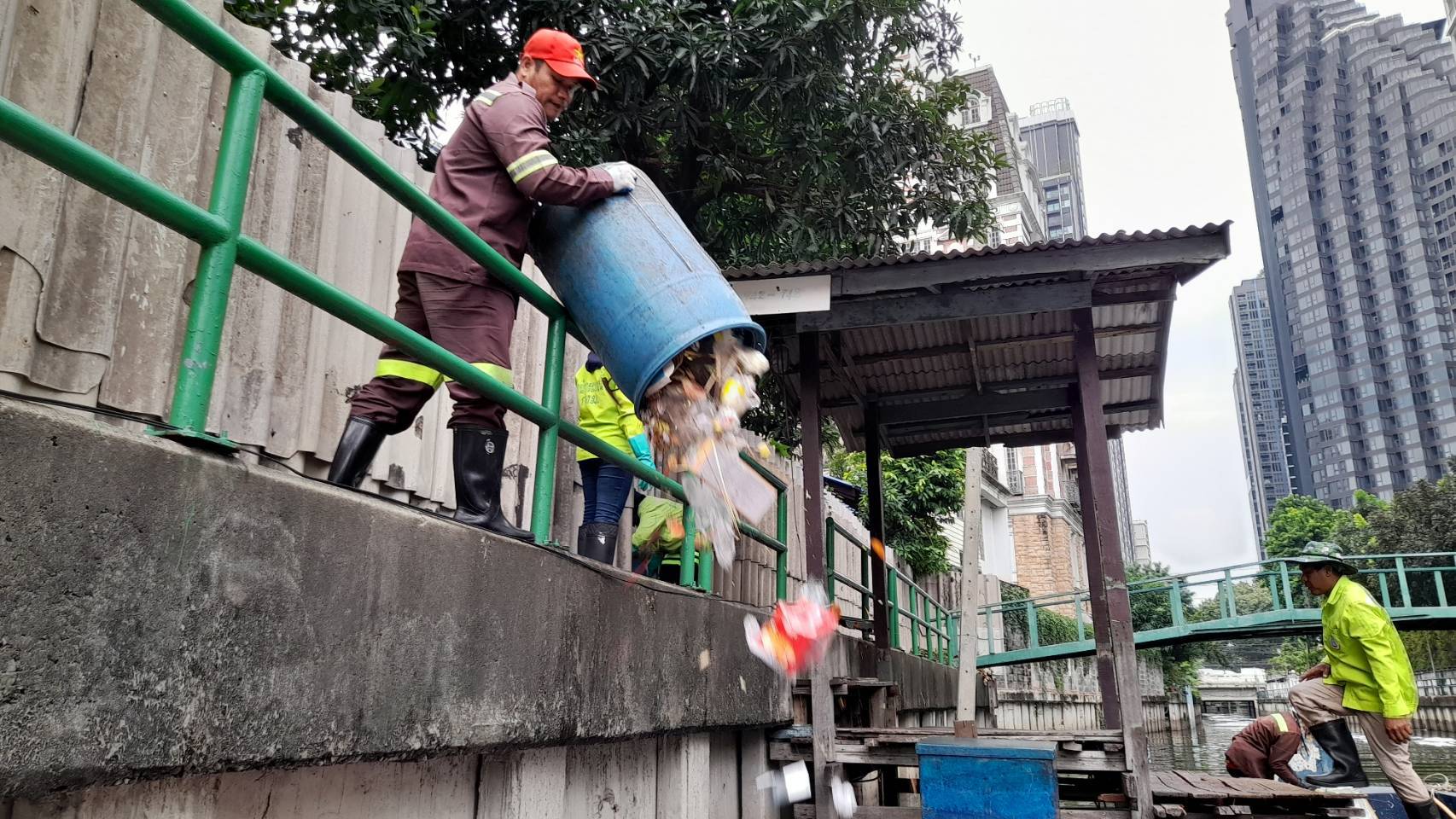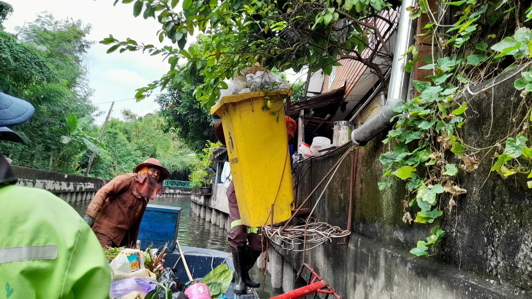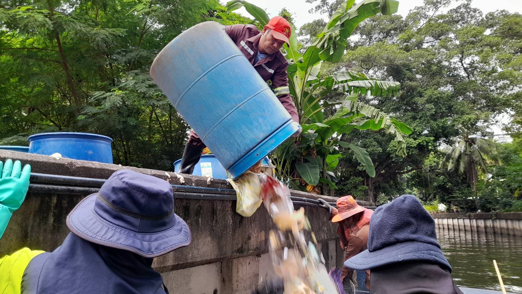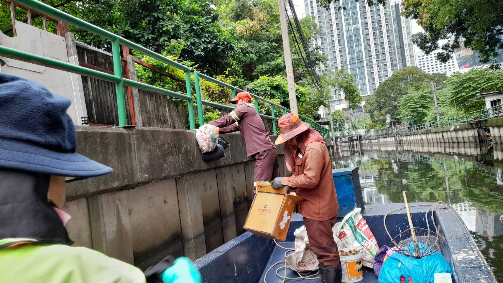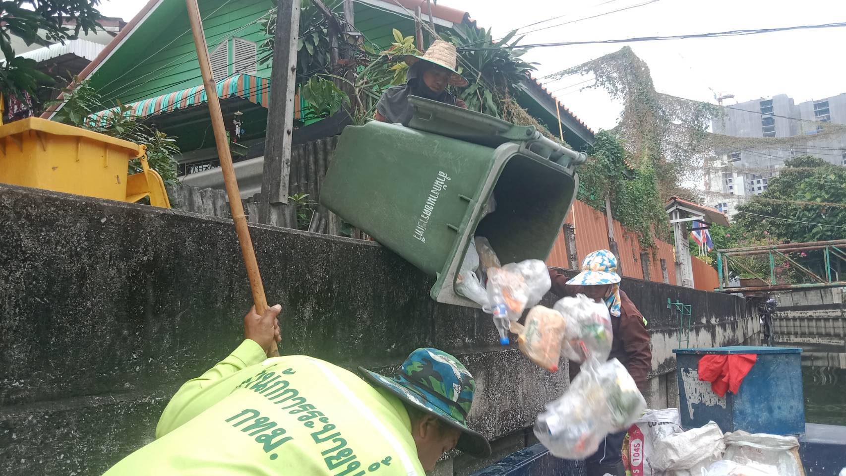 เจ้าหน้าที่ เก็บขยะแนวสันเขื่อนและตักขยะในคลองสามเสน เขตห้วยขวาง เขตดินแดงและเขตราชเทวี
