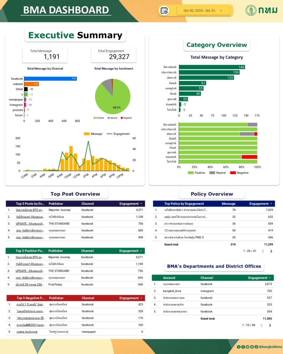 ภาพรวมการกล่าวถึงกรุงเทพมหานครในสื่อออนไลน์ วันที่ 31 ต.ค. 68