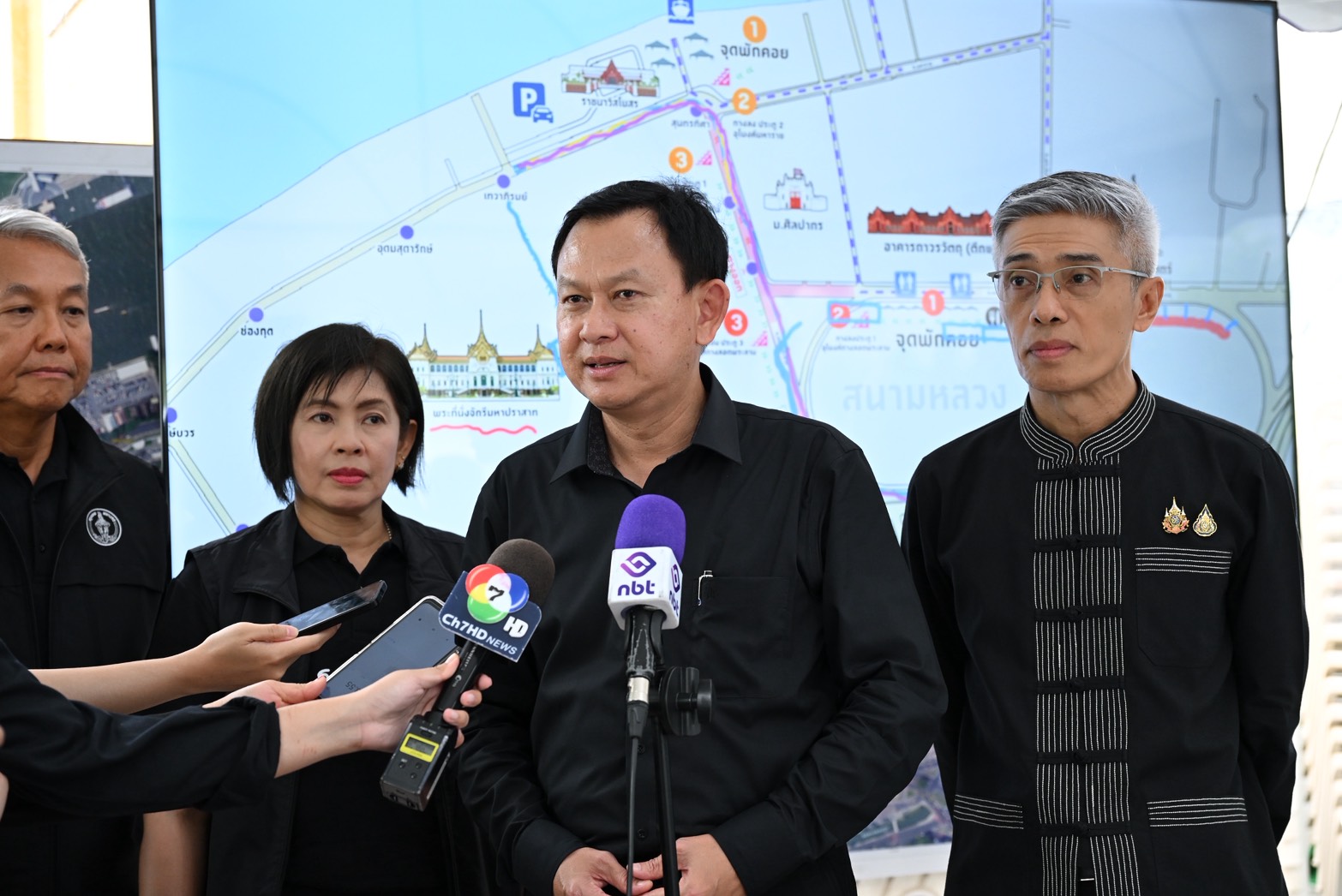 แผนรองรับฝูงชน: คาดการณ์ว่าตั้งแต่วันที่ 9 พ.ย. 68 จะมีประชาชนและนักท่องเที่ยวเข้ามาประมาณ 10,000 – 20,000 คน ซึ่งอาจต้องเพิ่มเต็นท์เพื่อจัดคิวประชาชน โดยควรจะรองรับได้อย่างน้อย 10,000 คน ในส่วนของเส้นทางที่ใช้ นักท่องเที่ยวจะออกทางประตูวิเศษไชยศรี ส่วนผู้มาสักการะจะออกทางประตูเทวาภิรมย์ โดยที่ประตูเทวาภิรมย์จะเป็นจุดคืนรถวีลแชร์ เครื่องแต่งกาย และร่ม และจะมีรถ ขสมก. ชานต่ำ 10 คัน (เพิ่มจาก 5 คัน) คอยรับส่งประชาชนจากประตูเทวาภิรมย์ ผ่านท่าช้าง ถนนหน้าพระลาน ถนนราชดำเนินใน ผ่านศาลหลักเมือง ไปยังจุดขึ้นรถขนส่งสาธารณะที่สนามหลวง
