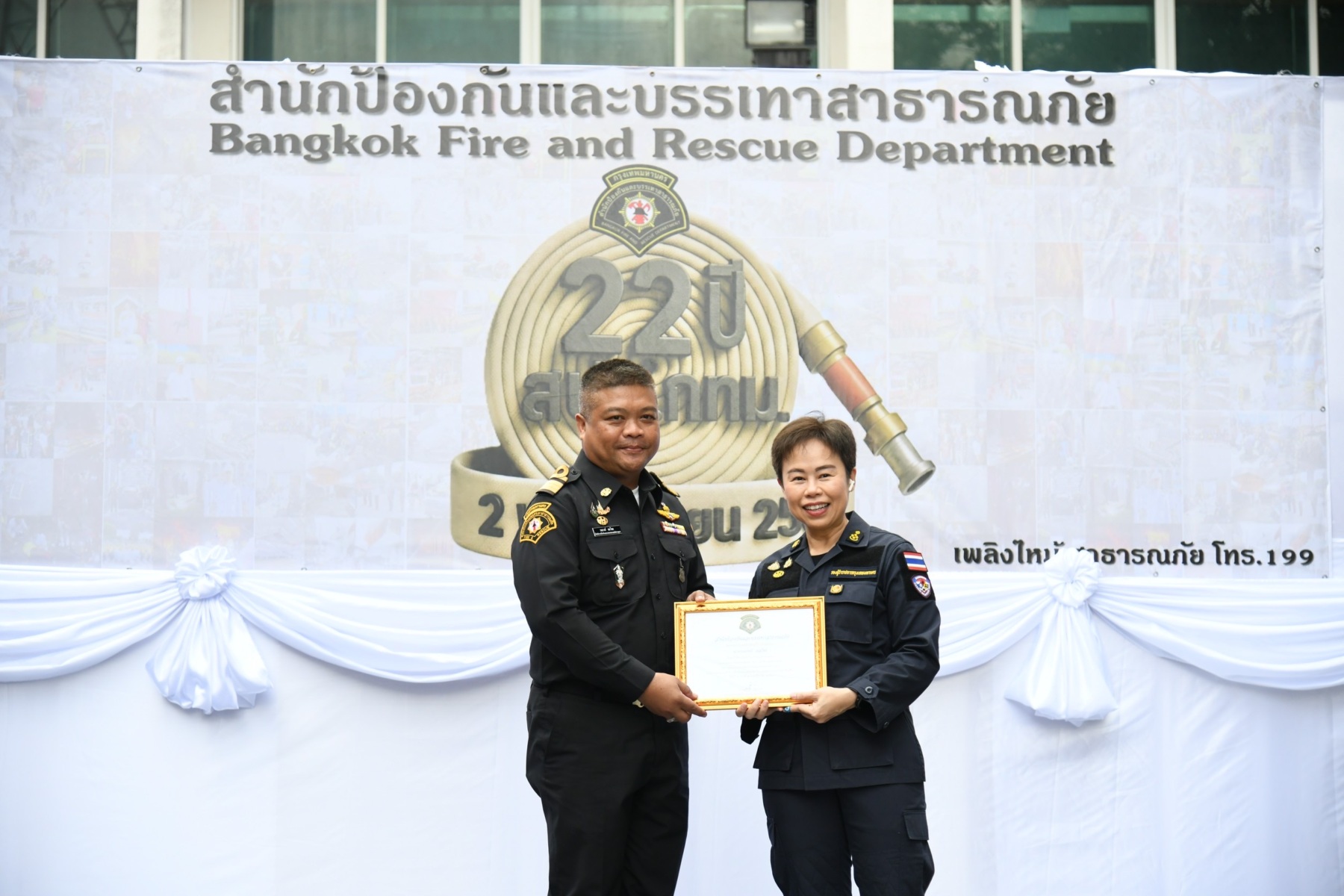 รองผู้ว่าราชการกรุงเทพมหานคร ได้กล่าวแสดงความยินดีกับสำนักป้องกันและบรรเทาสาธารณภัย (สปภ.) ในโอกาสวันคล้ายวันสถาปนาครบ 22 ปี ซึ่งวันนี้น่าจะภูมิใจได้ว่ายังไม่มีงานไหนที่การปฏิบัติงานผิดพลาดจนกระทบกับการช่วยเหลือประชาชนในช่วงเวลาที่ผ่านมา เรามีพัฒนาการจากในช่วงแรก เมื่อสามปีที่แล้ว ซึ่งอาจจะมีข้อบกพร่องบ้าง ส่วนหนึ่งเพราะประชาชนช่วยเรา จากทรัพยากรที่เราลงไปให้ และการเตรียมพร้อมฝึกฝนชุมชน ซึ่งอย่างน้อยในการปรากฏตัวในชุมชนจะทำให้เห็นว่าเราทำอะไร ช่วยอะไรได้บ้าง ทำให้เป็นการบอกว่าเราไม่ได้ทำงานแค่เฉพาะเวลาเกิดเรื่อง จริง ๆ