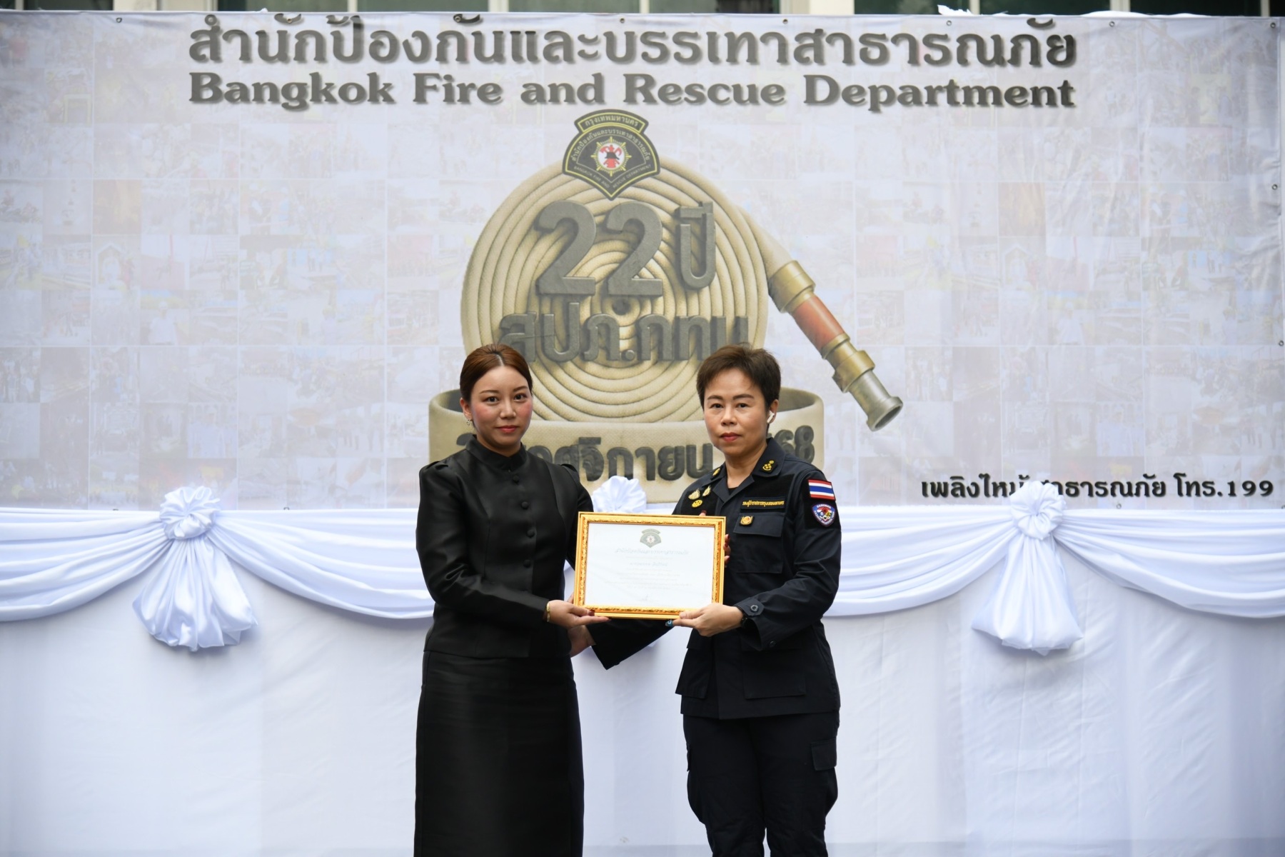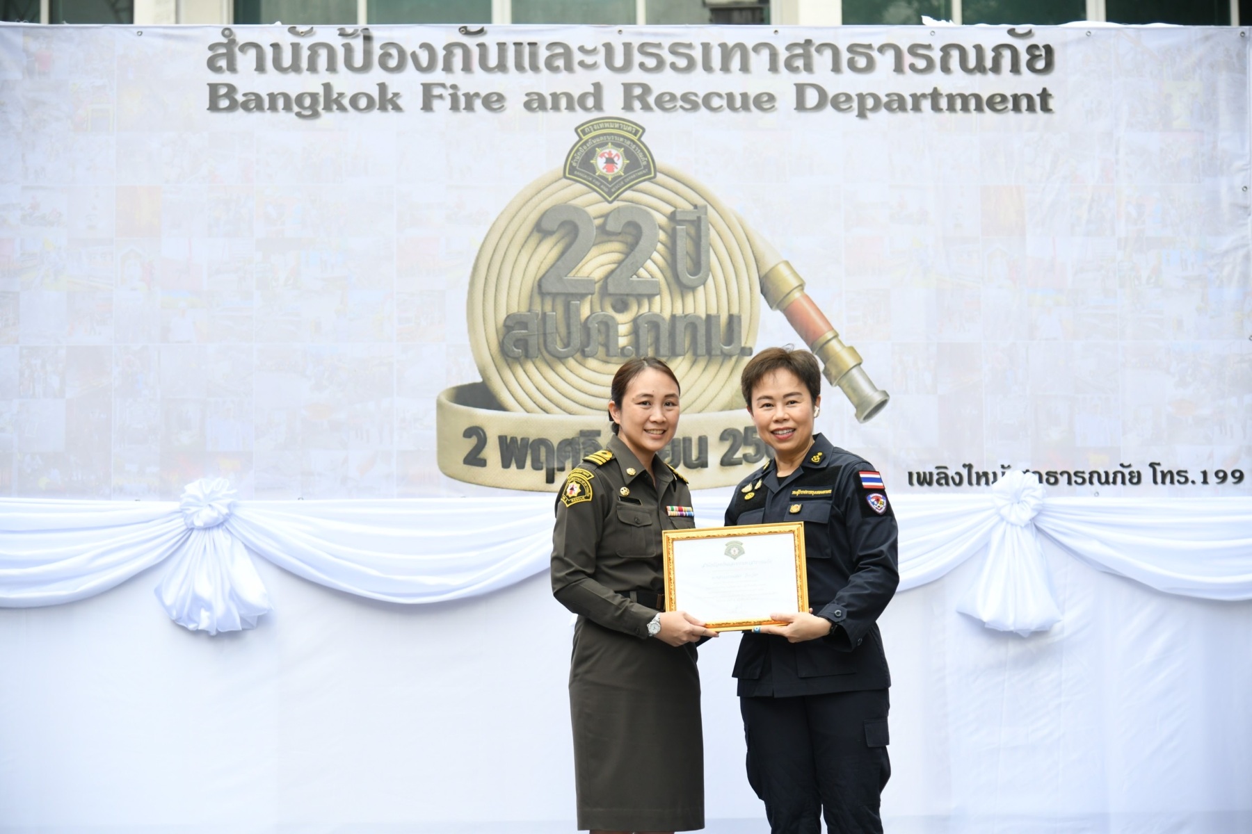 (2 พ.ย. 68) รศ.ทวิดา กมลเวชช รองผู้ว่าราชการกรุงเทพมหานคร มอบประกาศเกียรติคุณปฏิบัติงานดีเด่น ประจำปี 2568 ของสำนักป้องกันและบรรเทาสาธารณภัย กรุงเทพมหานคร ในการจัดงานวันสถาปนาสำนักป้องกันและบรรเทาสาธารณภัย ประจำปี 2568 (ครบ 22 ปี) ณ สำนักป้องกันและบรรเทาสาธารณภัย ถนนพระรามที่ 6 เขตราชเทวี
