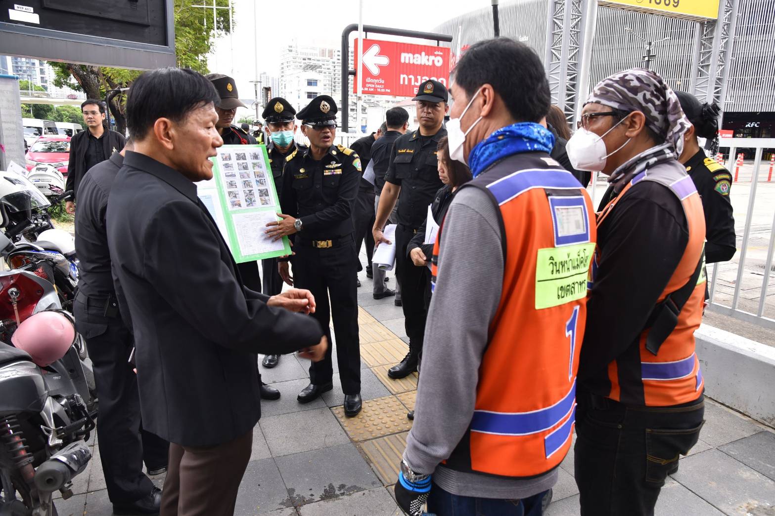 ติดตามการจัดระเบียบวินรถจักรยานยนต์สาธารณะ วินหน้าห้างแม็คโคร ถนนนราธิวาสราชนครินทร์ ผู้ขับขี่ 11 คน สถานที่ตั้งวินและจุดจอดรถจักรยานยนต์อยู่บนทางเท้า ปัจจุบันเขตฯ มีวินรถจักรยานยนต์สาธารณะในพื้นที่ 155 วิน ผู้ขับขี่ 1,919 คน มีวินรถจักรยานยนต์สาธารณะที่มีศักยภาพเพื่อพัฒนาให้เป็นวินต้นแบบ 32 วิน ซึ่งเขตฯ ได้ตรวจความเรียบร้อยตามแบบประเมินวินรถจักรยานยนต์สาธารณะอย่างต่อเนื่อง หากพบว่ามีข้อใดไม่ถูกต้องตามเกณฑ์จะแจ้งข้อบกพร่องให้ผู้ขับขี่รับทราบ เพื่อดำเนินการแก้ไขให้ถูกต้องเรียบร้อย สำหรับแบบประเมินวินรถจักรยานยนต์สาธารณะ ประกอบด้วย 1.ด้านความสะอาด ได้แก่ สถานที่ตั้งวินและโดยรอบต้องมีความสะอาด ไม่มีการตอกผูกยึดโยง 2.ด้านความเป็นระเบียบเรียบร้อย ได้แก่ จอดรถจักรยานยนต์เป็นระเบียบ ไม่กีดขวางทางเท้าหรือพื้นผิวจราจร ตั้งวางม้านั่งเป็นระเบียบ 3.ด้านกฎหมาย ได้แก่ การแต่งกายถูกต้องตามที่กฎหมายกำหนด เสื้อวิน เบอร์เสื้อถูกต้องตามบัญชี ไม่ขับขี่บนทางเท้า ป้ายทะเบียนถูกต้อง สวมหมวกนิรภัย ป้ายอัตราค่าโดยสารถูกต้อง ไม่เก็บค่าโดยสารเกินราคา ไม่นำเสื้อวินไปเช่าช่วงต่อ 4.ด้านอื่น ๆ ได้แก่ ไม่ดื่มสุรา กริยามารยาทสุภาพ ทั้งนี้ รองผู้ว่าราชการกรุงเทพมหานคร ได้มอบหมายให้เขตฯ จัดระเบียบวินรถจักรยานยนต์สาธารณะให้เป็นระเบียบเรียบร้อย ตรวจตามแบบประเมินวินรถจักรยานยนต์สาธารณะอย่างเคร่งครัด เน้นย้ำผู้ขับขี่รถจักรยานยนต์สาธารณะให้ปฏิบัติตามระเบียบข้อบังคับที่กฎหมายกำหนด อาทิ การแต่งกาย ป้ายทะเบียนรถ อัตราค่าโดยสาร สถานที่ตั้งวิน วินัยจราจร รวมถึงตรวจสอบจำนวนผู้ขับขี่ในแต่ละวิน จัดทำข้อมูลให้ถูกต้องครบถ้วนและเป็นปัจจุบัน โดยเฉพาะข้อมูลจำนวนวินของเขตฯ และของสำนักเทศกิจจะต้องตรงกัน ตรวจสอบในพื้นที่ไม่ให้มีการแยกไปตั้งวินย่อยอย่างเด็ดขาด