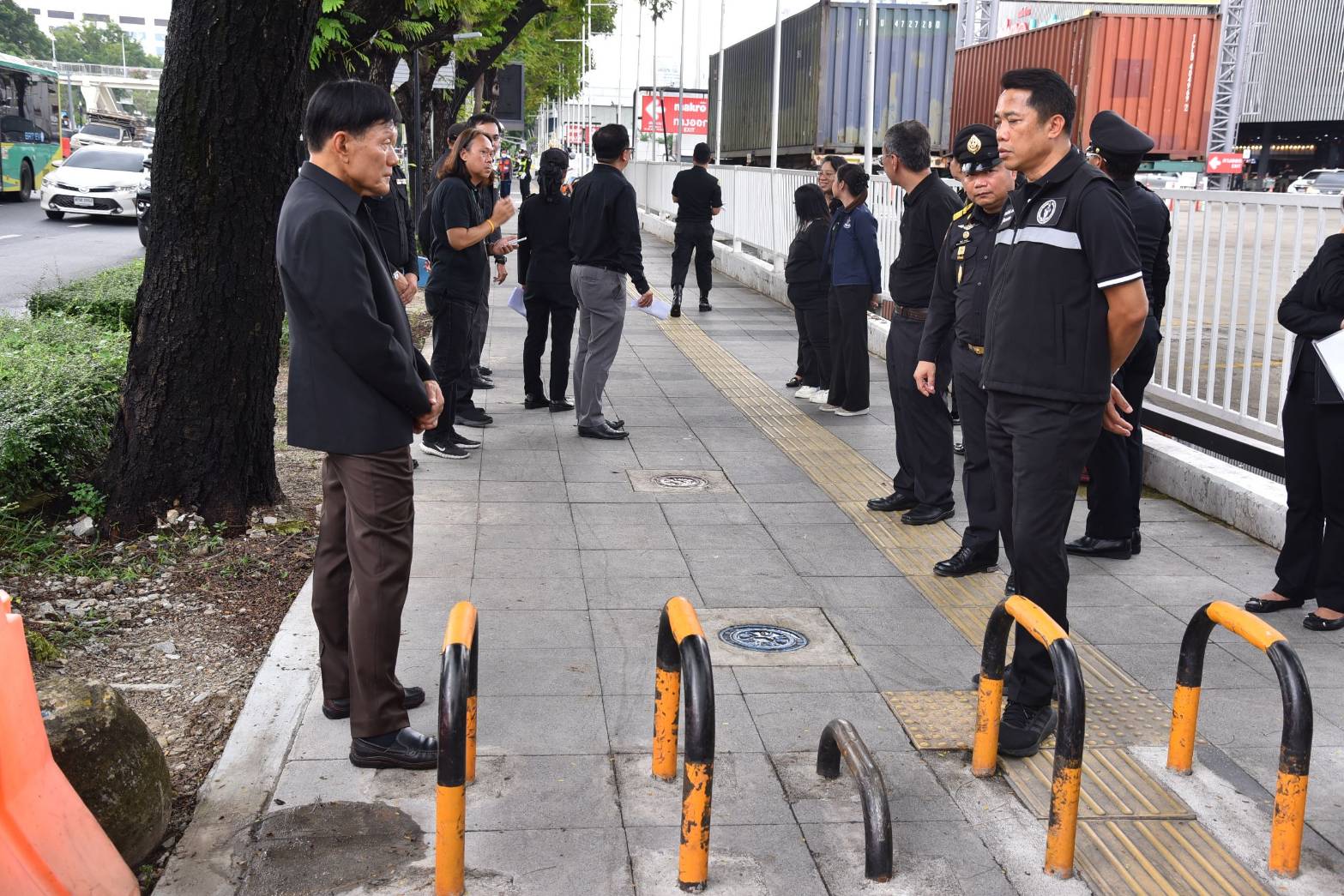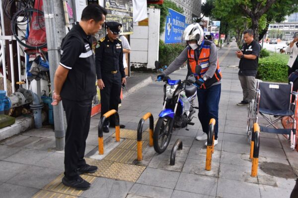 ตรวจจุดติดตั้งกล้อง CCTV จับภาพอัจฉริยะผ่านระบบ BMA AI บริเวณหน้าห้างแม็คโคร ถนนนราธิวาสราชนครินทร์ ซึ่งเขตฯ มีจุดติดตั้งกล้อง CCTV จำนวน 2 จุด ได้แก่ 1.หน้าห้างแม็คโคร (ตรงข้ามเทคนิคกรุงเทพ) 2.ปากซอยนราธิวาสนครินทร์ 7 เพื่อตรวจจับผู้กระทำความผิดขับขี่รถจักรยานยนต์บนทางเท้า กวดขันวินัยจราจรเปรียบเทียบปรับแก่ผู้ฝ่าฝืนนำรถยนต์ขึ้นมาจอดหรือผู้ขับขี่รถจักรยานยนต์บนทางเท้า บังคับการตามพระราชบัญญัติรักษาความสะอาดและความเป็นระเบียบเรียบร้อยของบ้านเมือง พ.ศ.2535 และที่แก้ไขเพิ่มเติม และพระราชบัญญัติว่าด้วยการปรับเป็นพินัย พ.ศ.2565 ซึ่งเขตฯ ได้ติดป้ายประชาสัมพันธ์แจ้งเตือน ติดตั้งเสาเหล็กกั้นป้องกันรถจักรยานยนต์ขึ้นบนทางเท้า โดยมีระยะห่างระหว่างช่องว่าง เพื่อให้รถเข็นผู้พิการสามารถเข็นผ่านได้ จัดเจ้าหน้าที่เทศกิจเฝ้าระวังในจุดดังกล่าวเป็นประจำ ผู้ฝ่าฝืนต้องระวางโทษปรับเป็นพินัยไม่เกิน 5,000 บาท