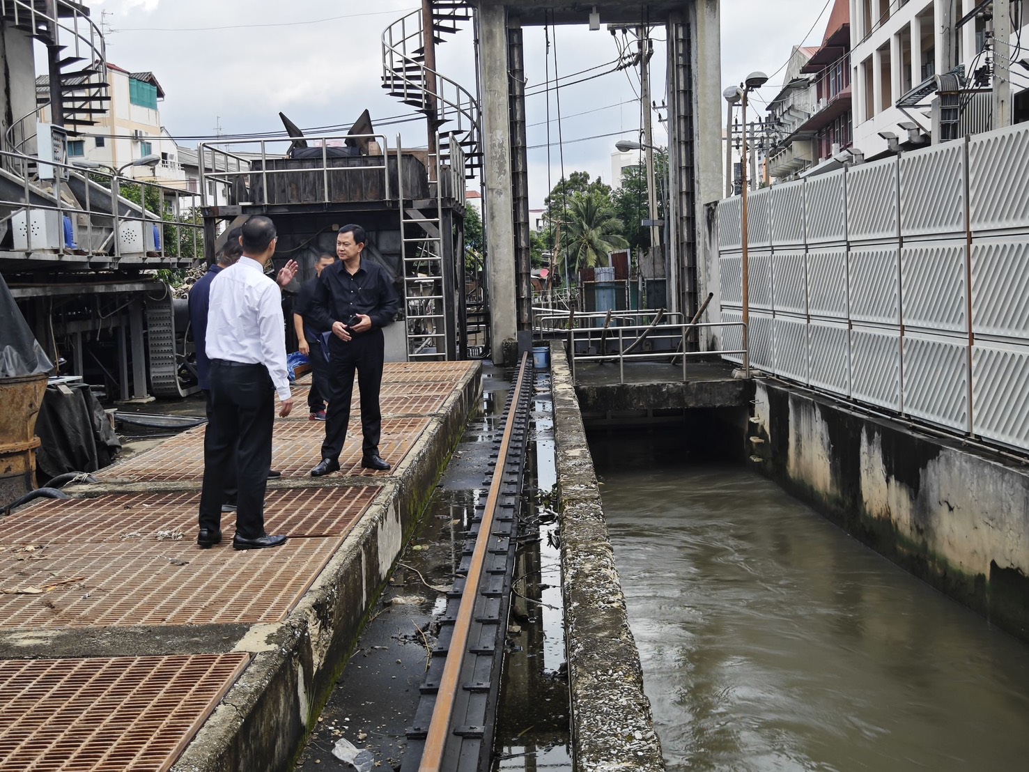 จากนั้น เดินทางไปยังสถานีสูบน้ำเทศบาลตำบลหลักหก จังหวัดปทุมธานี หารือร่วมกับเจ้าหน้าที่เทศบาลหลักหกในการเพิ่มอัตราการระบายน้ำจากคลองเปรมประชากรลงสู่คลองรังสิตประยูรศักดิ์ เพื่อช่วยเร่งระบายน้ำออกจากพื้นที่กรุงเทพมหานครอีกทางหนึ่ง