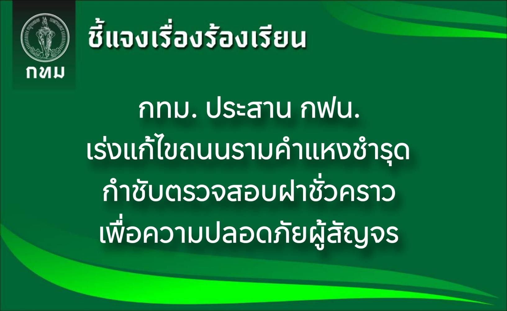 นายประพาส เหลืองศิรินภา ผู้อำนวยการสำนักการโยธา (สนย.) กทม. กล่าวกรณีมีข้อวิจารณ์ถนนรามคำแหงมีแผ่นเหล็กวางไม่เสมอผิวจราจรและมีหลุมชำรุดหลายจุด เสี่ยงต่อการเกิดอุบัติเหตุว่า สนย. ลงพื้นที่ตรวจสอบแล้วพบว่า ถนนรามคำแหงช่วงแยกรามคำแหงถึงซอยรามคำแหง 85 กทม. ได้มอบพื้นที่ให้การไฟฟ้านครหลวง (กฟน.) ก่อสร้างบ่อพักและท่อร้อยสายไฟฟ้าใต้ดิน รวมถึงฐานคอนกรีตสำหรับติดตั้งอุปกรณ์ไฟฟ้า ภายใต้โครงการเปลี่ยนระบบสายไฟฟ้าอากาศเป็นสายไฟฟ้าใต้ดิน ตามแนวรถไฟฟ้าสายสีส้ม (ตะวันออก) โดยเริ่มดำเนินการตั้งแต่วันที่ 30 เม.ย. 68