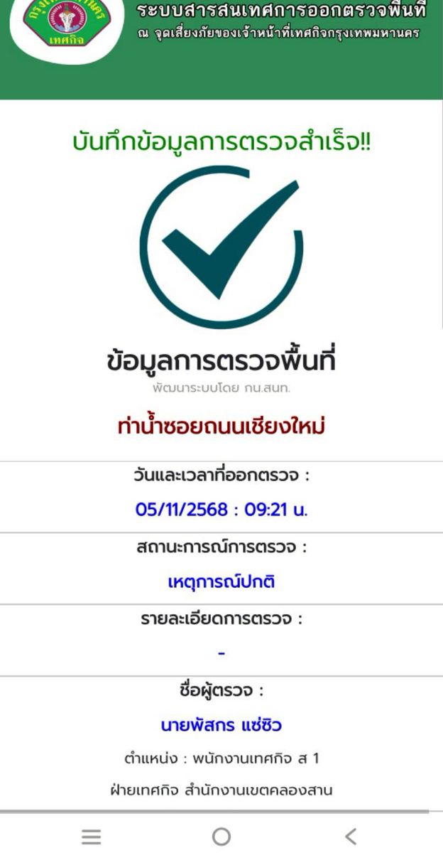📋 นายณัฐดนัย เขาแก้ว พนักงานเทศกิจปฏิบัติงาน หัวหน้าชุดสายตรวจ พร้อมเจ้าหน้าที่เทศกิจชุด 254 ออกปฏิบัติหน้าที่ตรวจจุดเสี่ยงภัย (ตู้เขียว) และตรวจสอบกล้องวงจรปิด CCTV บริเวณท่าน้ำซอยถนนเชียงใหม่