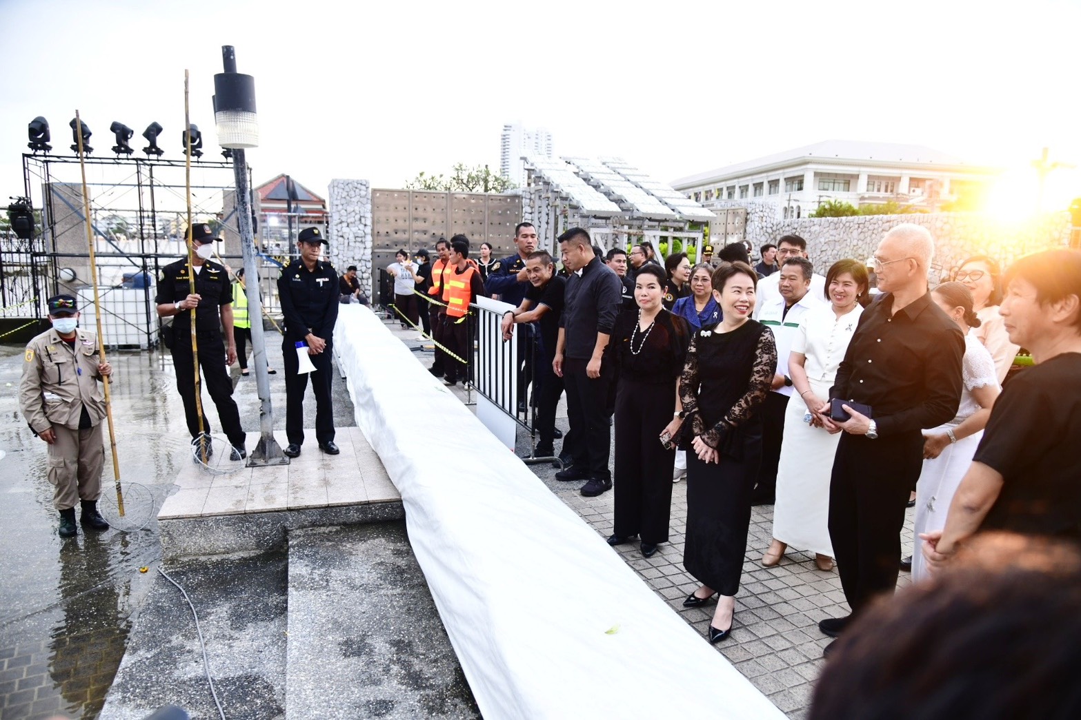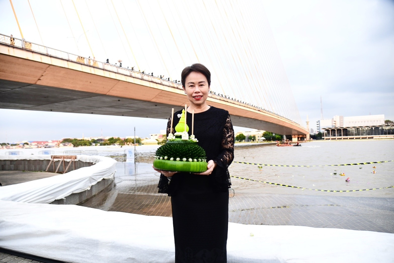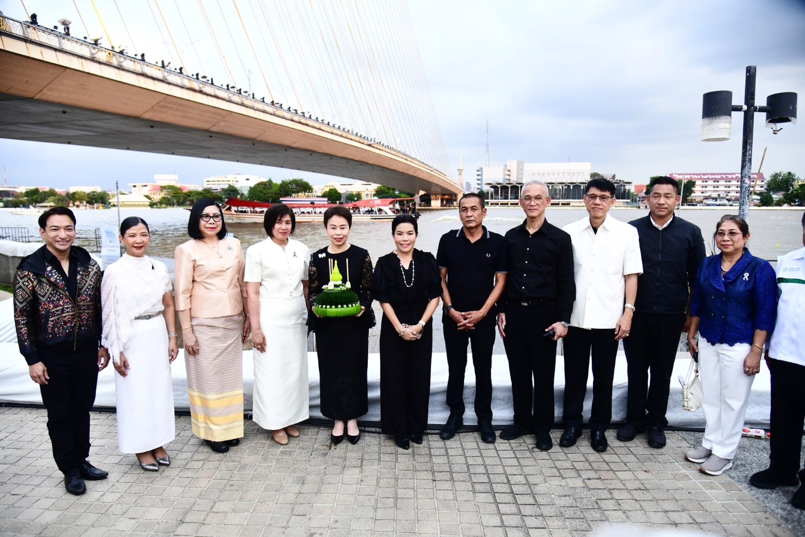 นางสาวกนกวรรณ เอี่ยมลิ้ม นางเลิศลักษณ์ ลีลาเรืองแสง รองปลัดกรุงเทพมหานคร ผู้บริหารกรุงเทพมหานคร ผู้บริหารสำนักวัฒนธรรม กีฬาและการท่องเที่ยว ผู้บริหารเขตบางพลัด และผู้ที่เกี่ยวข้อง ร่วมพิธี ณ บริเวณสะพานพระราม 8 ฝั่งธนบุรี เขตบางพลัด
