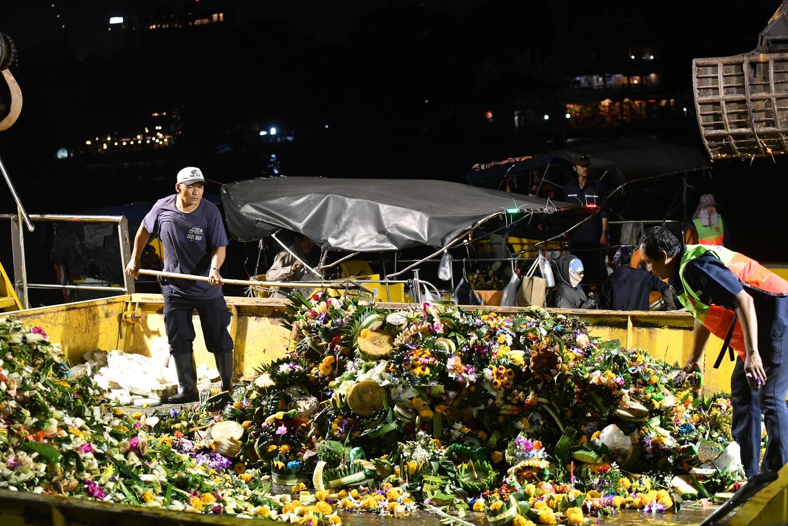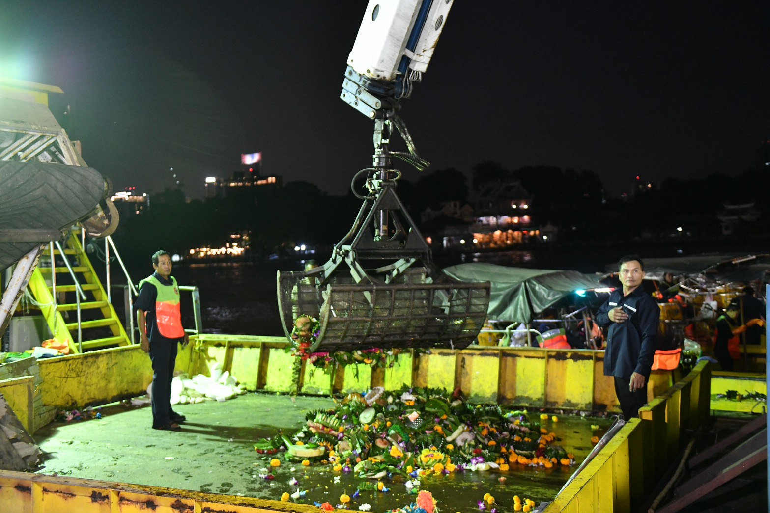ด้านรองปลัดฯ เลิศลักษณ์ กล่าวว่า ในส่วนเจ้าหน้าที่ของกรุงเทพมหานคร ทุกสำนักงานเขตได้มีการเตรียมการเพื่อดูแลความปลอดภัยของประชาชนในพื้นที่ ขณะเดียวกันริมแม่น้ำเจ้าพระยา บริเวณใต้สะพานพระปกเกล้า มีอีกหนึ่งทีมสำคัญ คือเจ้าหน้าที่จากสำนักสิ่งแวดล้อม ปฏิบัติงานในการจัดเก็บกระทงที่อยู่ในแม่น้ำเจ้าพระยา จำนวน 163 คน โดยเก็บกระทงตั้งแต่สะพานพระราม 8 ถึงสะพานพระราม 9 ระยะทางรวม 15 กิโลเมตร นอกจากมีเจ้าหน้าที่ในการจัดเก็บแล้ว เรามีเรือเก็บกระทงจำนวน 28 ลำ และรถในการขนย้ายกระทงอีกจำนวน 8 คัน