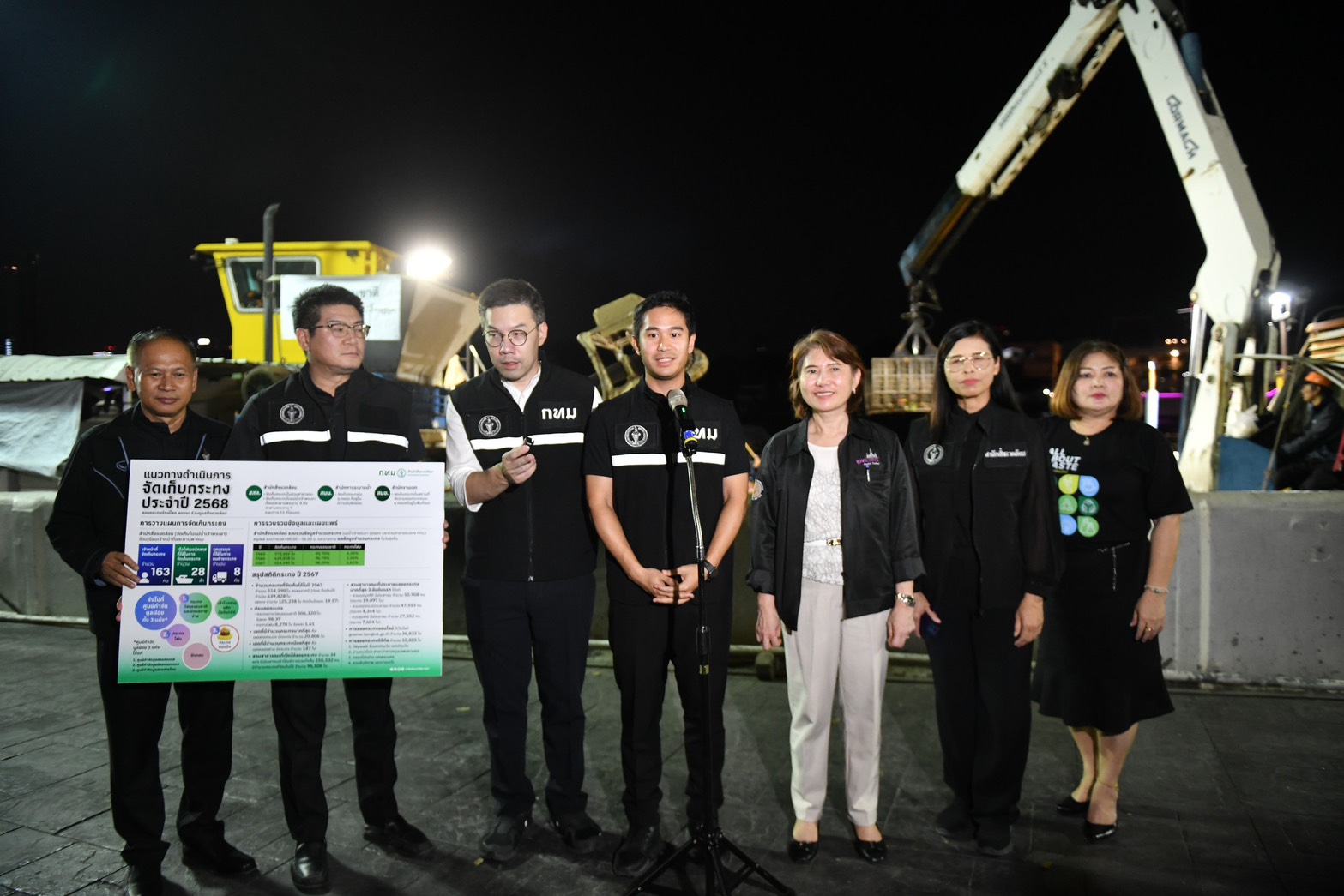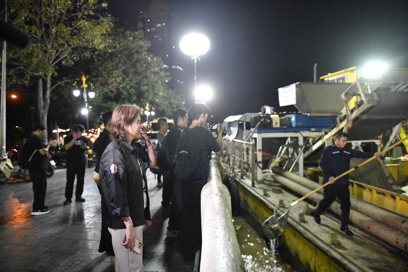 (5 พ.ย. 68) เวลา 20.30 น. พญ.เลิศลักษณ์ ลีลาเรืองแสง รองปลัดกรุงเทพมหานคร พร้อมด้วย นายพรพรหม วิกิตเศรษฐ์ ที่ปรึกษาของผู้ว่าราชการกรุงเทพมหานคร และผู้บริหารด้านความยั่งยืนของกรุงเทพมหานคร นายเอกวรัญญู อัมระปาล โฆษกของกรุงเทพมหานคร และนางสาววรนุช สวยค้าข้าว รองผู้อำนวยการสำนักสิ่งแวดล้อม ตรวจเยี่ยมการปฏิบัติงาน และให้กำลังใจเจ้าหน้าที่ผู้ปฏิบัติงานจัดเก็บกระทงในแม่น้ำเจ้าพระยา ในเทศกาลลอยกระทงประจำปี 2568 ณ บริเวณปากคลองโอ่งอ่าง ฝั่งพระนคร (ใต้สะพานพระปกเกล้า) ก่อนสำนักสิ่งแวดล้อมจะนำไปกำจัดอย่างถูกวิธี
