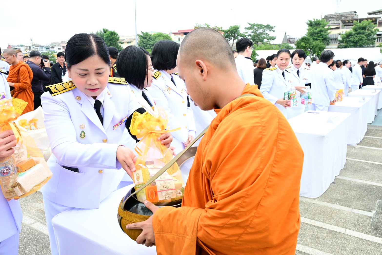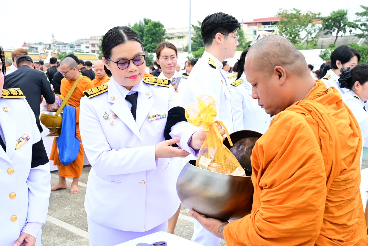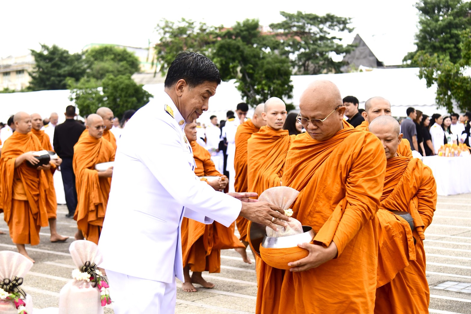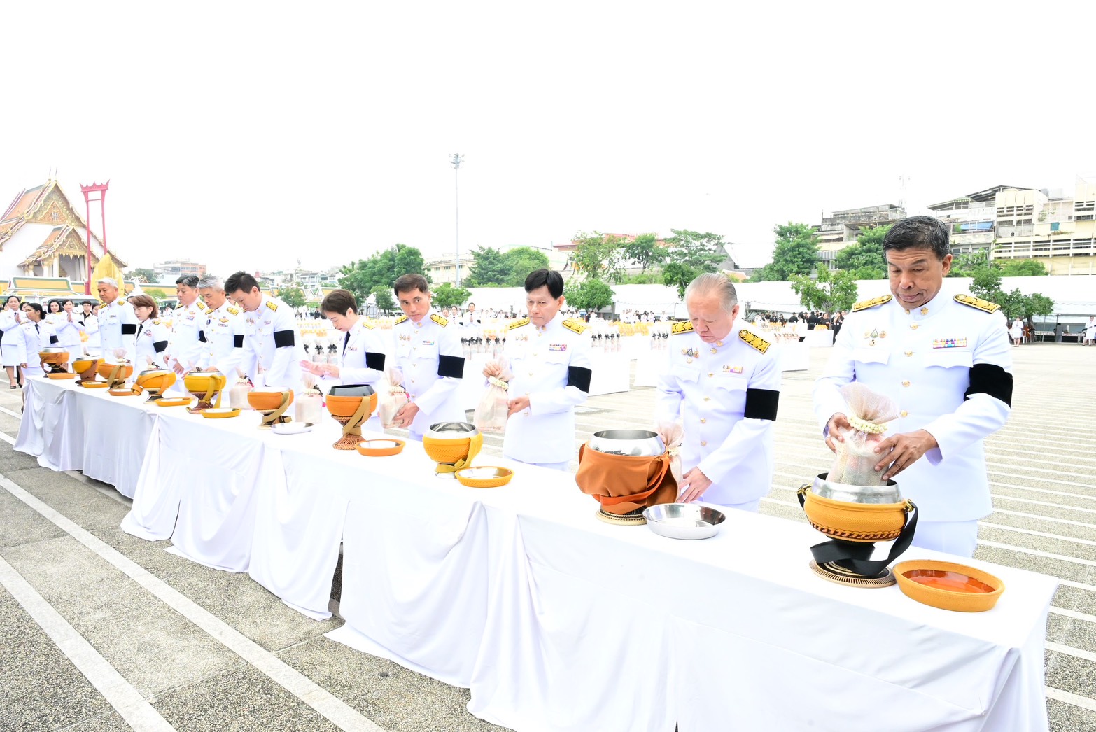 ภายหลังเสร็จสิ้นพิธีสงฆ์ นายชัชชาติ สิทธิพันธุ์ ผู้ว่าราชการกรุงเทพมหานคร พร้อมคณะผู้บริหาร ข้าราชการ และบุคลากรกรุงเทพมหานคร และผู้ร่วมพิธี ร่วมตักบาตรพระสงฆ์ จำนวน 93 รูป เพื่อถวายเป็นพระราชกุศลโดยพร้อมเพรียงกัน บรรยากาศเป็นไปด้วยความสงบ สำนึกในพระมหากรุณาธิคุณ และความจงรักภักดีอย่างล้นพ้น
