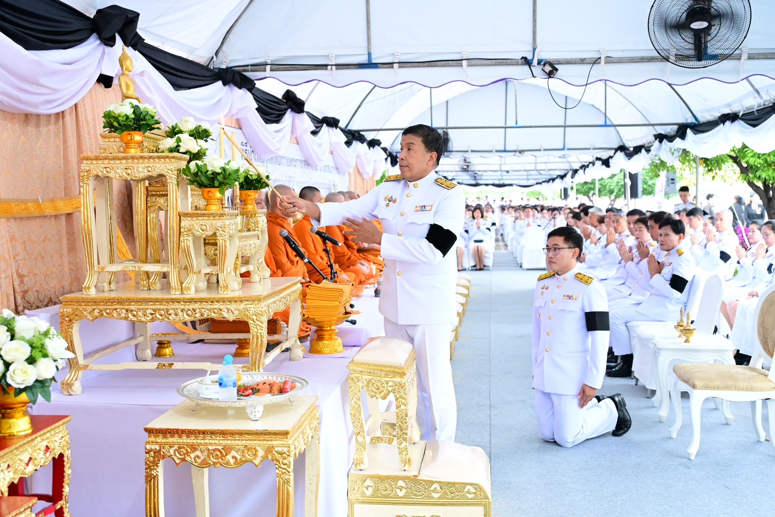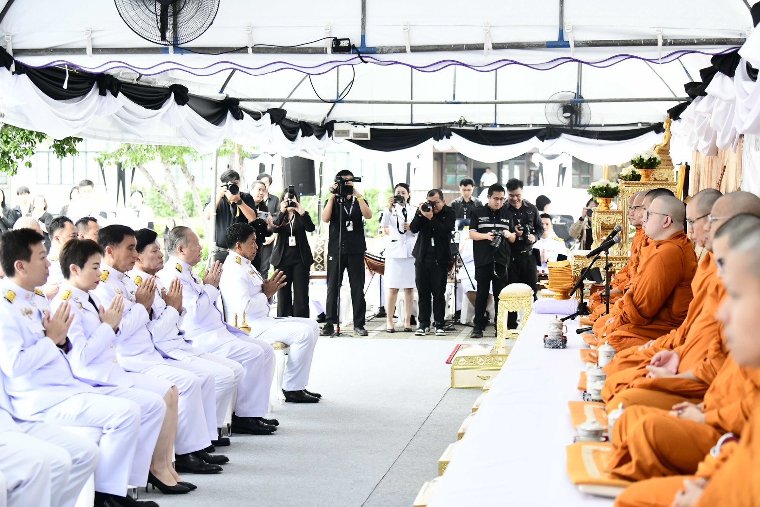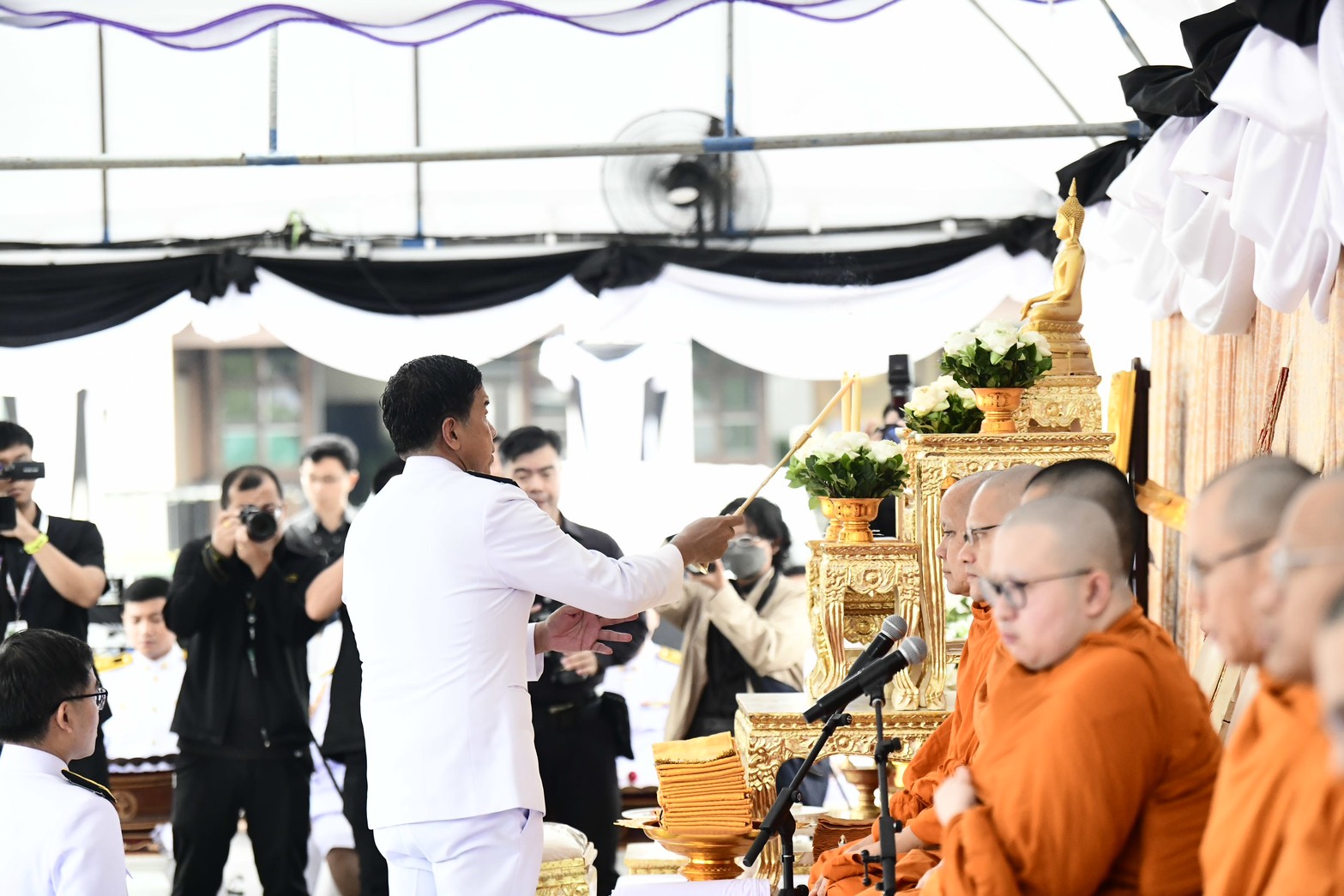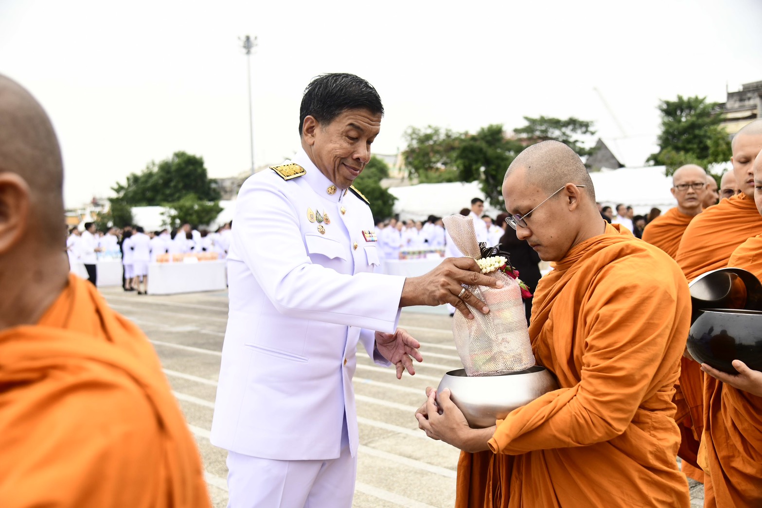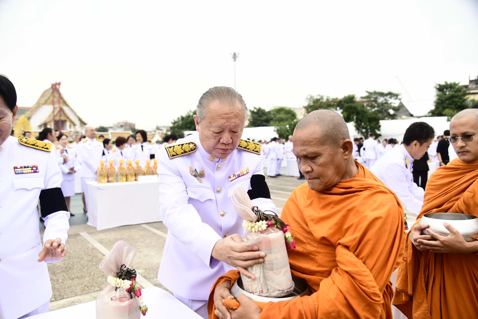 ภายหลังเสร็จสิ้นพิธีสงฆ์ นายชัชชาติ สิทธิพันธุ์ ผู้ว่าราชการกรุงเทพมหานคร พร้อมคณะผู้บริหาร ข้าราชการ และบุคลากรกรุงเทพมหานคร และผู้ร่วมพิธี ร่วมตักบาตรพระสงฆ์ จำนวน 93 รูป เพื่อถวายเป็นพระราชกุศลโดยพร้อมเพรียงกัน บรรยากาศเป็นไปด้วยความสงบ สำนึกในพระมหากรุณาธิคุณ และความจงรักภักดีอย่างล้นพ้น