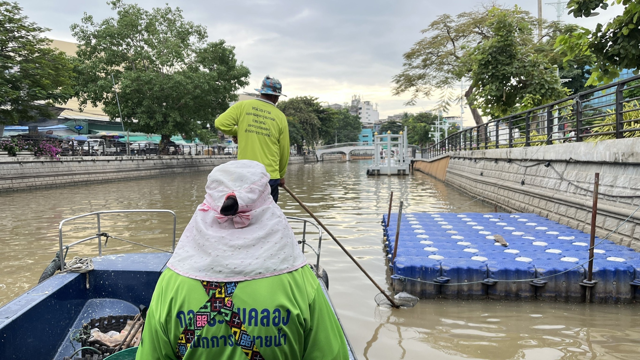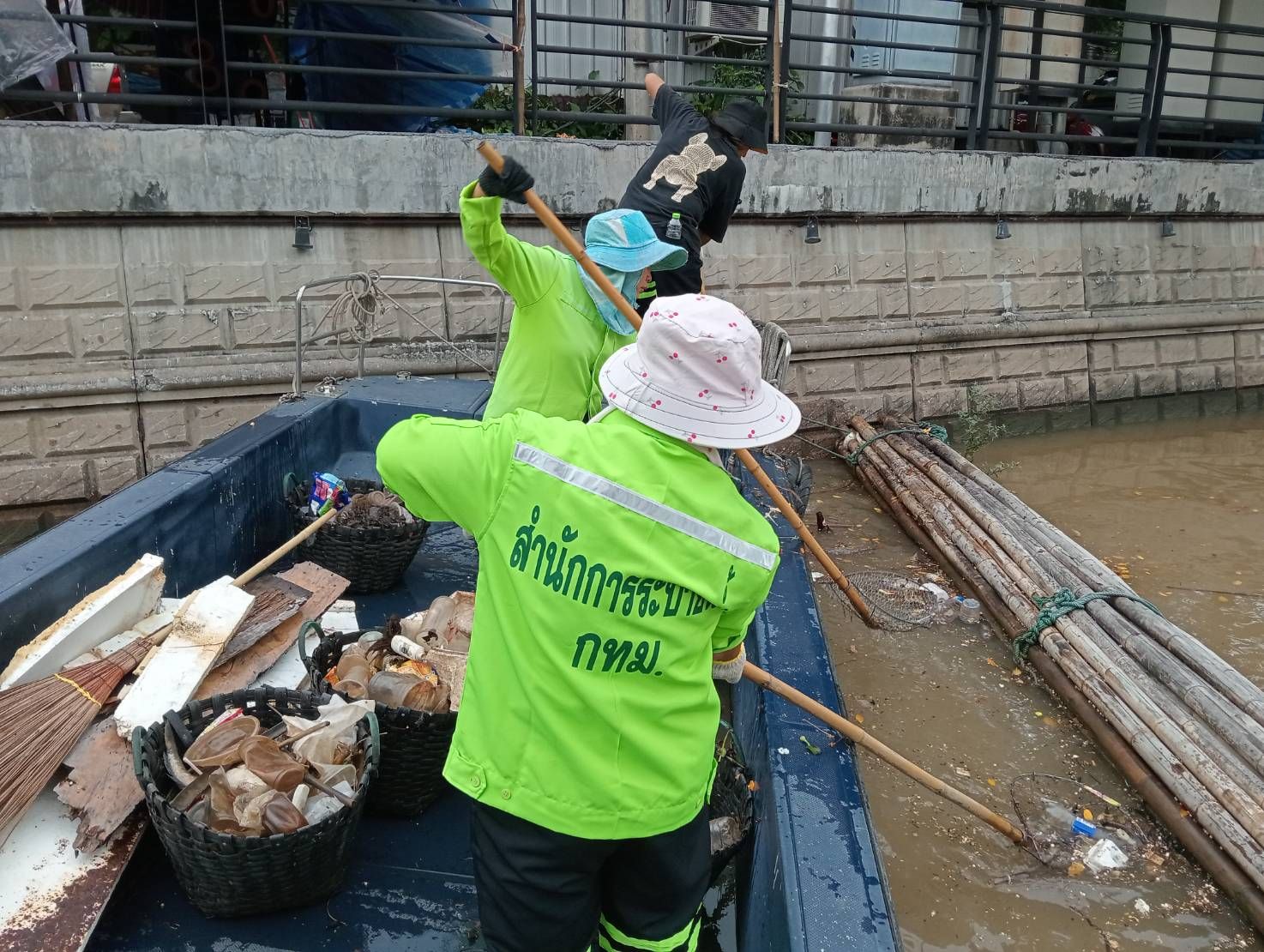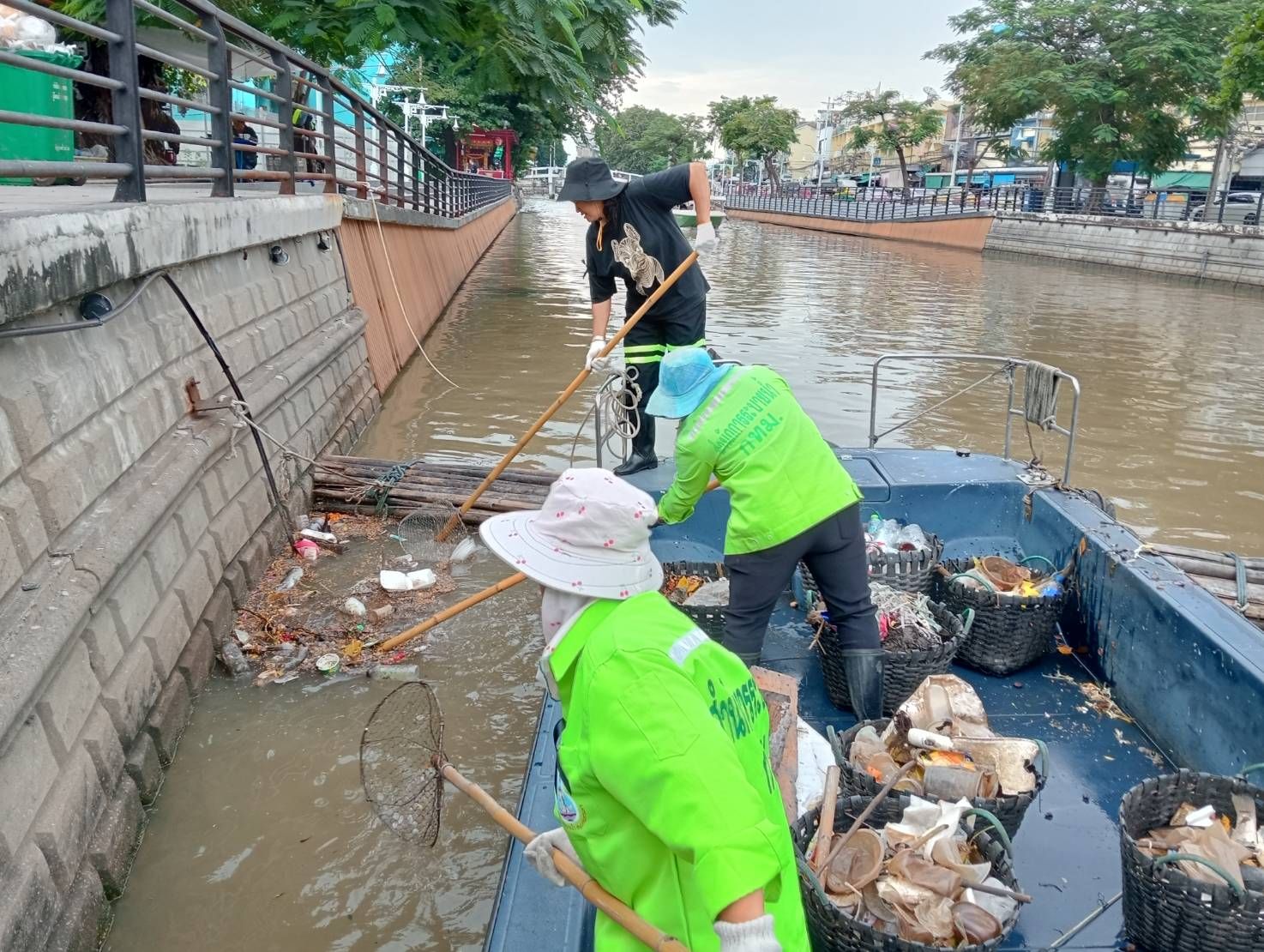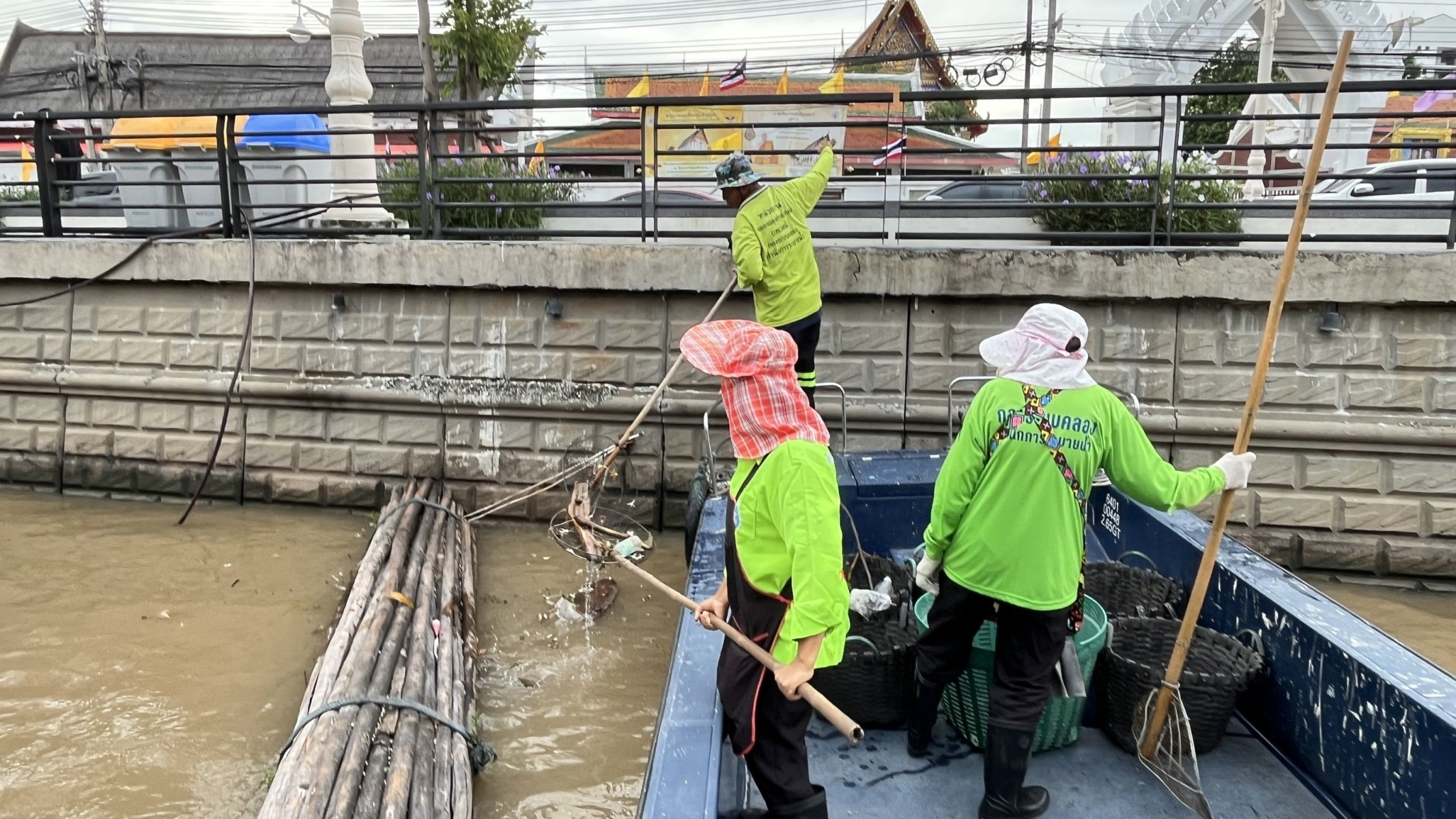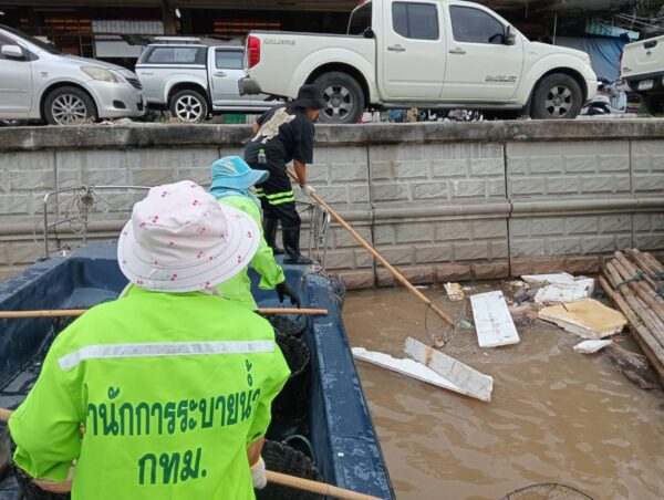 เจ้าหน้าที่ เก็บขยะและวัชพืชเก็บจาก ปตร. เทเวศร์ตลอดช่วงสะพานมัฆวานถึงสี่แยกมหานาค เขตพระนคร เขตป้อมปราบศัตรูพ่าย