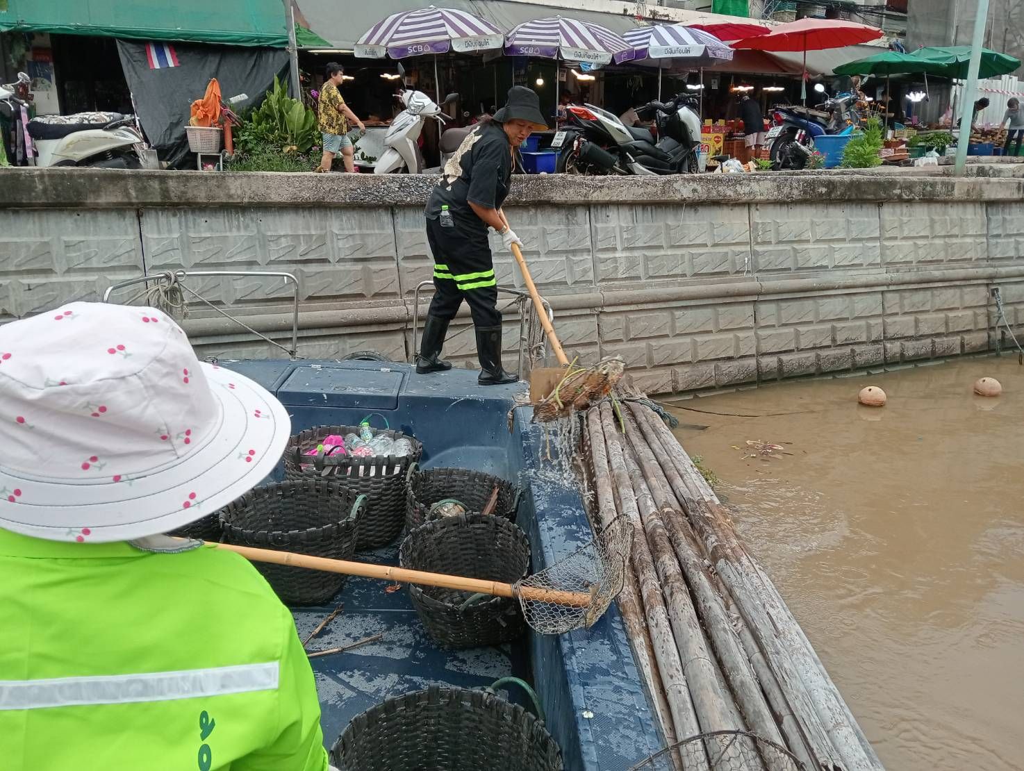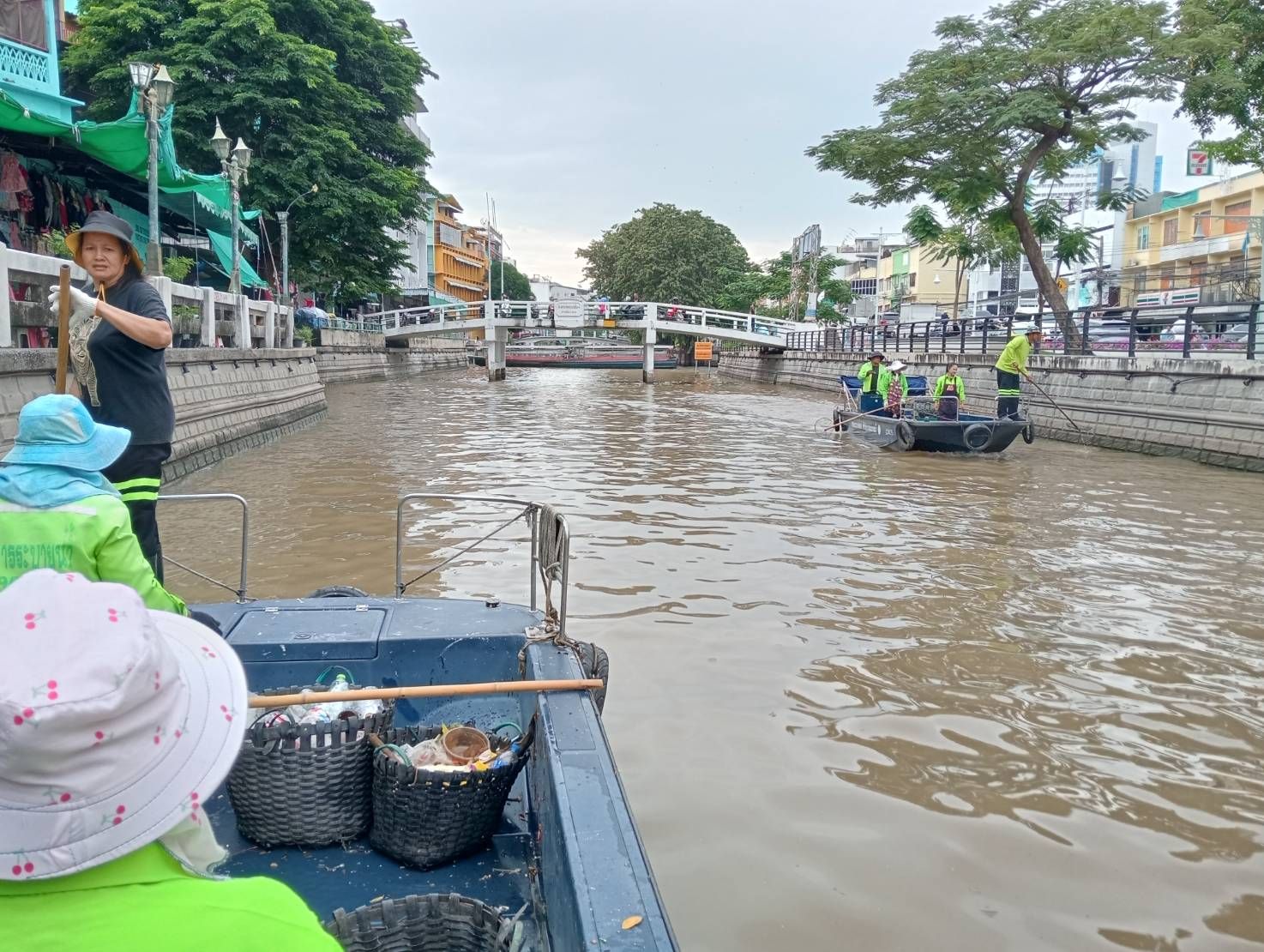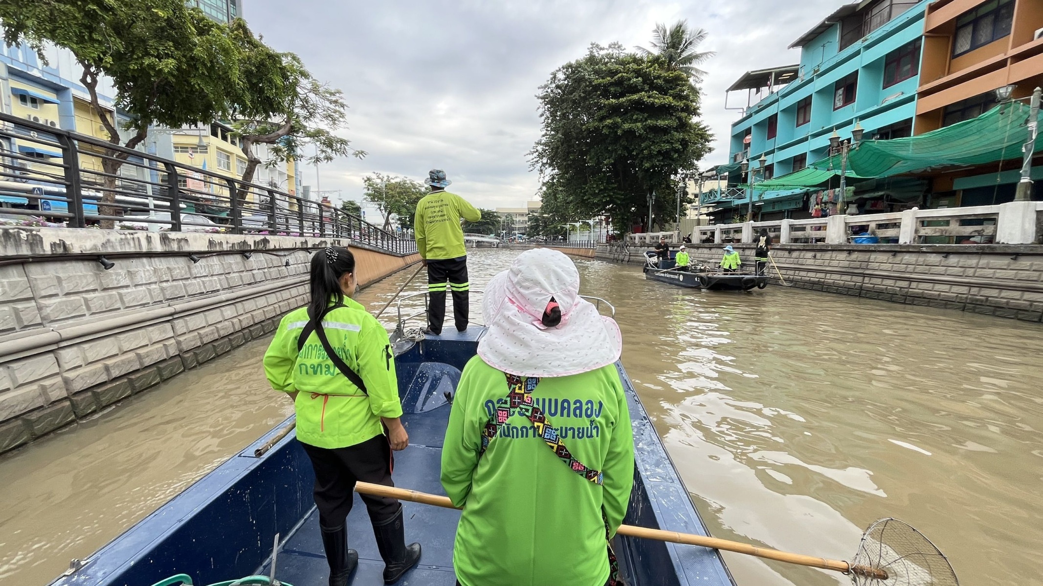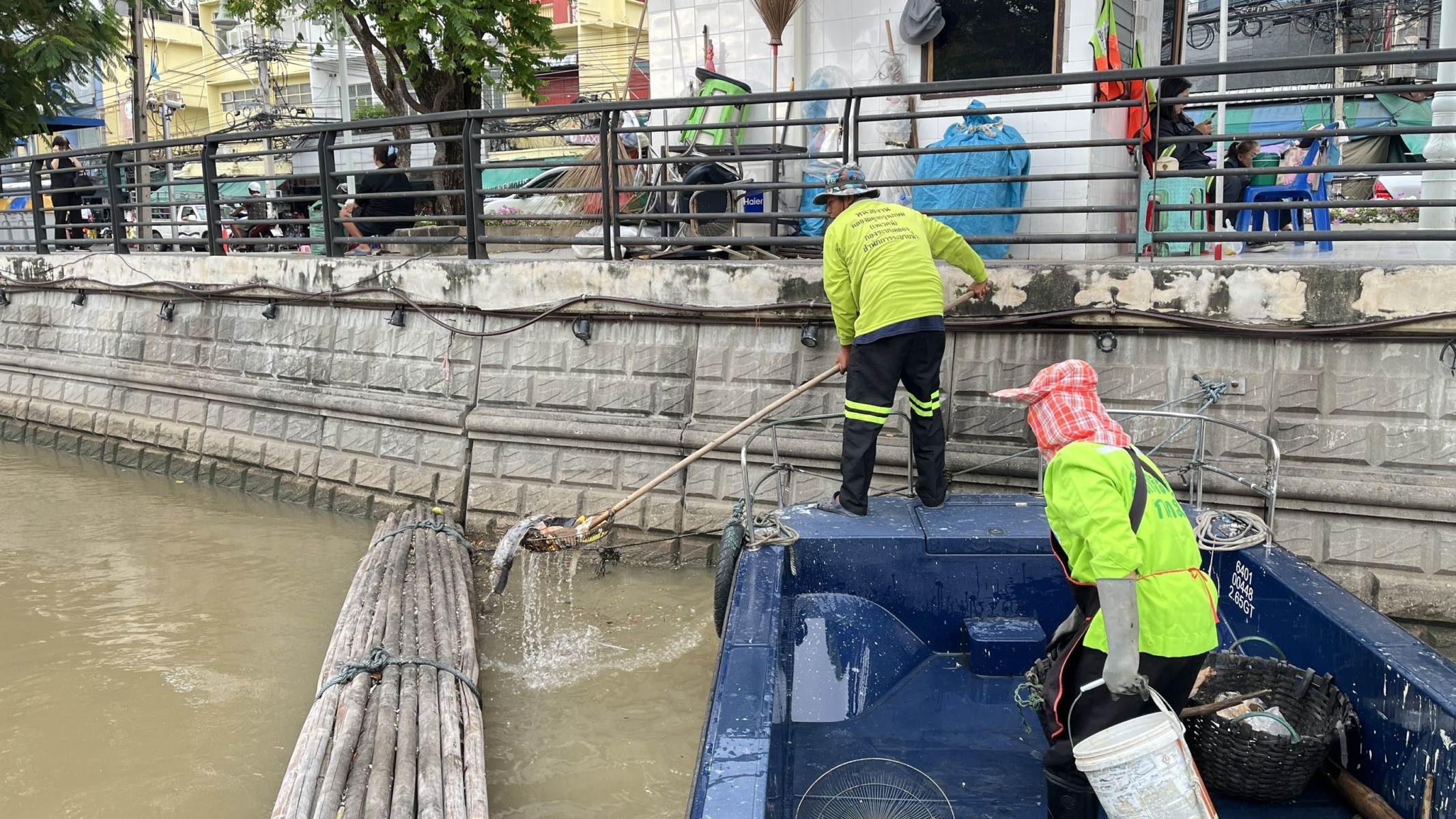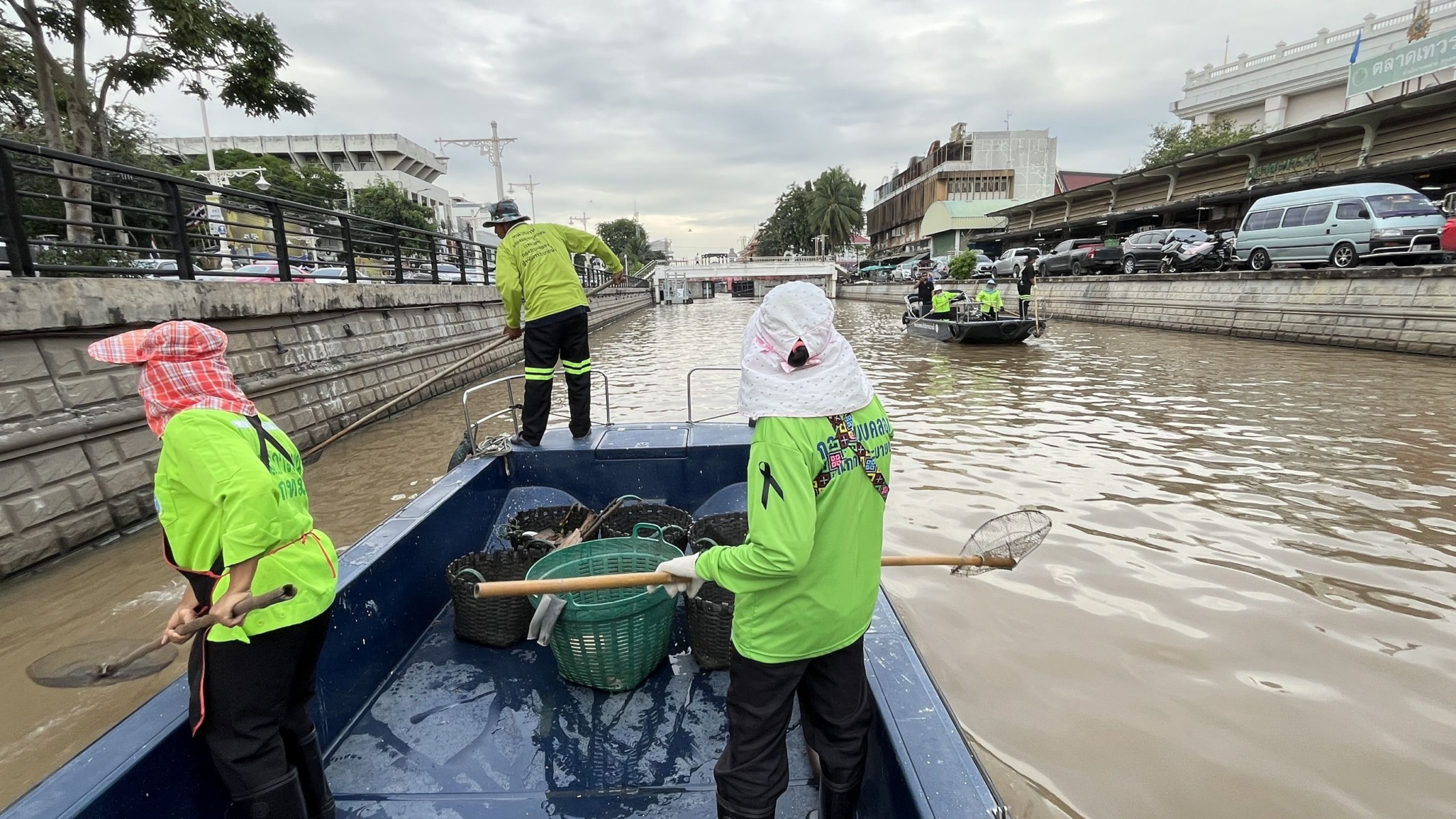 เจ้าหน้าที่ เก็บขยะและวัชพืชเก็บจาก ปตร. เทเวศร์ตลอดช่วงสะพานมัฆวานถึงสี่แยกมหานาค เขตพระนคร เขตป้อมปราบศัตรูพ่าย