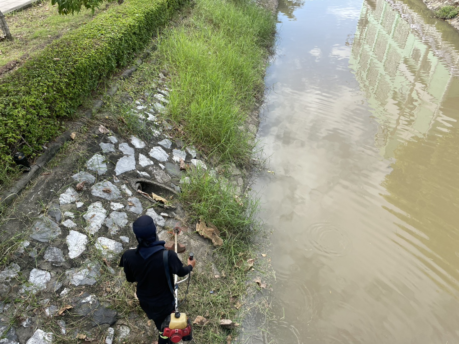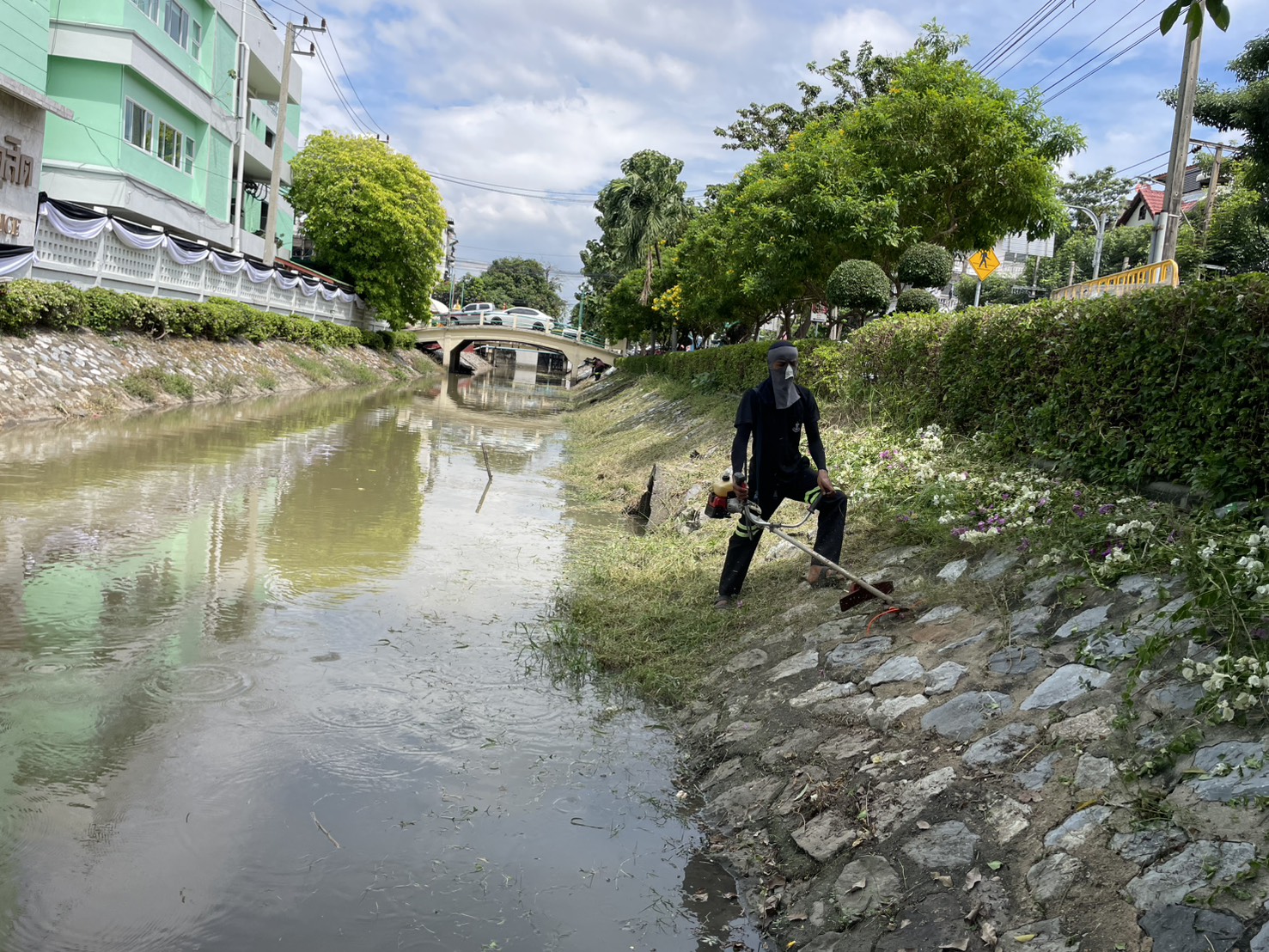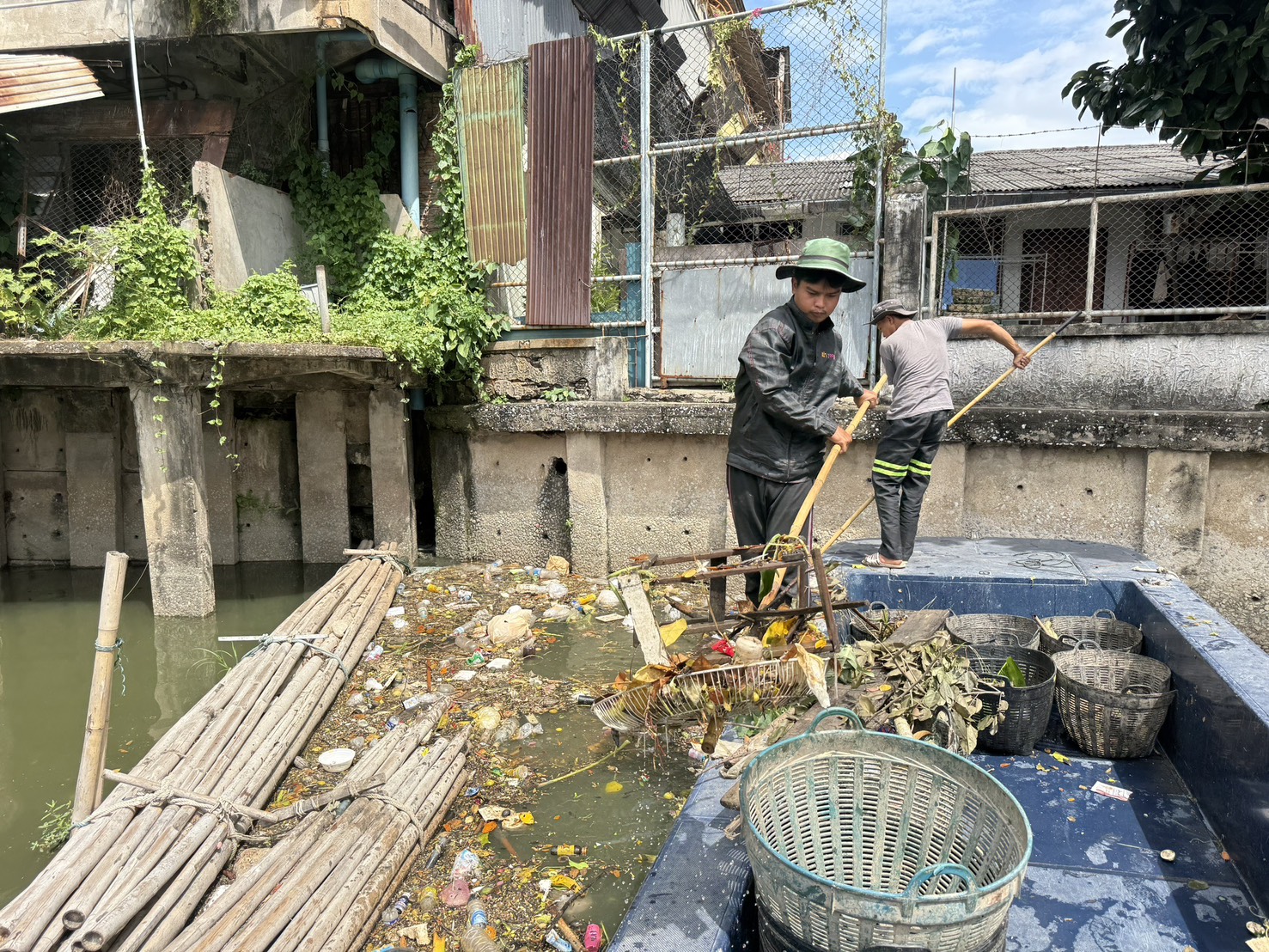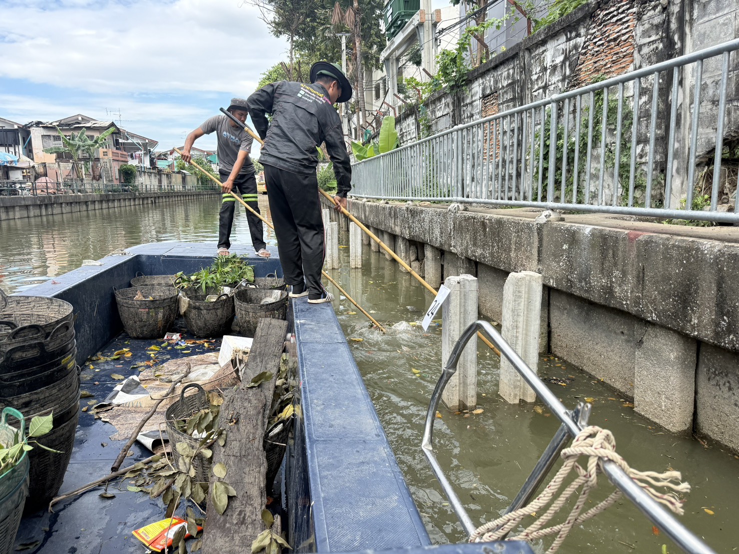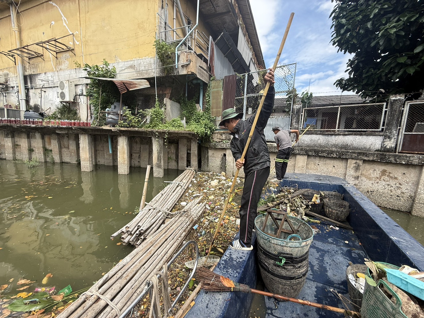 เจ้าหน้าที่ ตักขยะกำจัดวัชพืชคลองสามเสน-คลองเปรมประชากร เขตดุสิต
