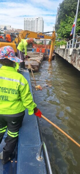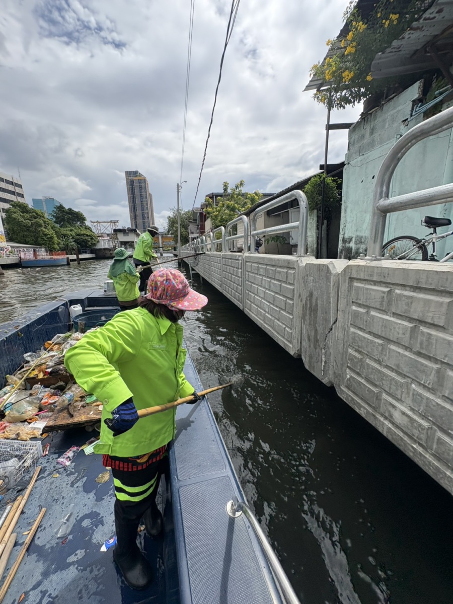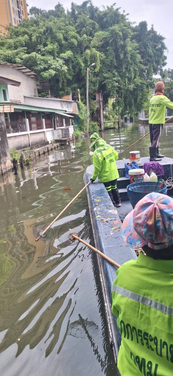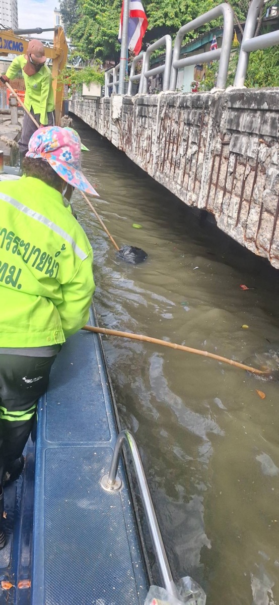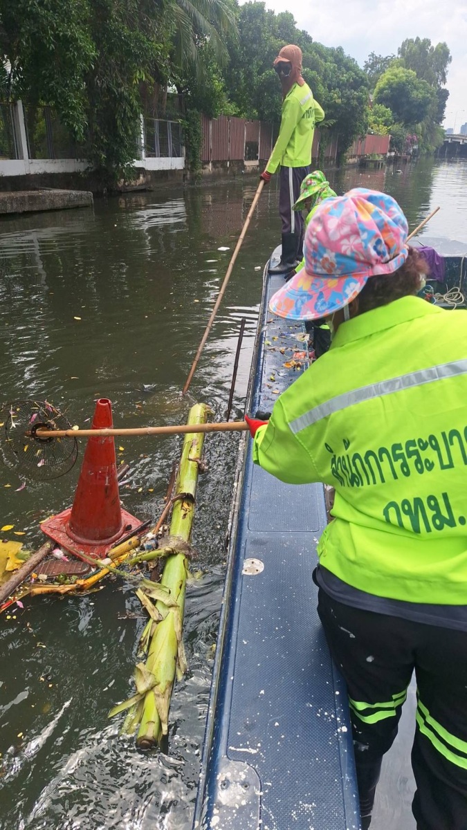 เจ้าหน้าที่ ตักขยะวัชพืช คลองแสนแสบ-คลองตัน ช่วงท่าเรือวิทยุถึงคลองพระโขนง พื้นที่เขตวัฒนา