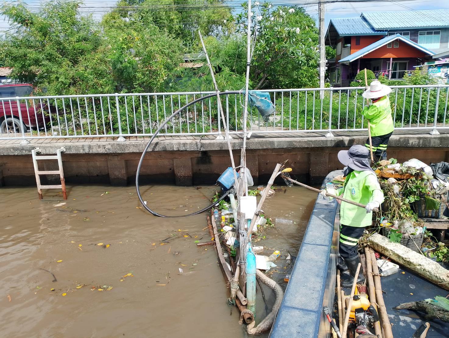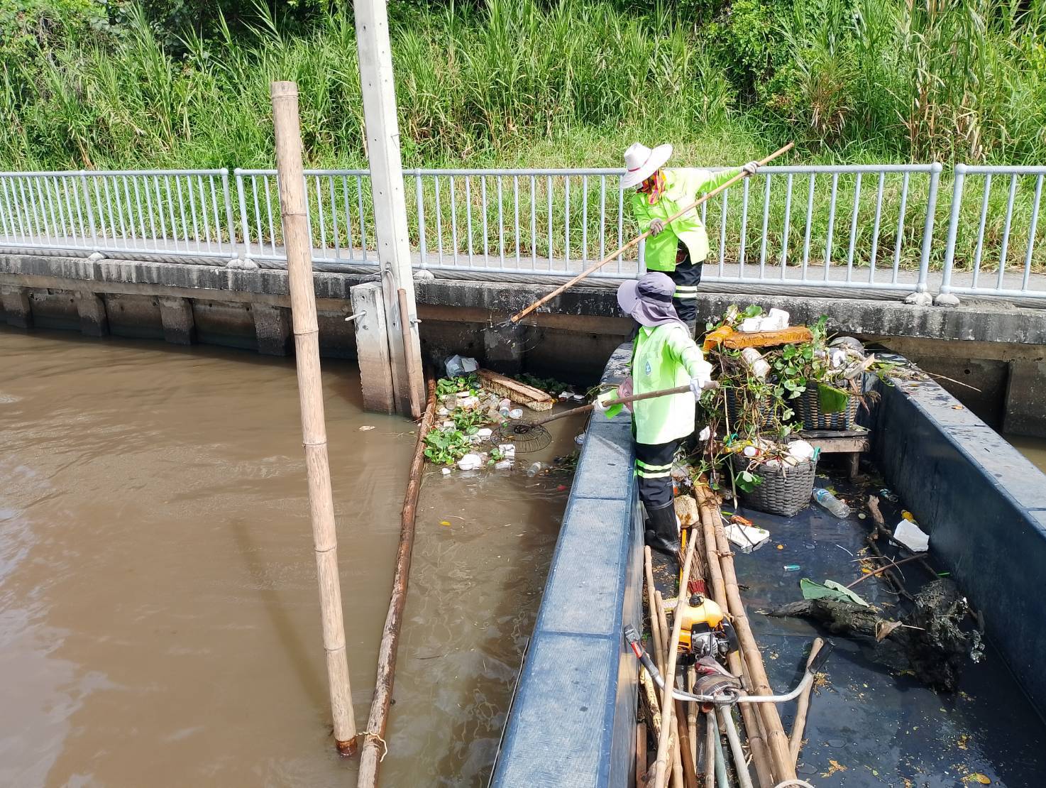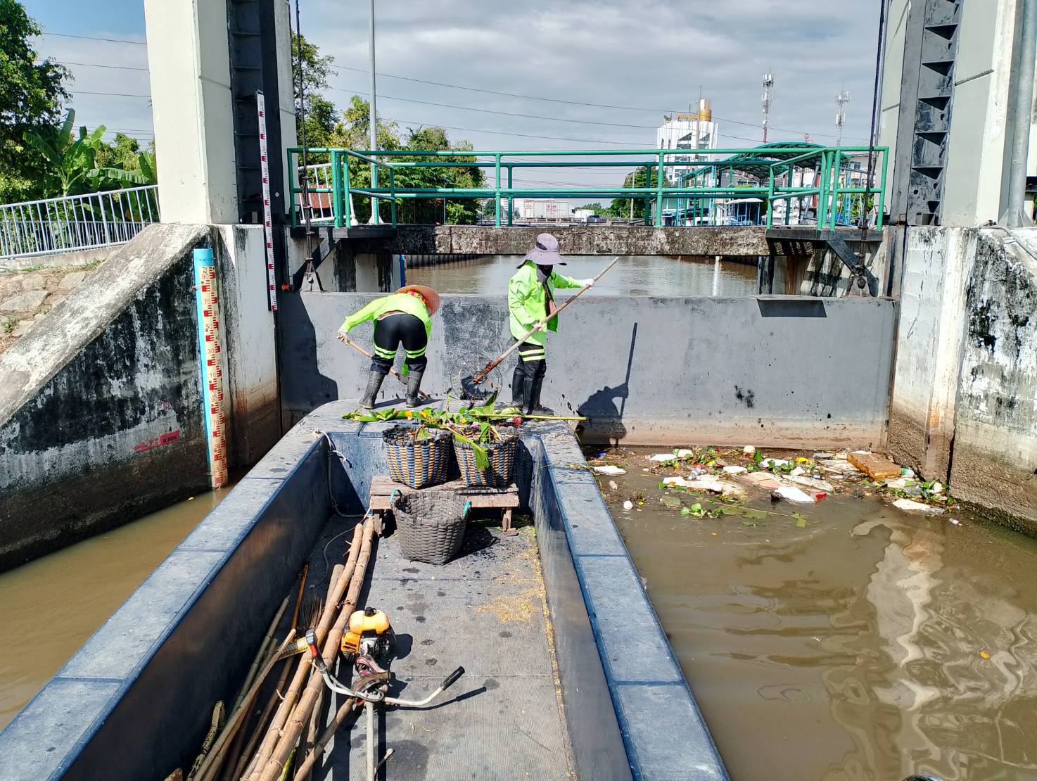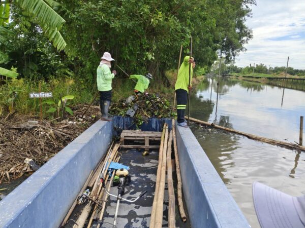 สำนักการระบายน้ำ จัดเก็บขยะและวัชพืชคลองลำบึงขวาง-คลองสามประเวศ-คลองสี่ประเวศ เขตมีนบุรี