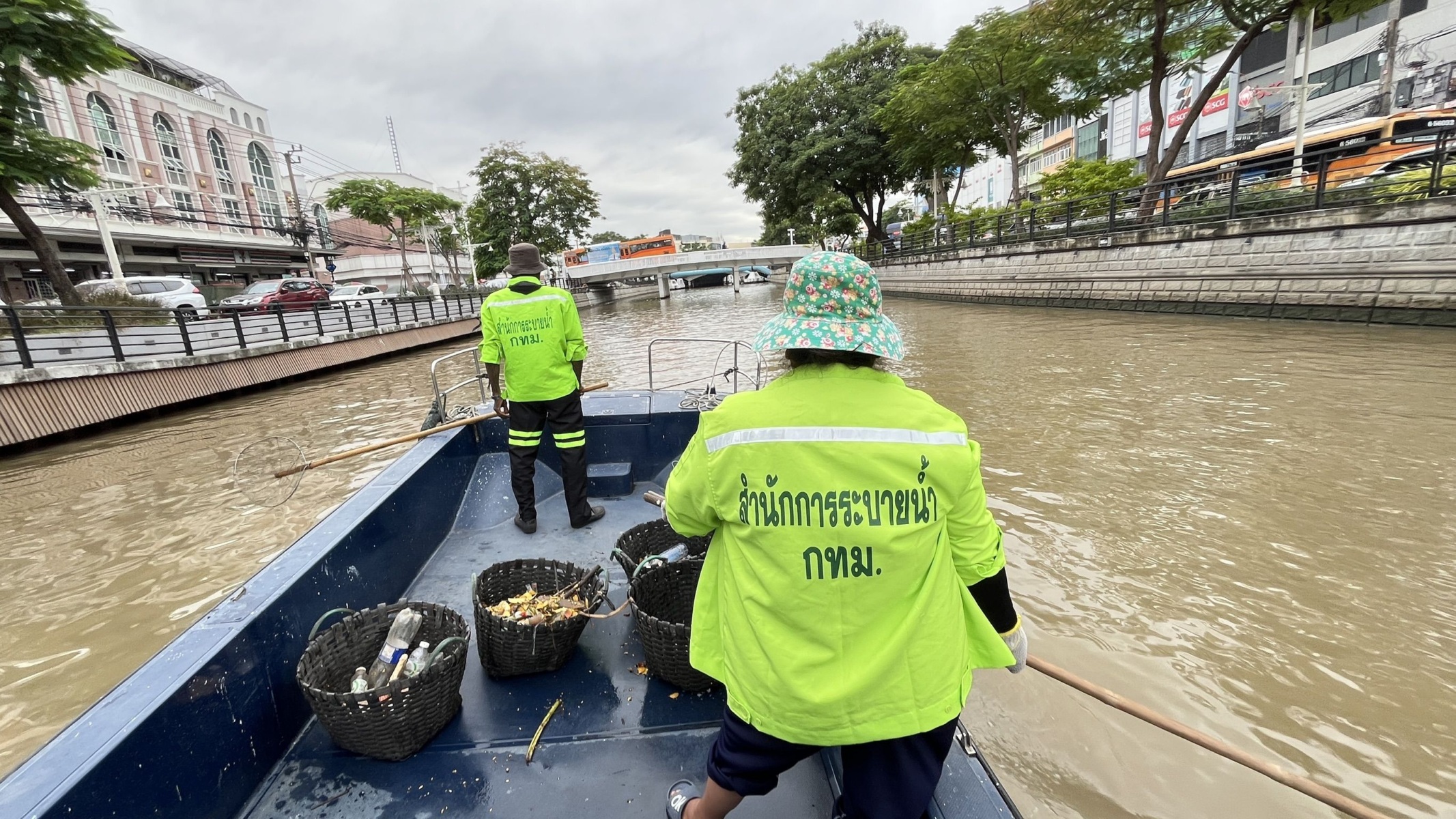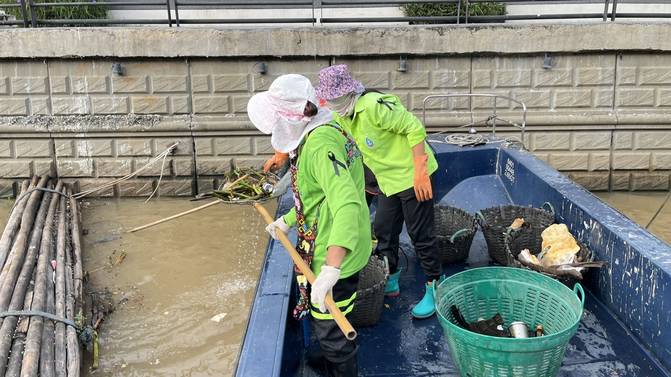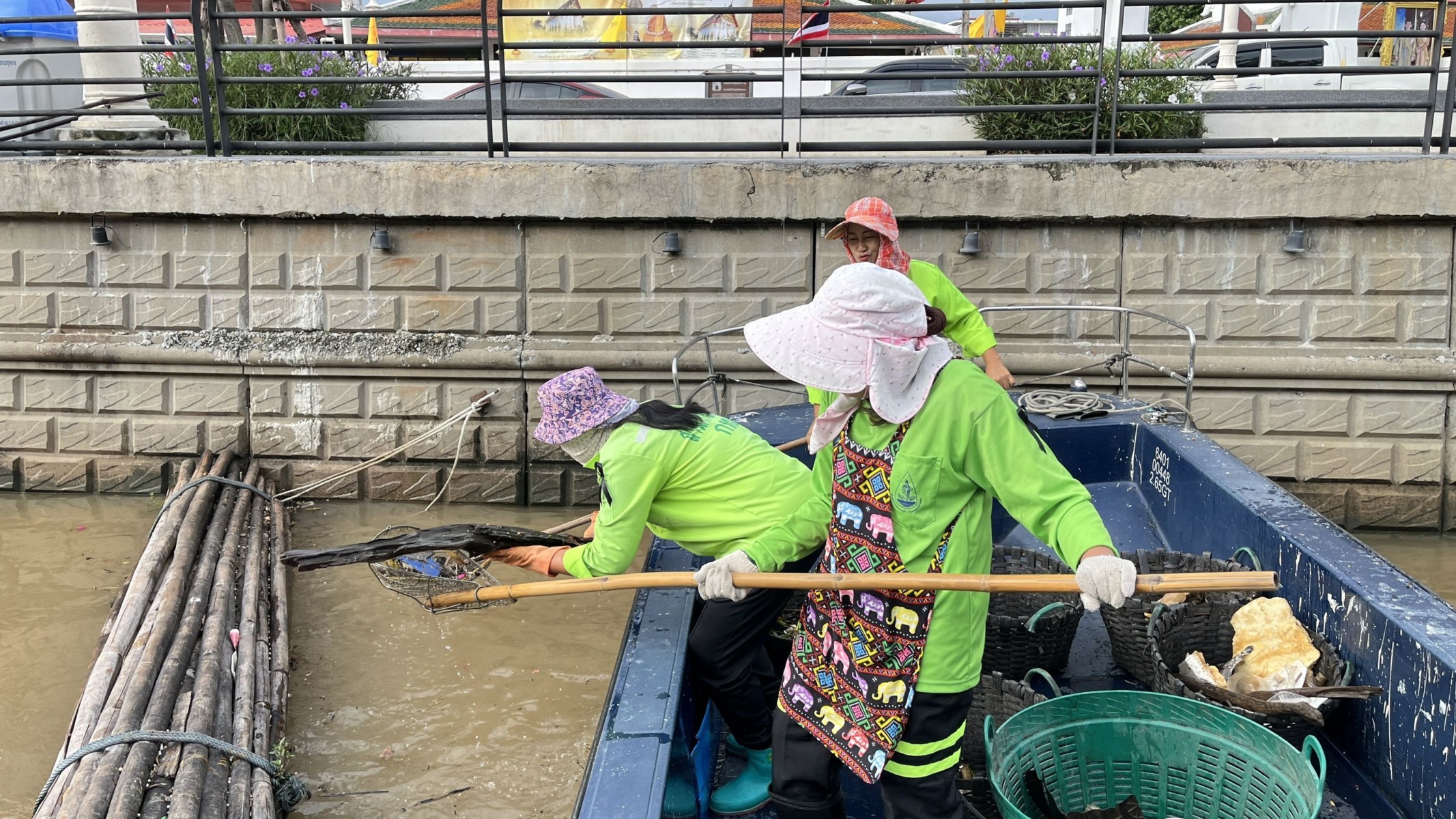 เจ้าหน้าที่ ตักเก็บขยะและวัชพืชเ ปตร.เทเวศร์ตลอดช่วงสะพานมัฆวานถึงสี่แยกมหานาค เขตดุสิต เขตพระนคร เขตป้อมปราบศัตรูพ่าย