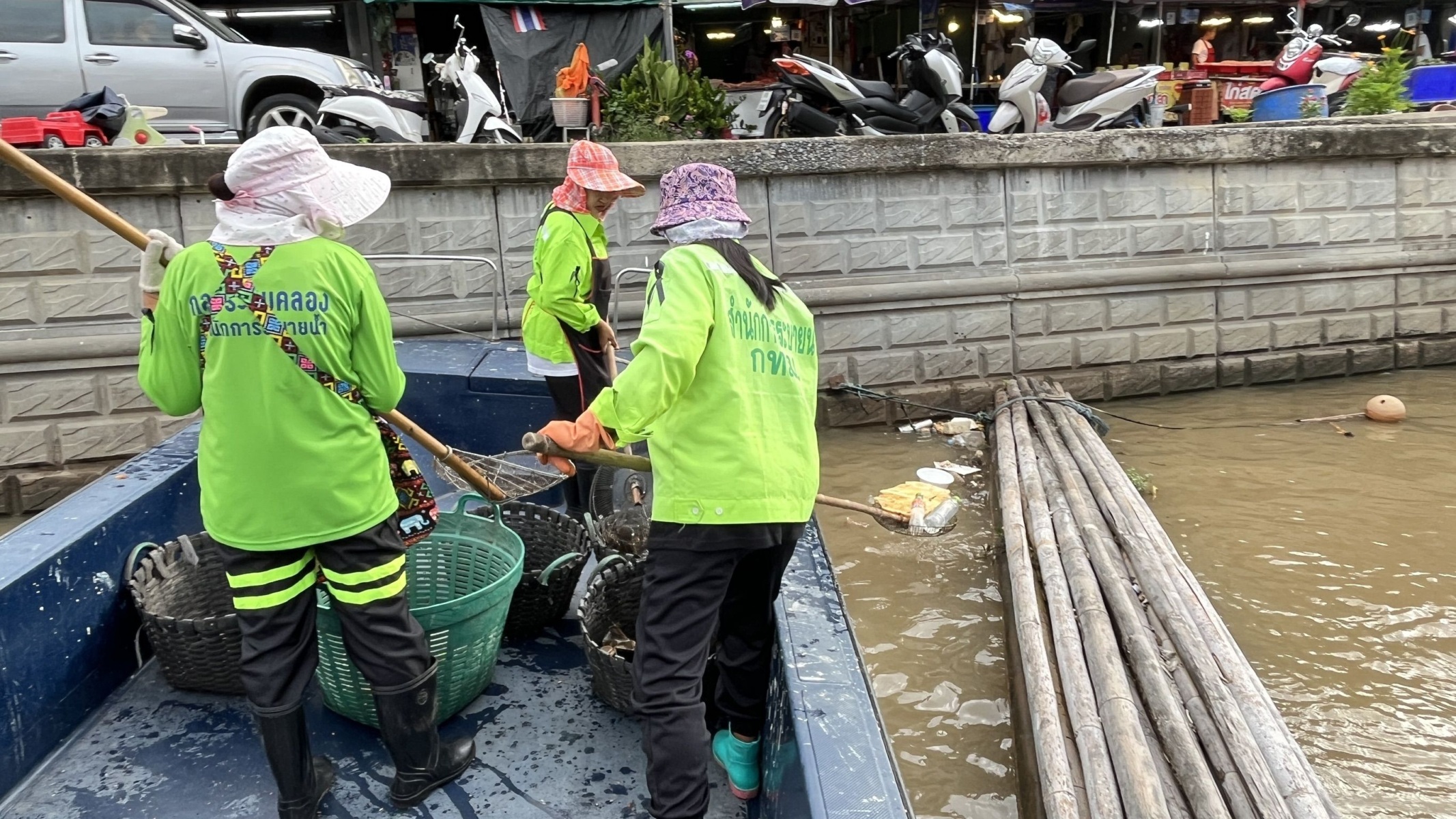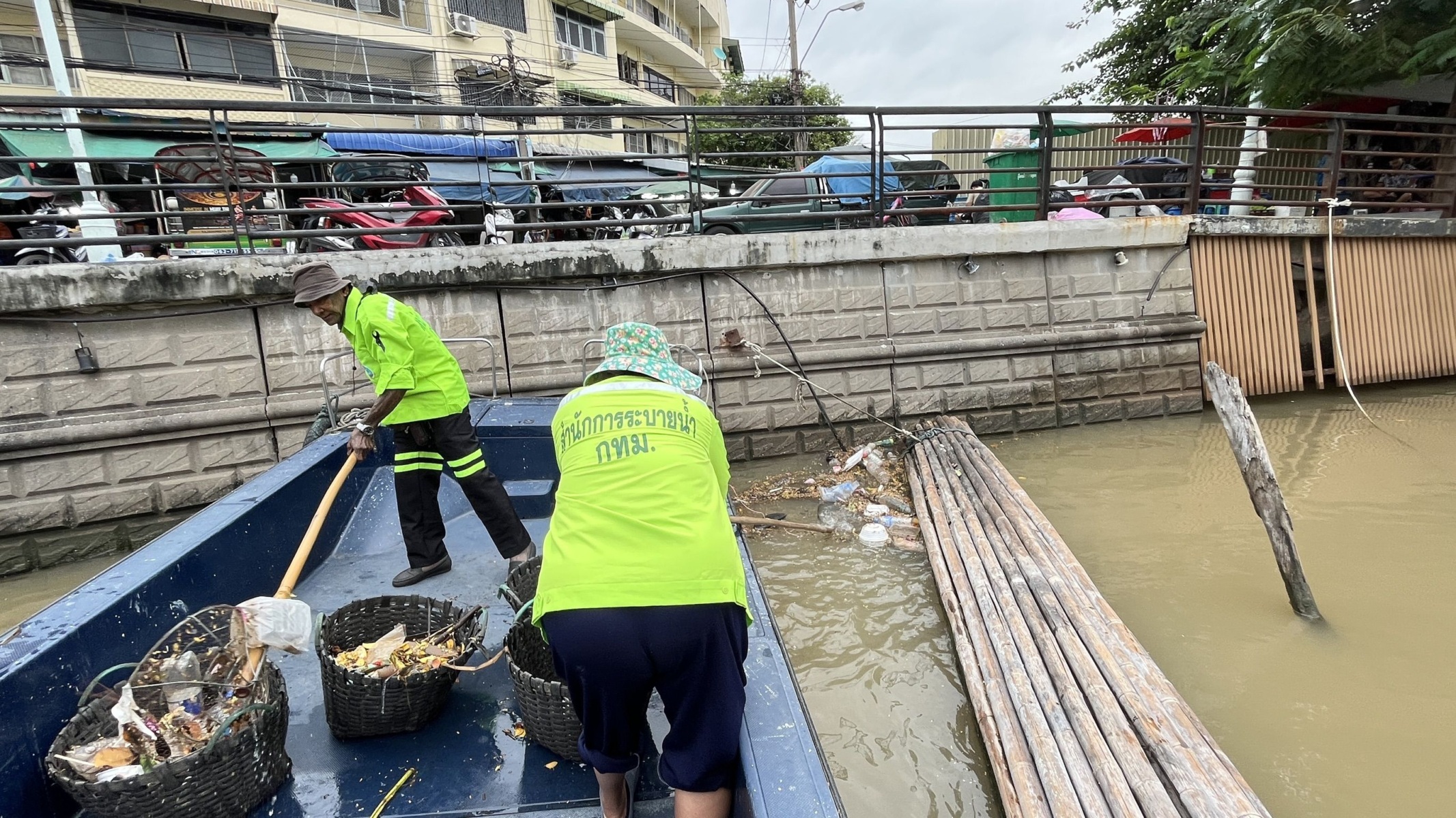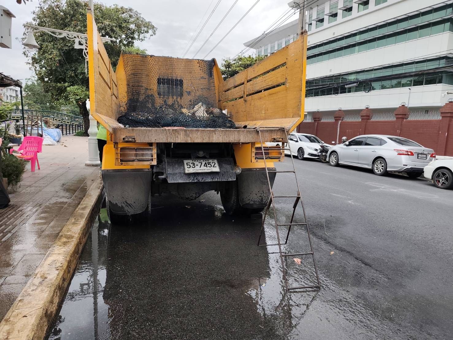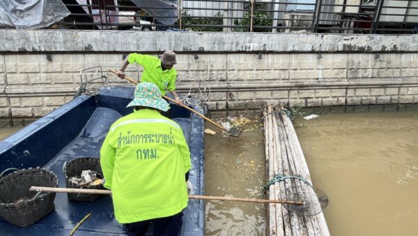 เจ้าหน้าที่ ตักเก็บขยะและวัชพืชเ ปตร.เทเวศร์ตลอดช่วงสะพานมัฆวานถึงสี่แยกมหานาค เขตดุสิต เขตพระนคร เขตป้อมปราบศัตรูพ่าย