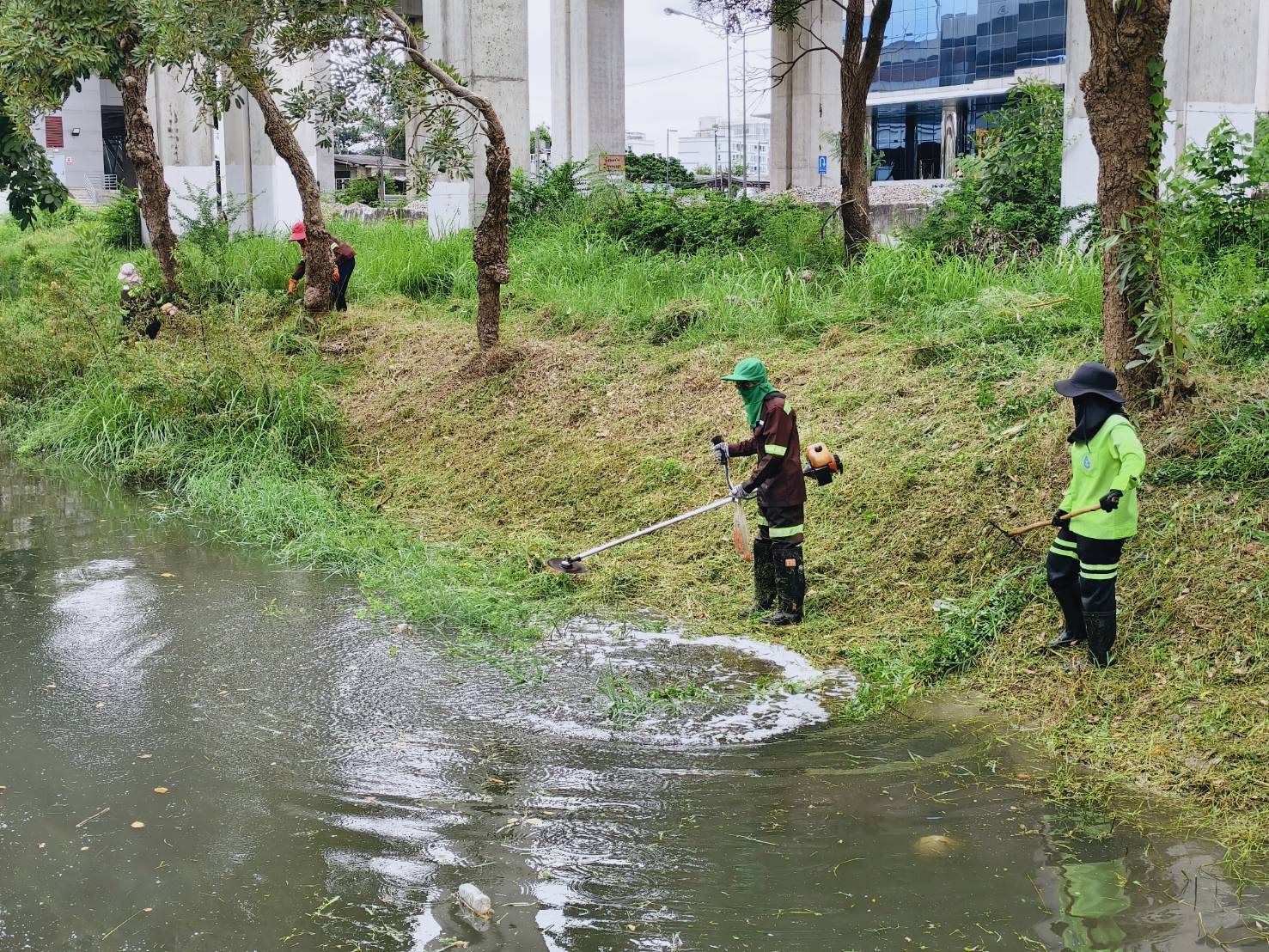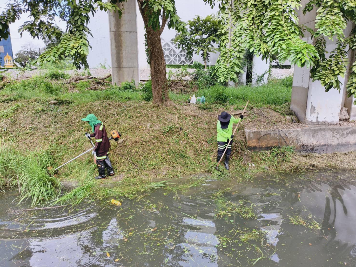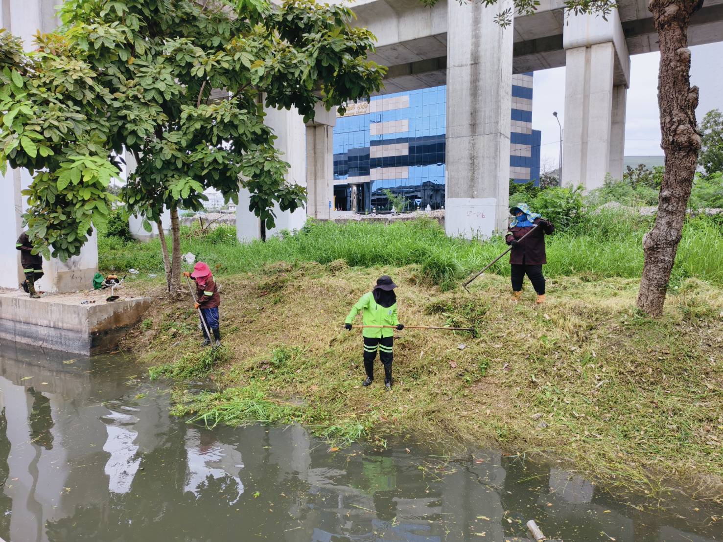 เจ้าหน้าที่ ตัดหญ้าและเก็บขยะ ช่วงสถานีรถไฟฟ้าบางเขน