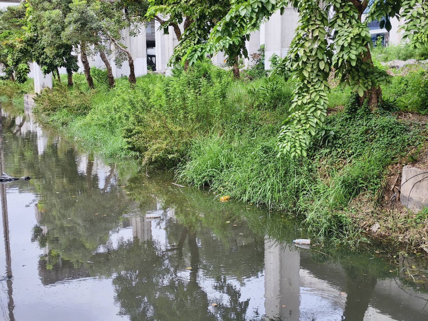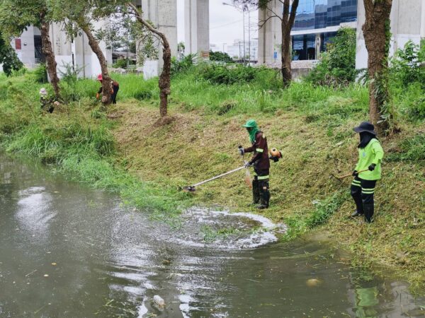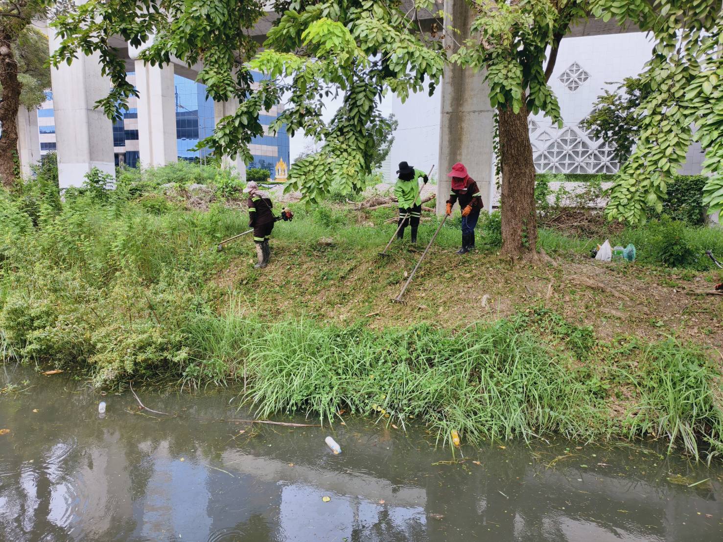 เจ้าหน้าที่ ตัดหญ้าและเก็บขยะ ช่วงสถานีรถไฟฟ้าบางเขน