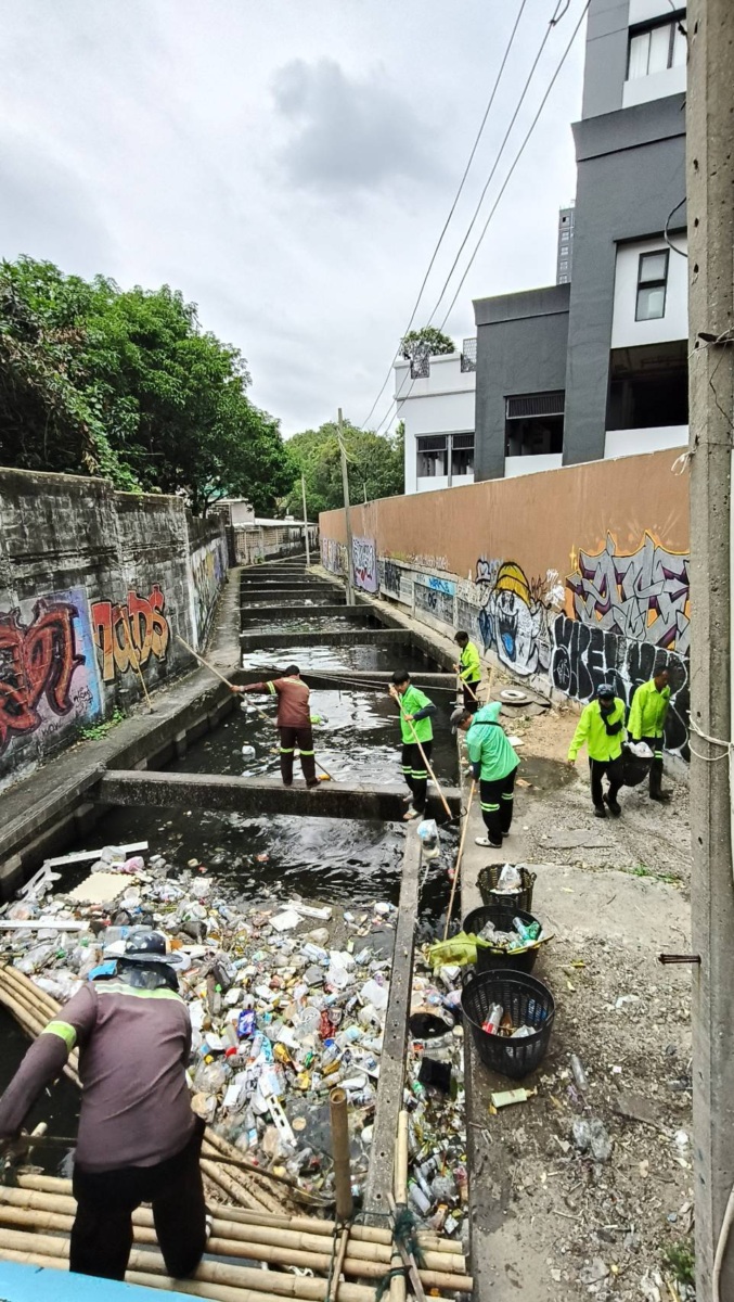 เจ้าหน้าที่ จัดเก็บขยะกำจัดวัชพืชคลองบางมะเขือช่วงสถานีสูบน้ำบางมะเขือ พื้นที่เขตวัฒนา