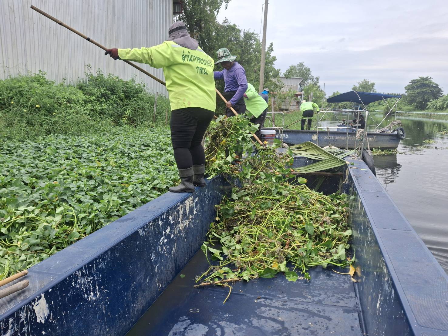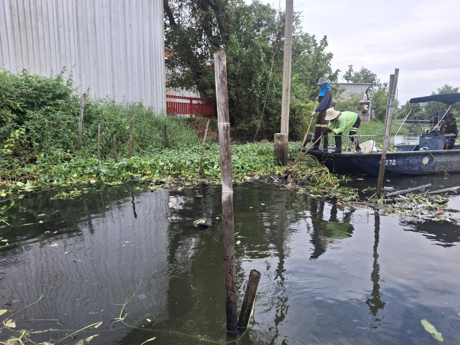 เจ้าหน้าที่ เก็บขยะและวัชพืชคลองสนามชัย ช่วงเทียนทะเลซอย24 พื้นที่เขตบางขุนเทียน