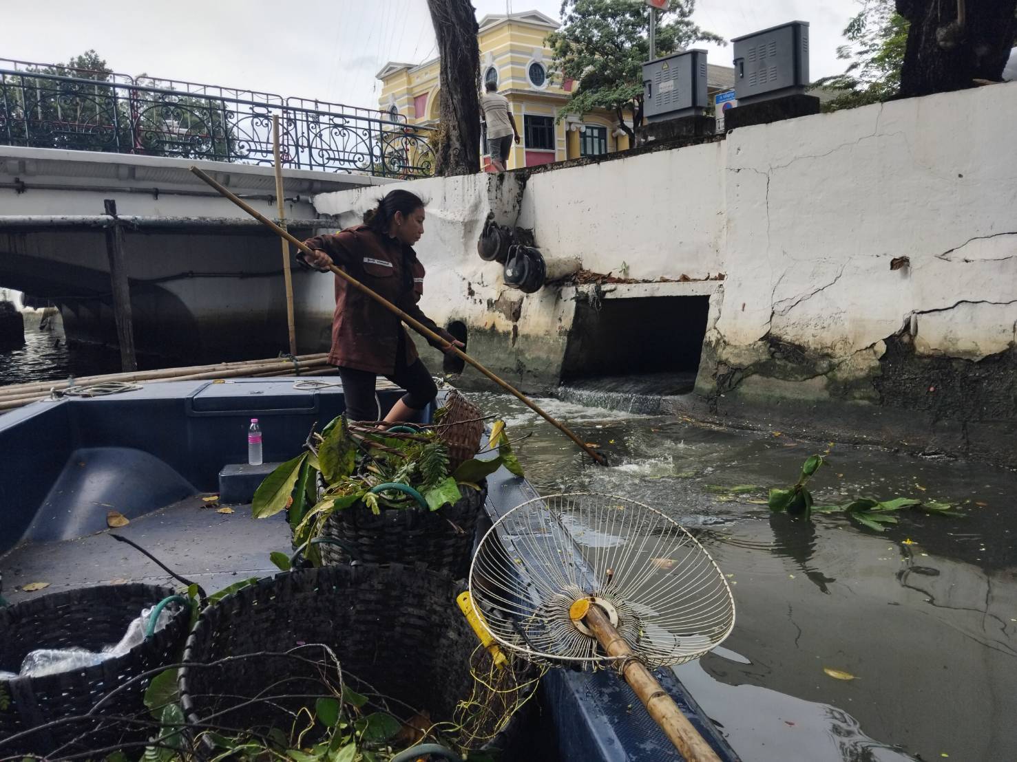 เจ้าหน้าที่ เก็บขยะในคลองคูเมืองเดิม-คลองวัดเทพธิดาราม-คลองวัดราชบพิธ เขตพระนคร